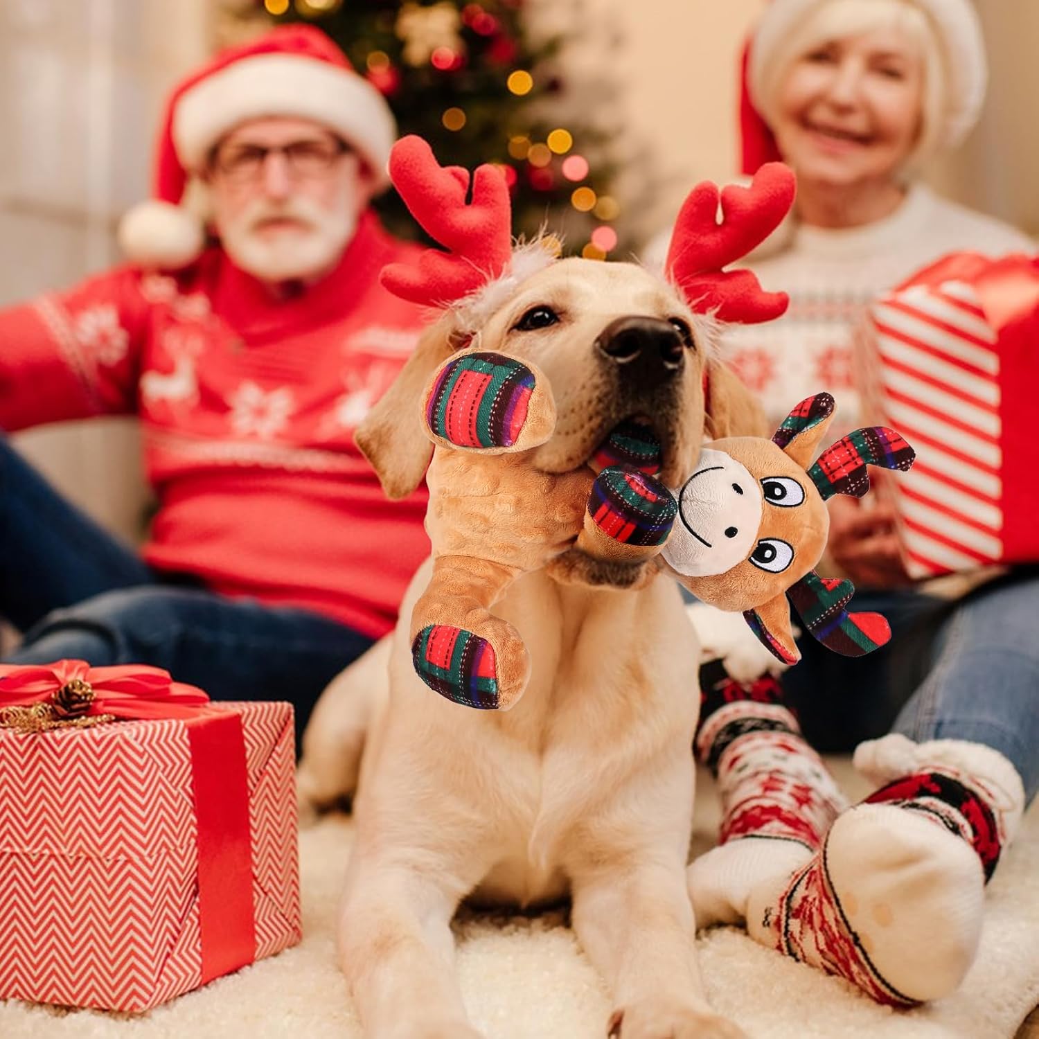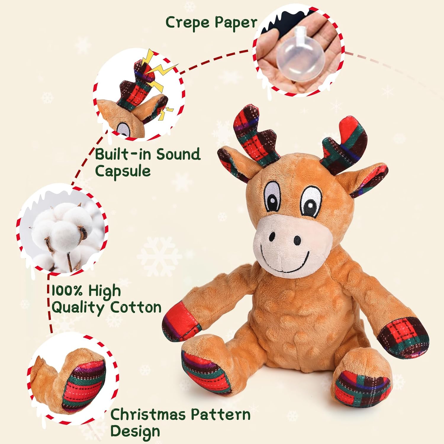 • Перфектен коледен подарък: тези пухкави играчки за кучета са специално проектирани за Коледа и съдържат елементи с лосове, които създават силна празнична атмосфера за Коледа и са перфектен избор за подарък за вашето куче.