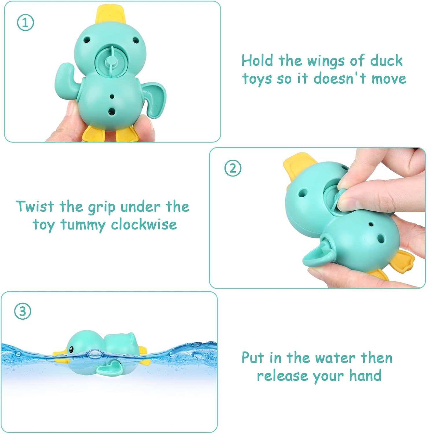 За този комплект играчки за баня с патенца не са необходими батерии. Просто завъртете малките патенца по часовниковата стрелка и ги пуснете във водата. След това те плуват във ваната.