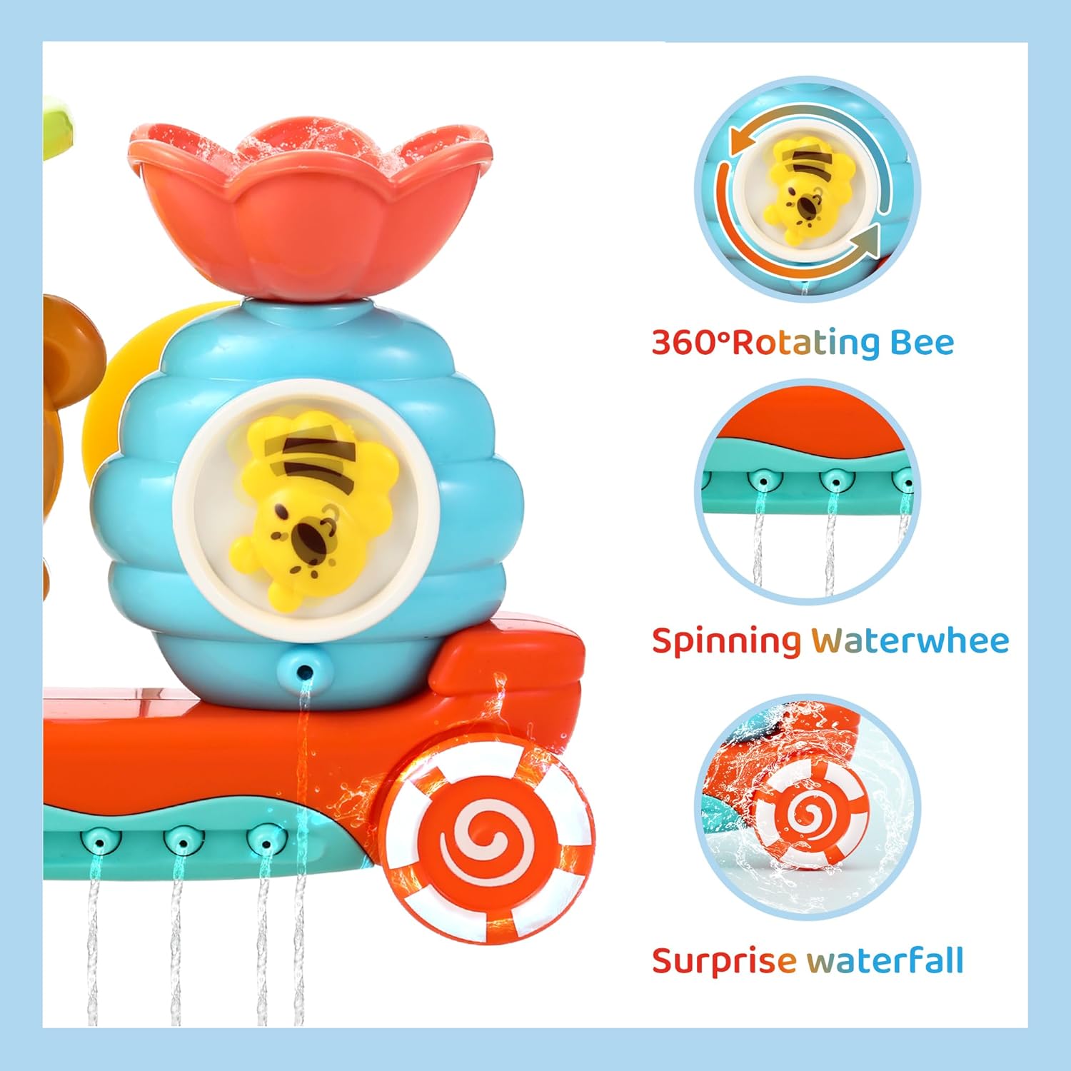 Функции: Тази играчка за вана задвижва зъбните колела, които се въртят през водния поток, образувайки малък водопад на изхода. Наблюдавайки взаимодействието между водния поток и механиката, бебето може да усети физическите ефекти на водния поток и зъбните колела