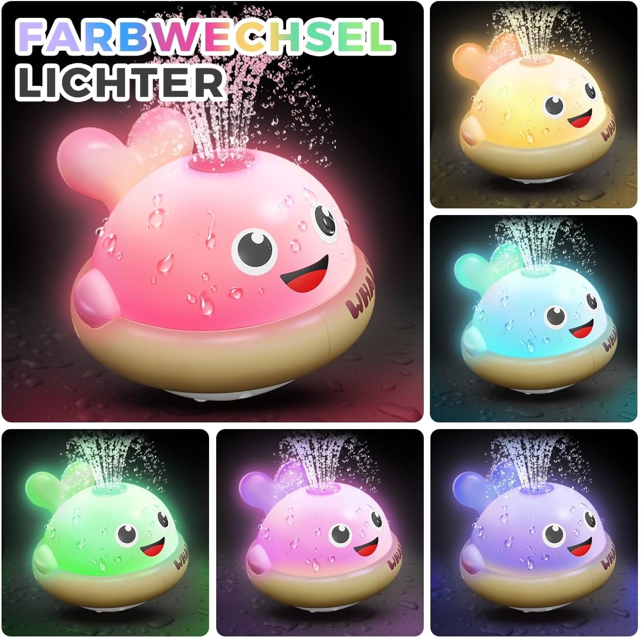 • Цветни светлини · Повече забавление: Детската играчка Watermates със сладък дизайн на кит е истински акцент сред играчките за вана от 1 година: очарователните многоцветни LED светлини на бебешката играчка за вана веднага привличат вниманието на децата, оживяват времето за вана и дори позволяват на децата, които обикновено отказват къпането, да очакват с нетърпение това „водно приключение“ с играчката за вана от 2 години. Играчка, която прави времето за вана забавно!