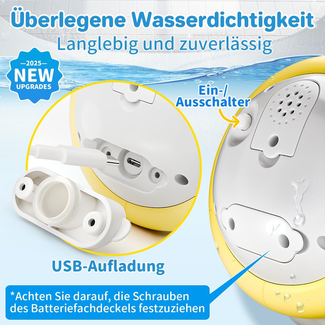 • Гарантирана безопасност · Без BPA: Като надежден подарък за бебе и играчка за баня, тя е изработена от висококачествен ABS материал със заоблени ръбове - перфектна за нежна игра и абсолютно безопасна за бебета. Хигиеничната и издръжлива играчка за баня е идеална за бебета от 1 до 3 години, без да натоварва здравето. Играчка, на която родителите могат да разчитат!