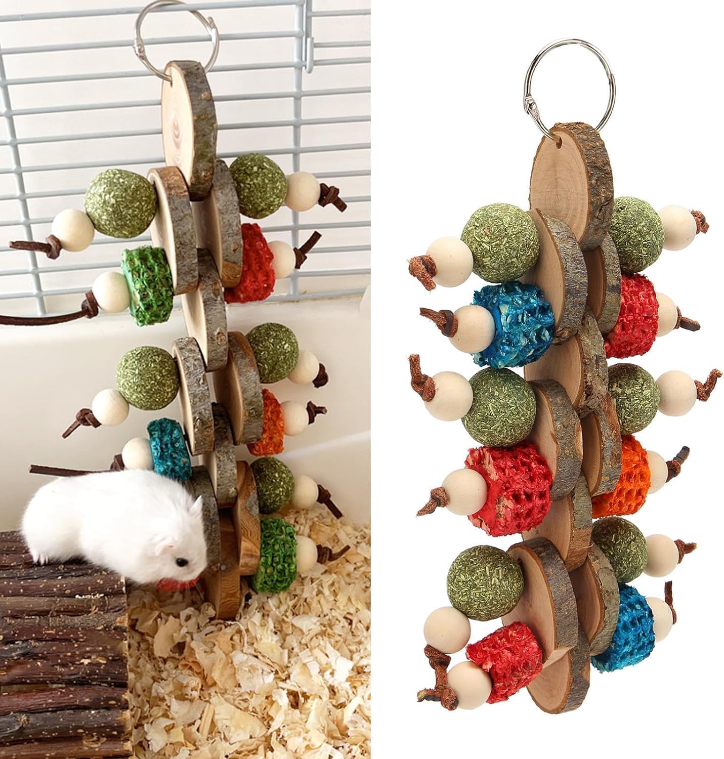 • Комплектът от естествени аксесоари за зайци е подходящ за малки гризачи като морски свинчета, зайци, чинчили, хамстери, плъхове и джербили. Той им помага да отхапват постоянно растящите си зъби и предпазва домашните любимци от гризане на клетката и другите мебели. Перфектният аксесоар за клетката на вашия прекрасен домашен любимец.