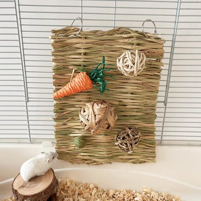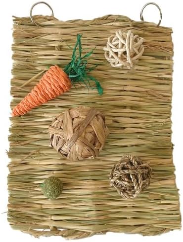 • Играчките за зайци са добре изработени и устойчиви на ухапване. Ръчно изработените плетени топки (без лепило, без добавки, без метал) са идеални за игра и гризане, както и за играчки за търсене на храна, в които можете да слагате лакомства. Широка гама от малки играчки за вашите малки приятели.
