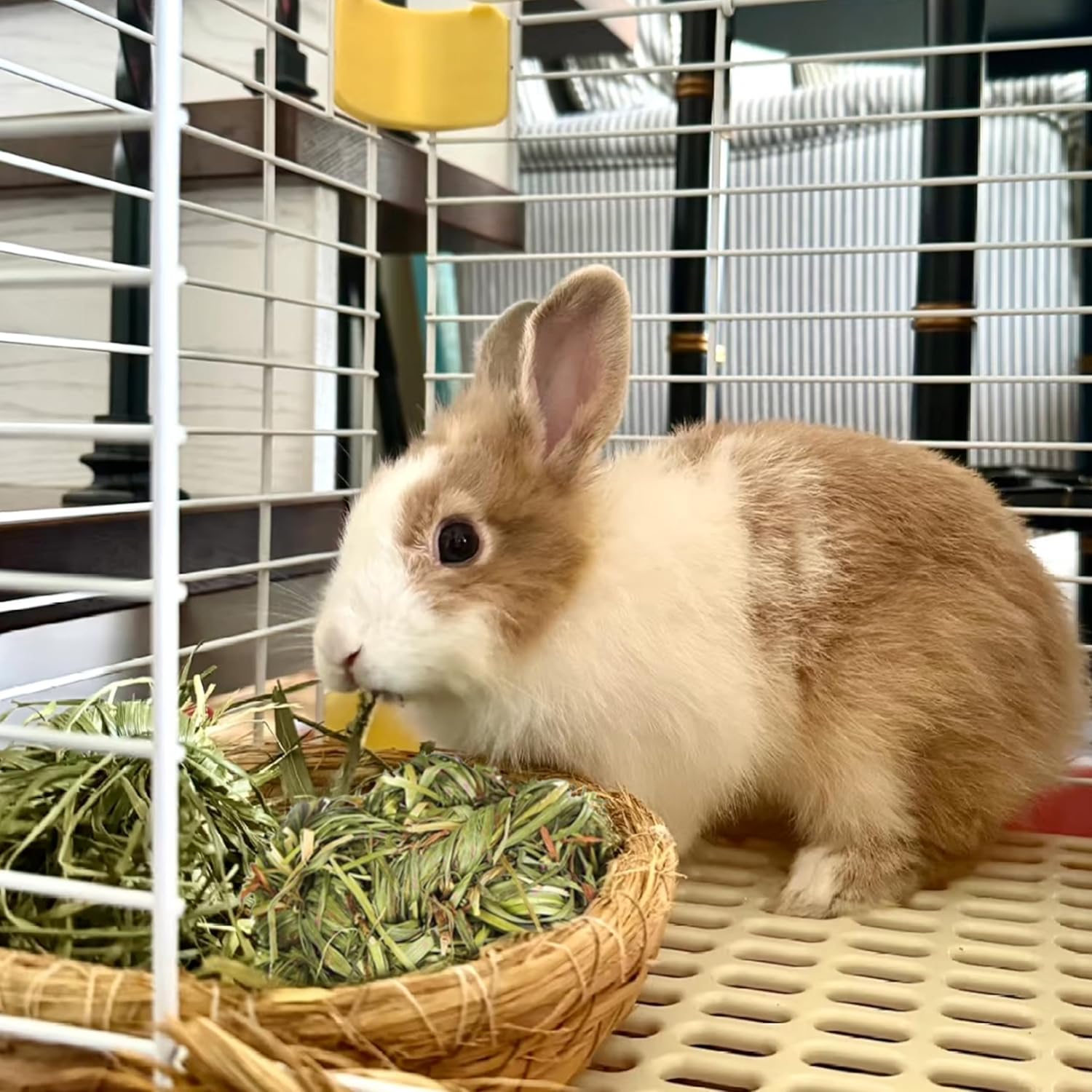 • Лакомството и дъвчащите снаксове за зайци са изработени от 100% натурален материал. Висококачествена връв от бала сено, изработена от ябълкова дървесина и ливадна трева за дъвчене. Естествени плетени топки за дъвчене и игра за зайци. Богатите на хранителни вещества тревни топки и питки спомагат за подобряване на храносмилането и повишаване на апетита.