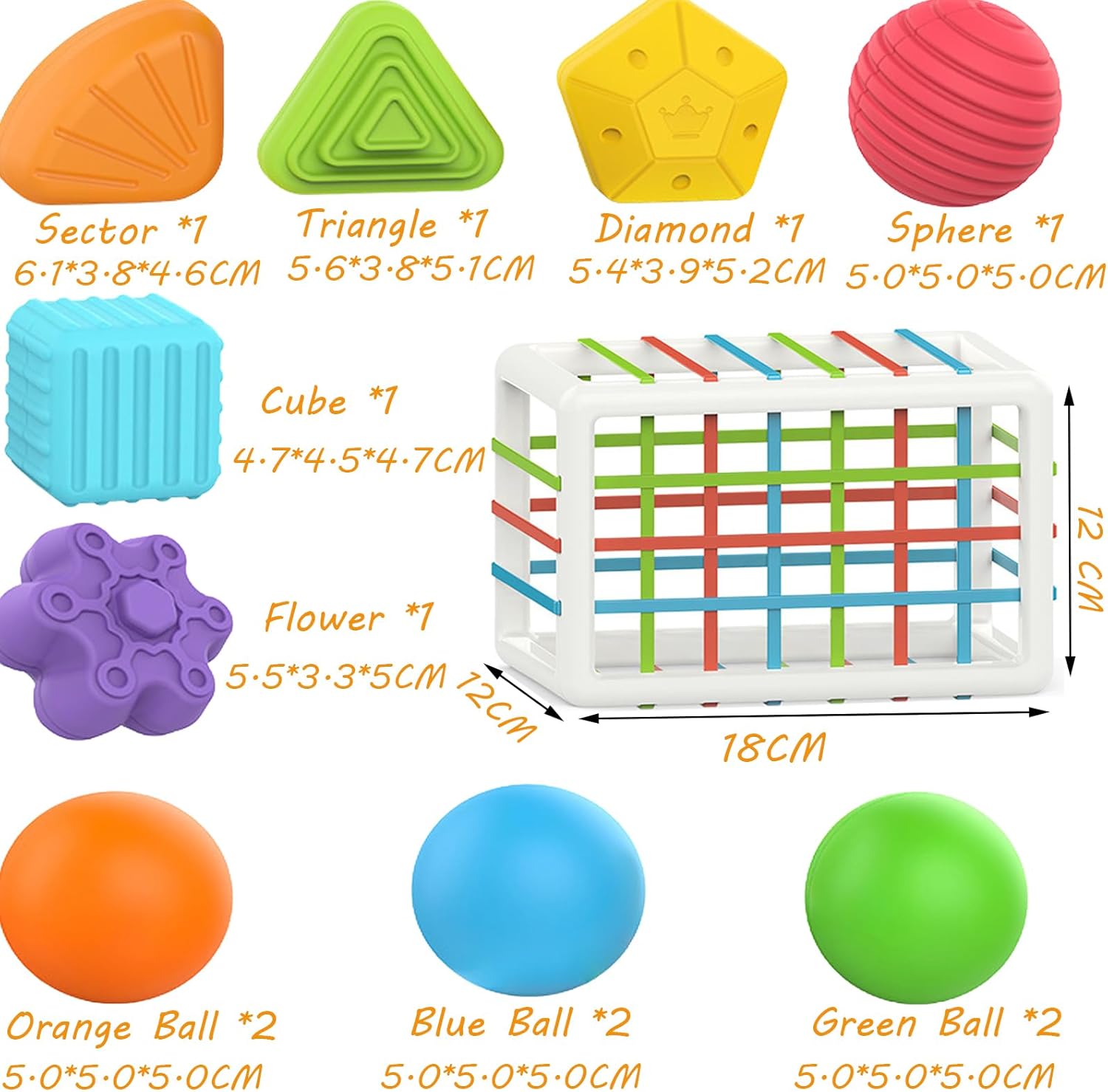 • Мултисензорно обучение и развитие: Бебешките играчки JKGIFTS предлагат пъстър свят, пълен с форми и текстури! Със зелен триъгълник, жълт диамант, лилаво цвете, червена сфера, син куб, оранжев ветрилообразен вентилатор и цветни топки, вашето бебе игриво изучава форми и цветове. Това насърчава тактилното, зрителното и когнитивното развитие на вашето дете, както и фината моторика и координацията око-ръка.