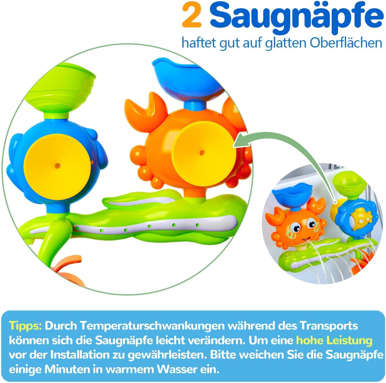 Füllen Sie den Becher mit Wasser und spielen Sie mit den schwimmenden Figuren und dem Wasserrad. Achten Sie darauf, das Spielzeug nicht in sehr heißem Wasser zu verwenden, um Verformungen oder Beschädigungen zu vermeiden. Reinigen Sie das Spielzeug nach jedem Gebrauch, um das Wachstum von Schimmel oder Bakterien zu verhindern.