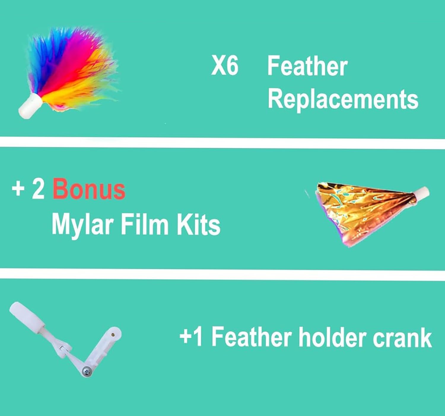 Играчки за котки Migipaws, MigiBox резервни пера, 6 броя дъгови пера + 2 броя майларови аксесоари