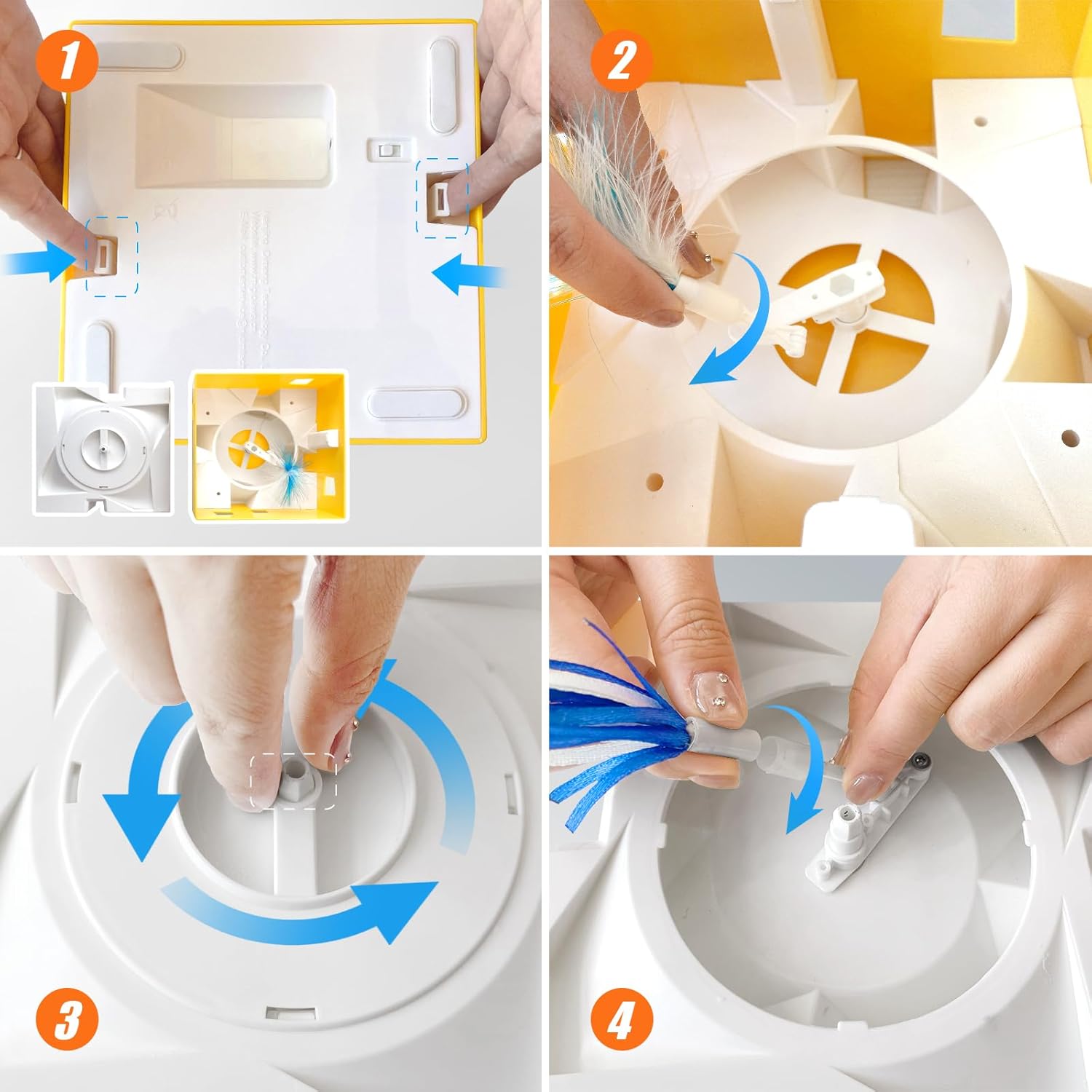 • Случайно движение, чиста ловна треска: Перото изскача произволно от 4-те дупки отгоре и 8-те дупки отстрани на характерната кубична архитектура и стимулира котките да мислят, наблюдават и удрят. Котките се обсебват от тези интелигентни ловни игри, за да облекчат депресията, скуката, тревожността и самотата. Не се притеснявайте, ако имате срамежлива, чувствителна котка, тя може да я гледа с часове и след това внезапно да се хвърли върху нея.