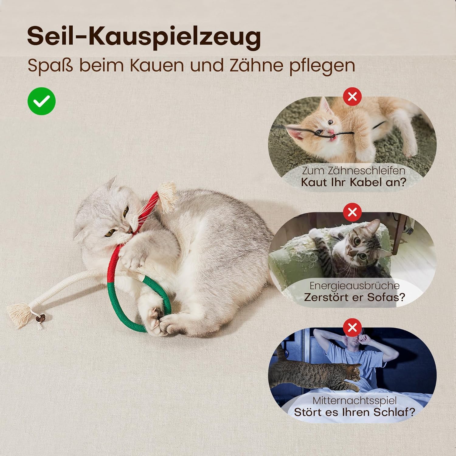 • ТИХА ИГРА Тези меки, цветни въжета осигуряват обогатяващо тихо време за игра, без да нарушават съня или живота на стопанина на котката. Вашата котка ще хареса забавните, змиевидни форми и ще обогати времето си за игра с всеки удар и захапка.