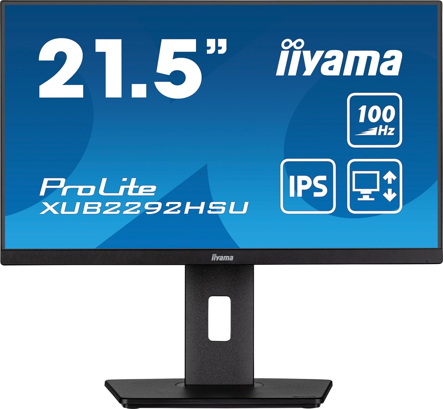 iiyama Prolite XUB2292HSU-B6, 54.6 см, 21.5-инчов IPS LED монитор, Full HD, 100Hz, HDMI, DP, USB 3.2, регулиране на височината, Pivot, FreeSync, черен
