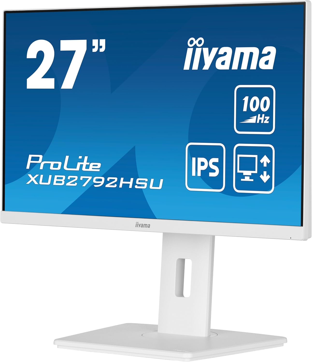 iiyama Prolite XUB2792HSU-W6 68.6 см 27-инчов IPS LED монитор Full HD 100Hz HDMI DP USB 3.2 Регулиране на височината Pivot FreeSync Бял