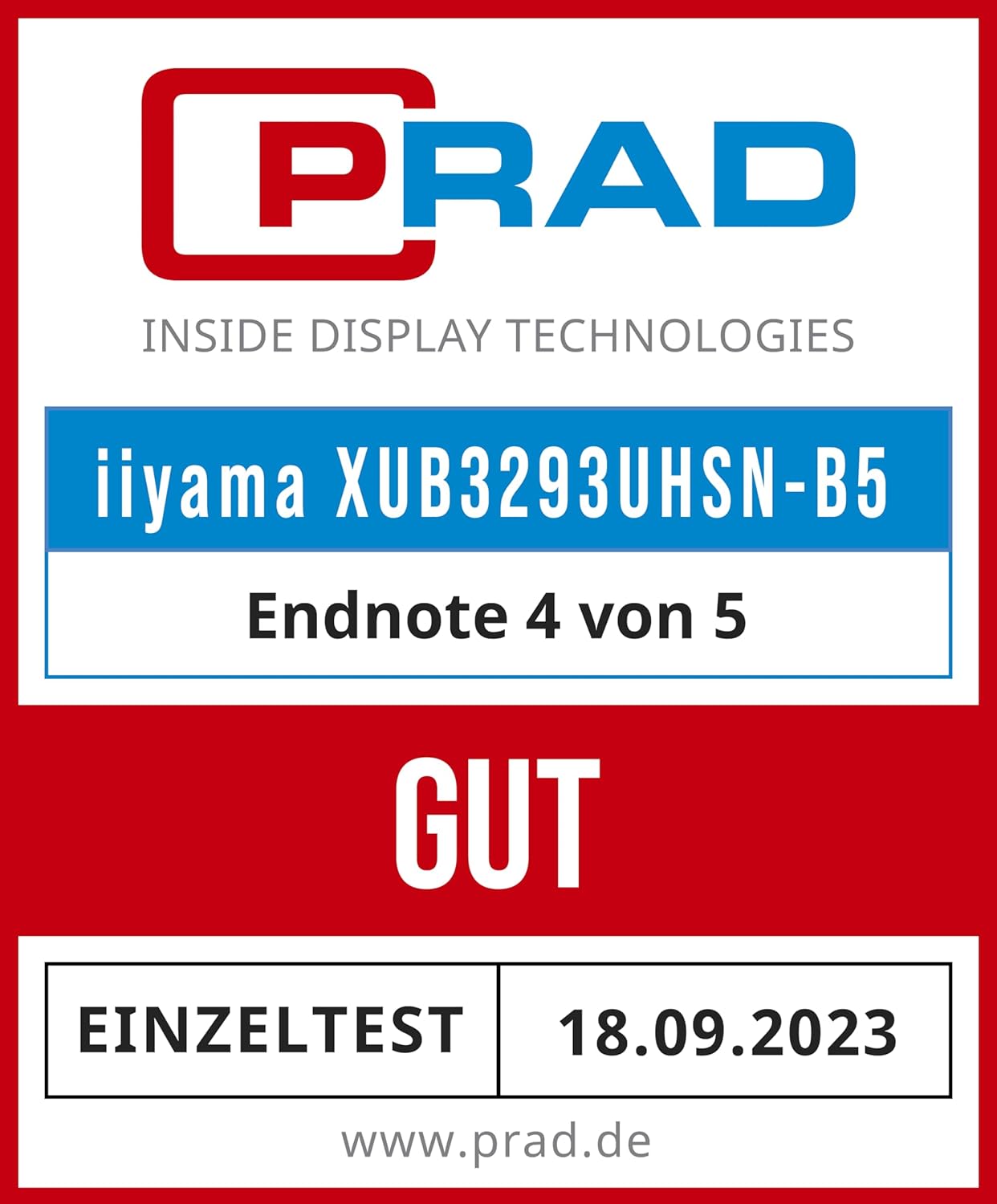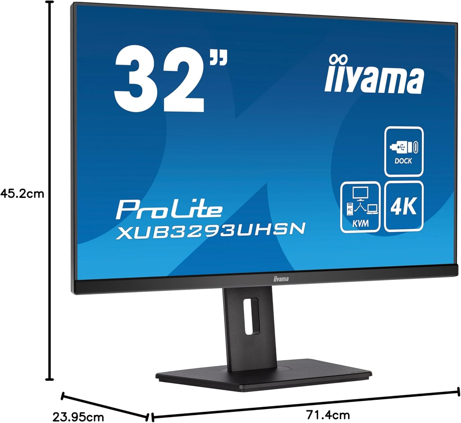 iiyama Prolite XUB3293UHSN-B5, 80 см, 31,5-инчов IPS LED монитор, 4K UHD, HDMI, DP, USB 3.0, USB-C, 65 W, LAN, KVM превключвател, тънък, с регулиране на височината, черен
