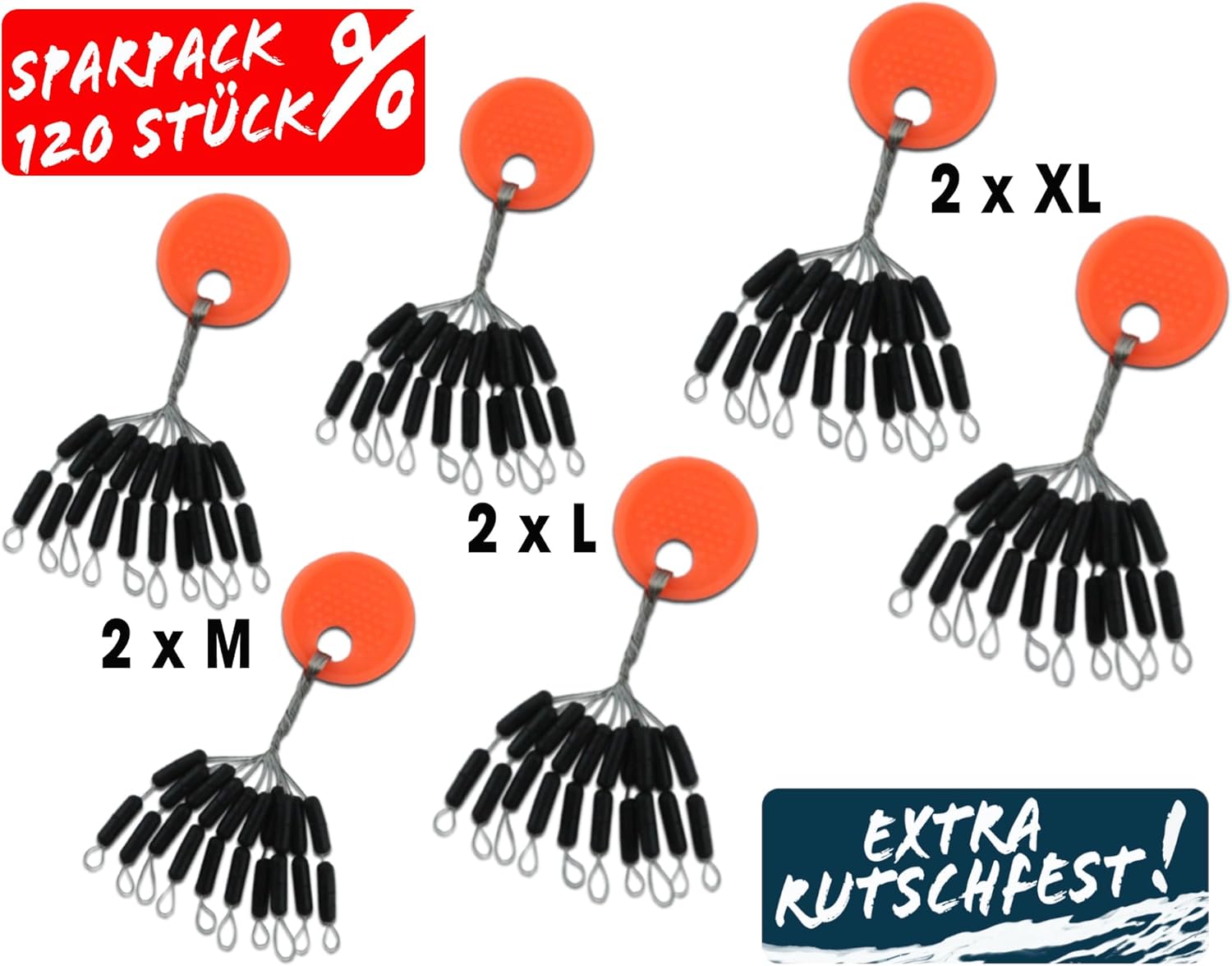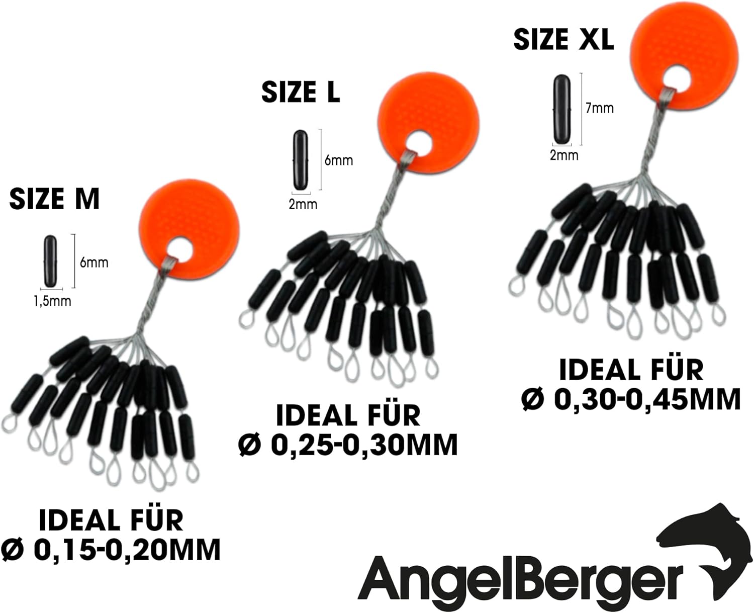 • Универсално съдържание: икономичният пакет включва разнообразие от гумени стопери в различни размери. С 40 стопера в размер M, 40 x размер L и 40 x размер XL, вие сте добре екипирани за различни риболовни ситуации.