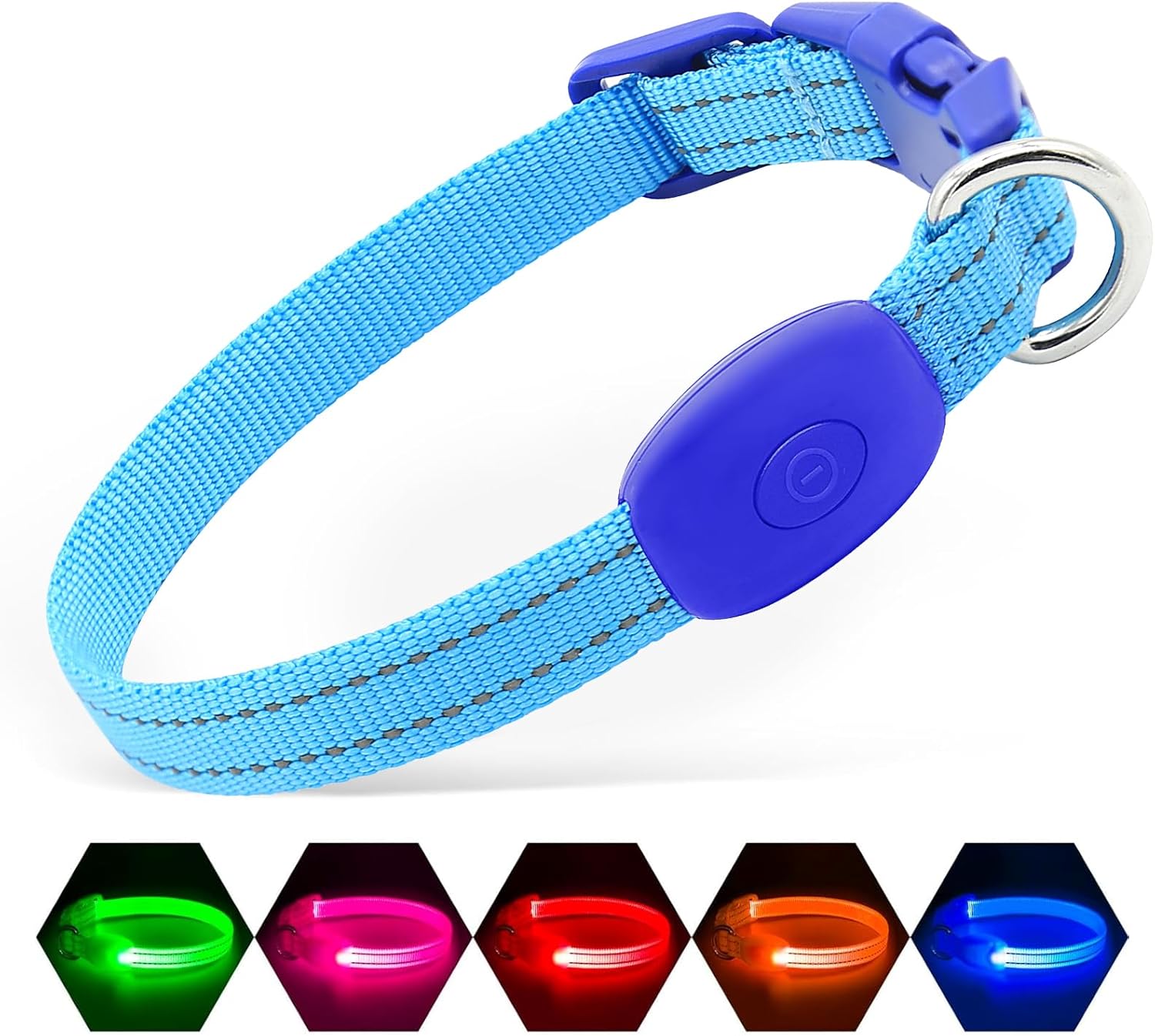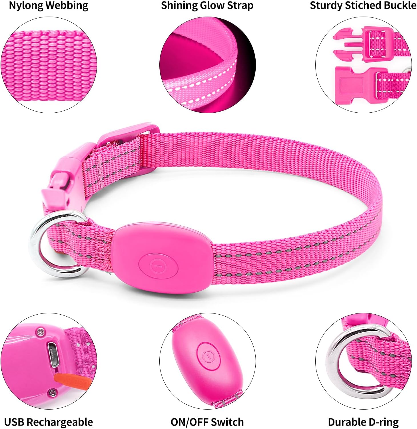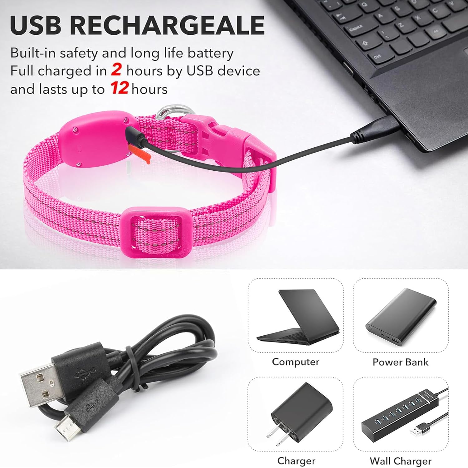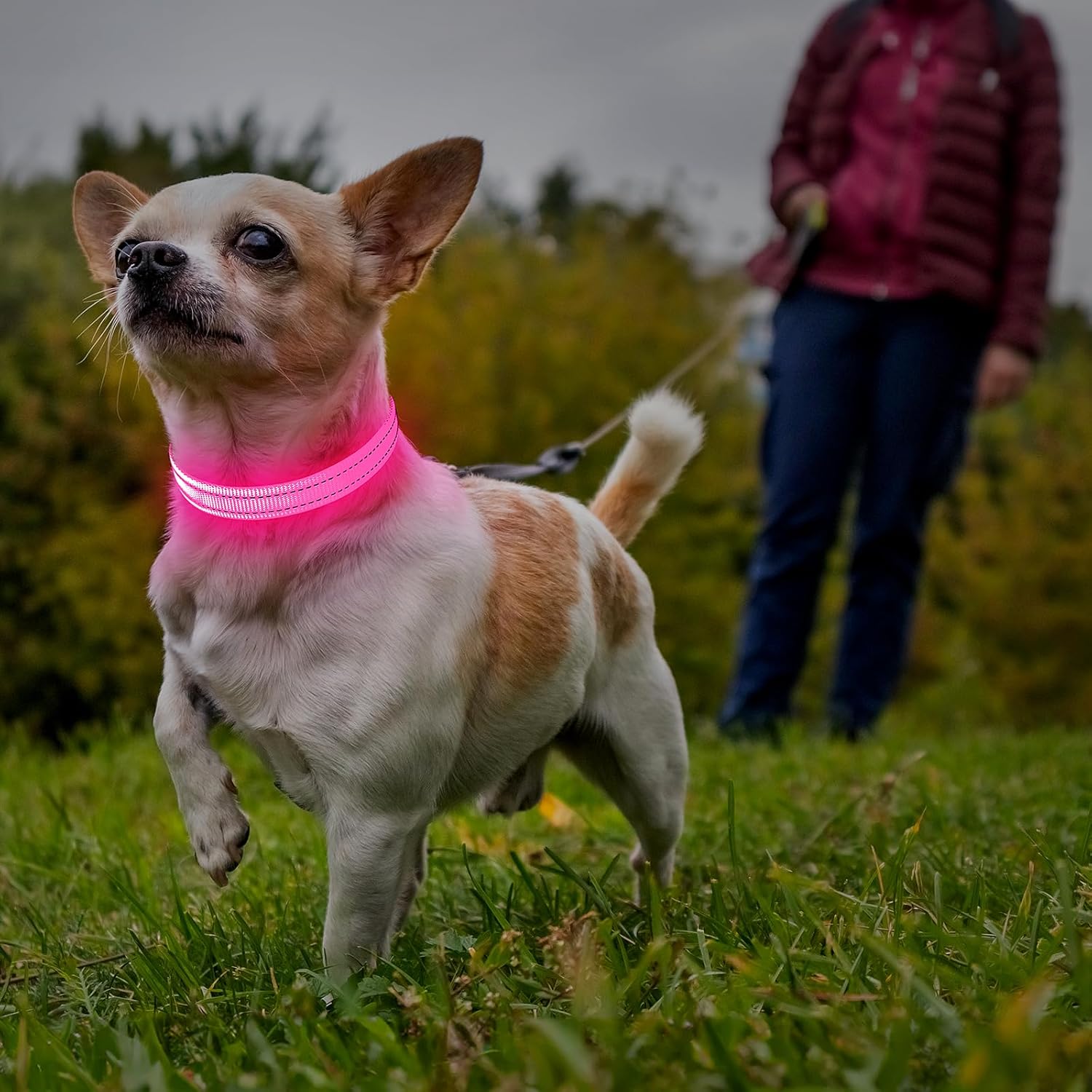 Illumifun Светлинен нашийник за кучета, USB LED нашийник за кучета, Презареждащ се светещ нашийник за кучета, Регулируем размер, 3 режима на осветление за малки, средни, големи кучета