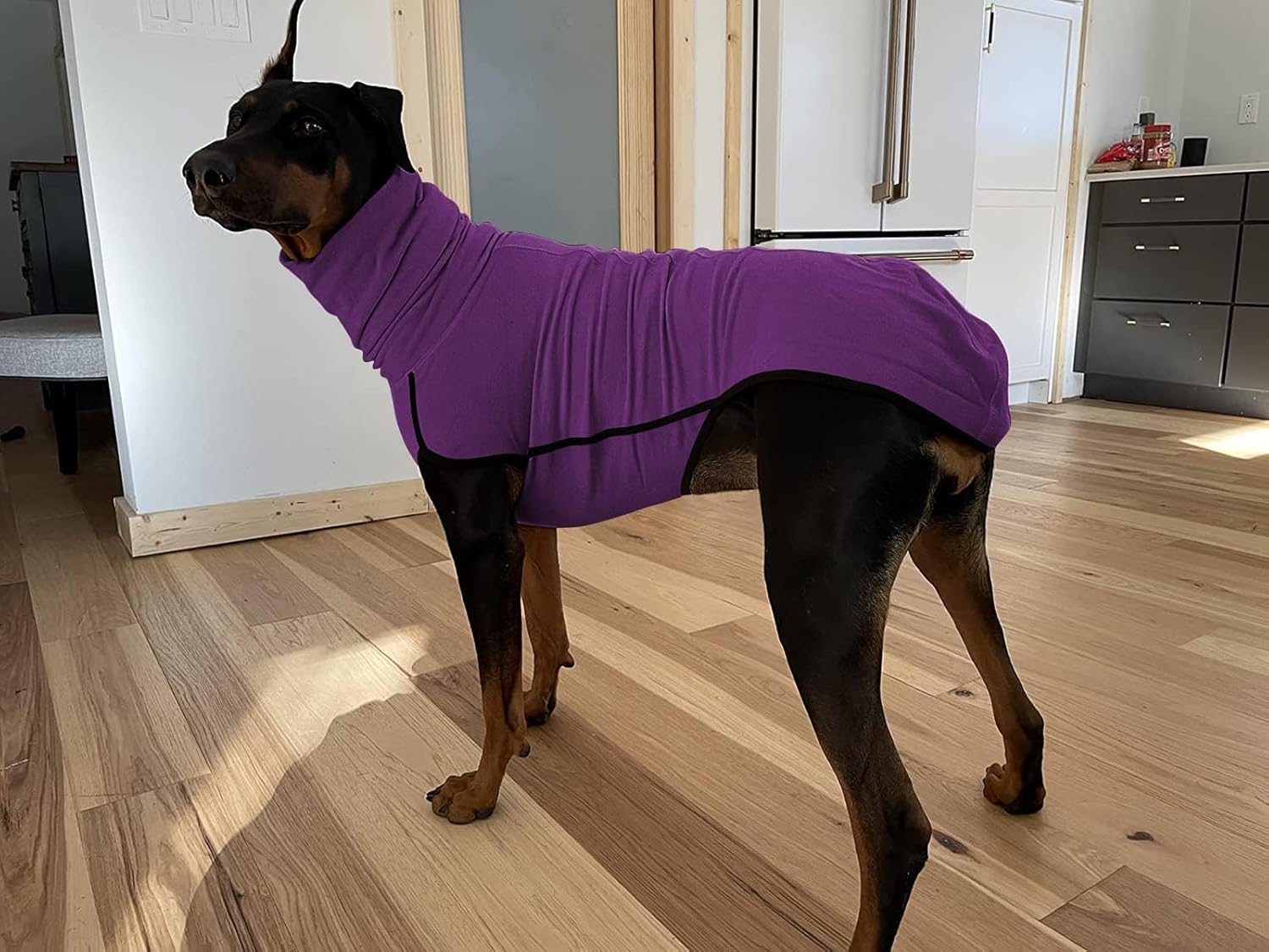 • Лесно обличане и събличане: Този поларен пуловер за куче е достатъчно еластичен и има еднокомпонентен дизайн, така че независимо дали е голямо или малко куче, е много удобно, когато помагате на вашия пухкав приятел да го облича и съблича. В случай на спешност, този безпроблемен пуловер за малко куче се облича и съблича без усилие.