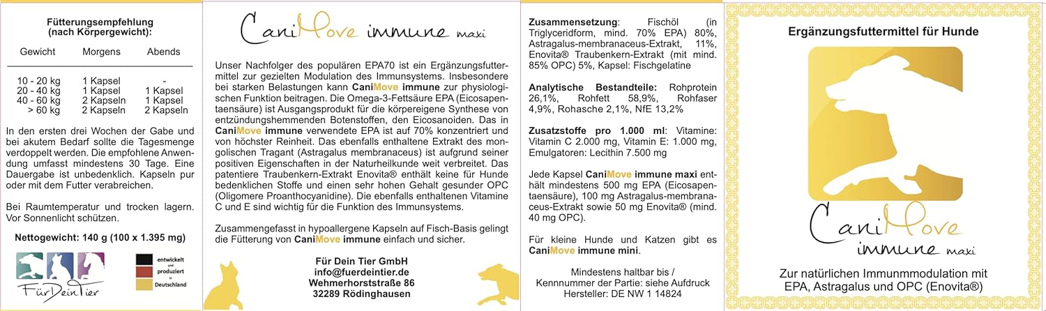 • ⭐ УКРЕПВА ИМУННАТА СИСТЕМА CaniMove Immune Maxi поддържа имунната система на вашето по-голямо куче по време на стрес и повишено натоварване.