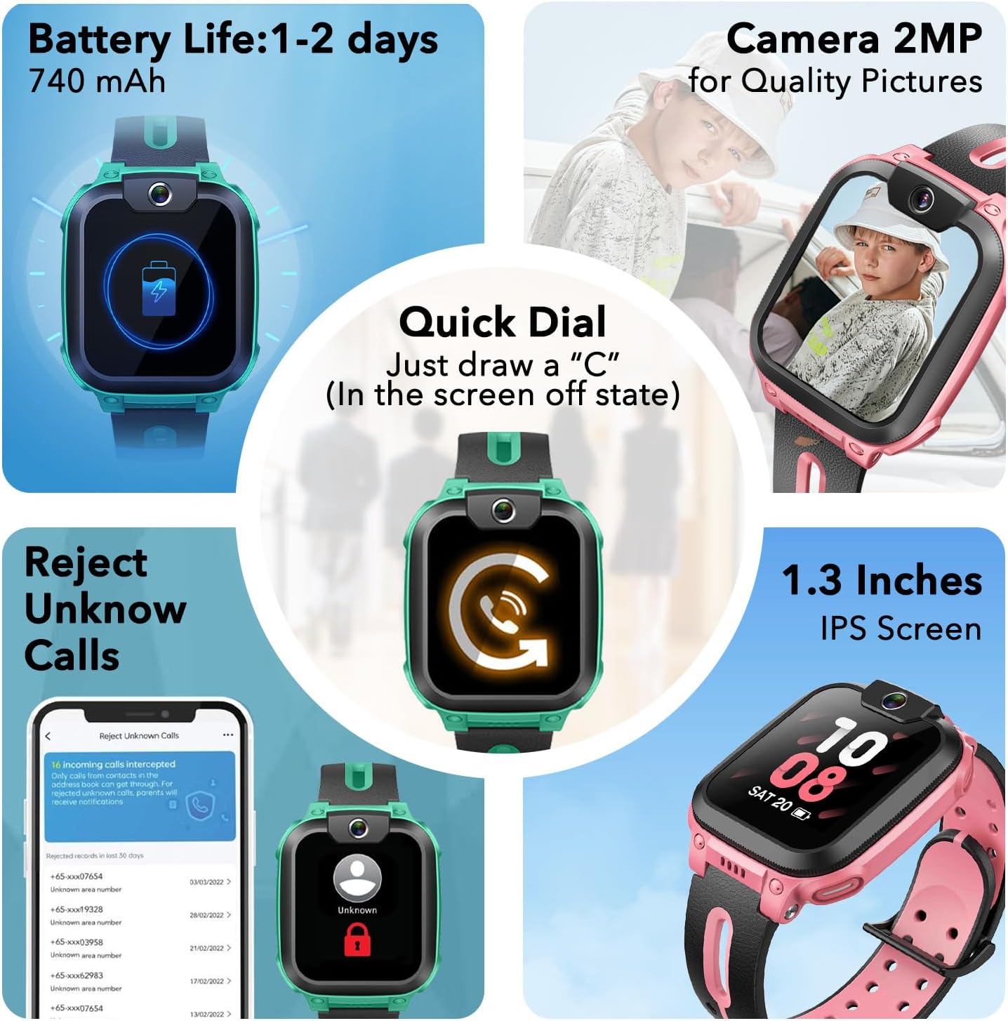 • Перфектна идея за подарък и задоволително обслужване: Този детски мобилен часовник е чудесен подарък за деца за Коледа или рожден ден. Предлагаме 24-месечна ограничена гаранция, 30-дневна безусловна политика за връщане и доживотно ентусиазирано обслужване на клиентите. Ако по някаква причина не сте напълно доволни от покупката си, моля, не се колебайте да се свържете с нас. Ще решим проблема ви в рамките на 24 часа.
