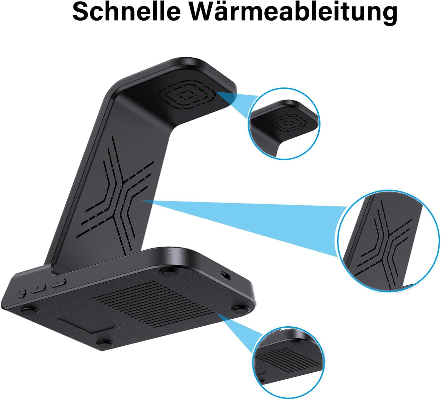 • Защита - Със защита от пренапрежение, контрол на температурата и откриване на чужди предмети. Безжичното зарядно устройство има отвори за разсейване на топлината, за да се осигури безопасно зареждане на устройства. Снабдено е и със силиконови подложки, които предпазват устройството ви от надраскване и хлъзгане.
