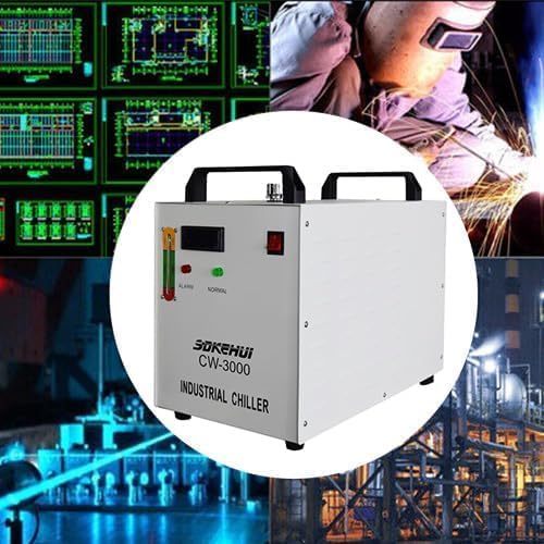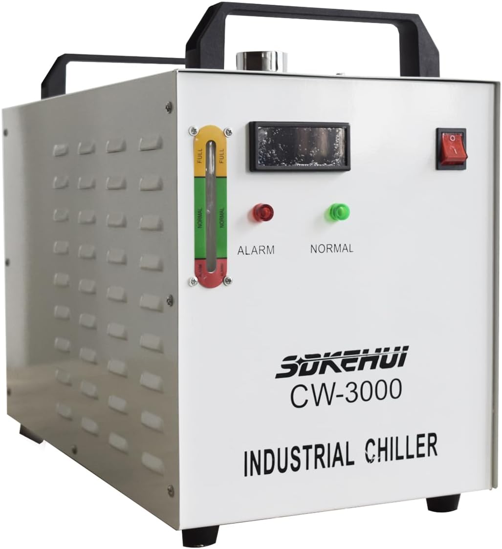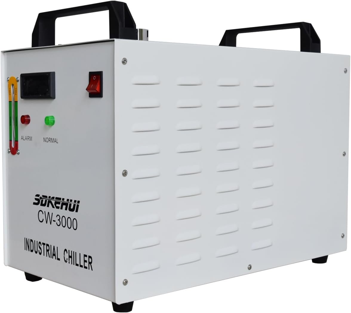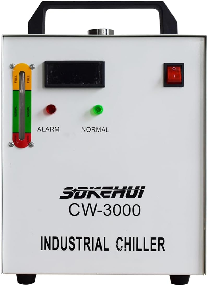 • Параметри на продукта: индустриалният охладител за вода CW-3000 е с капацитет 9 л, максимален дебит 10 л, охлаждаща мощност 50 W/°C, напрежение 220 V, честота 50 Hz и ток 0,45 A.