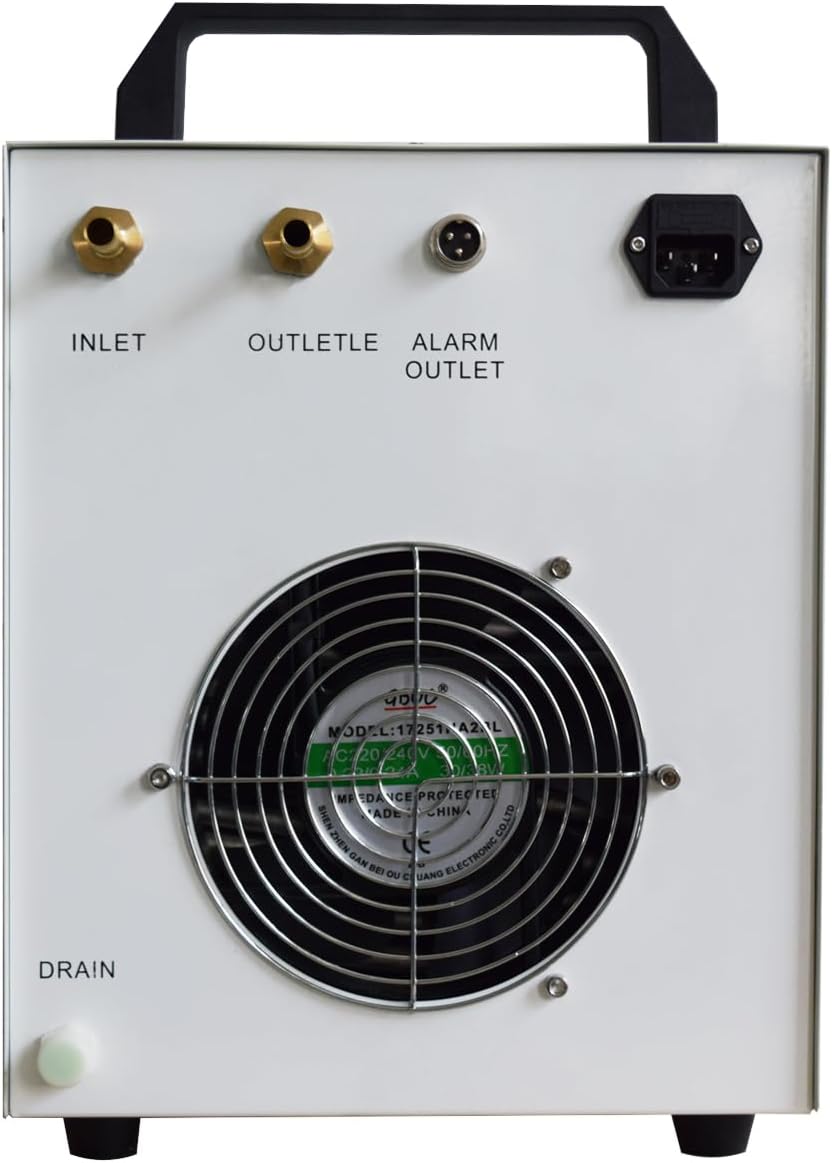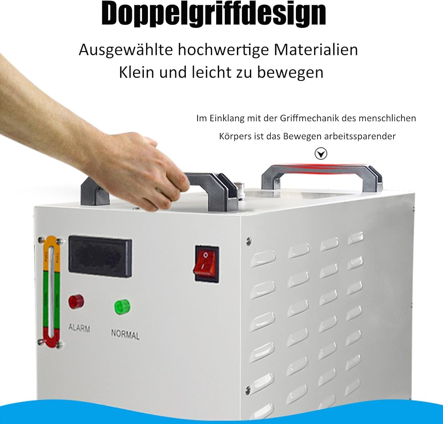 • ЕФЕКТИВЕН ОХЛАЖДАЩ ВЕНТИЛАТОР Индустриалният охладител за вода използва професионален охладител с въздушно охлаждане, който има силна способност за разсейване на топлината и не се блокира лесно. Забележка: Температурата на охлаждане на машината е стайна температура. Ако желаете по-ниска температура на охлаждане, можете да изберете CW5200.