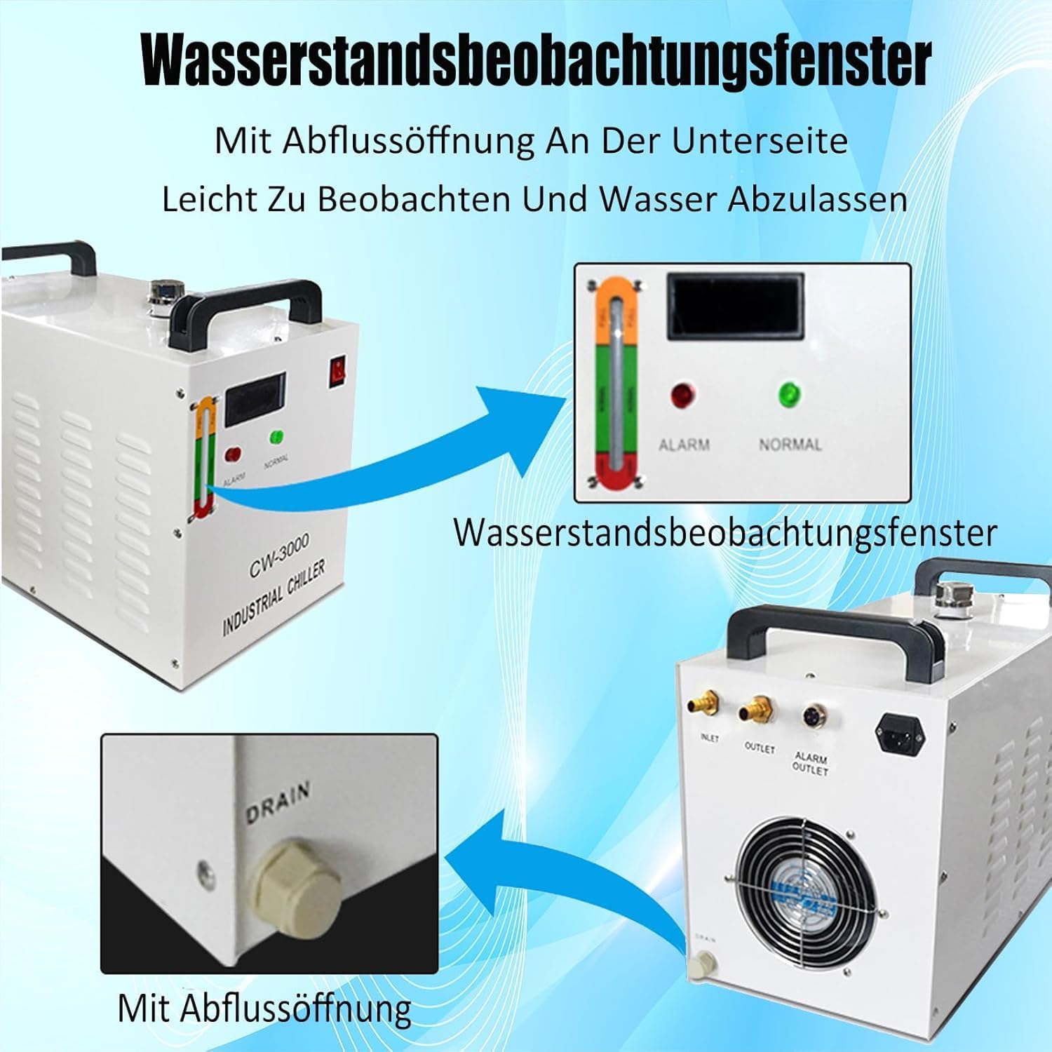 Индустриален охладител за вода CW-3000 CO2 лазерна тръба охладител 9 л вода охладител за охлаждане на CO2 стъклена лазерна тръба 220 V 10 л/мин