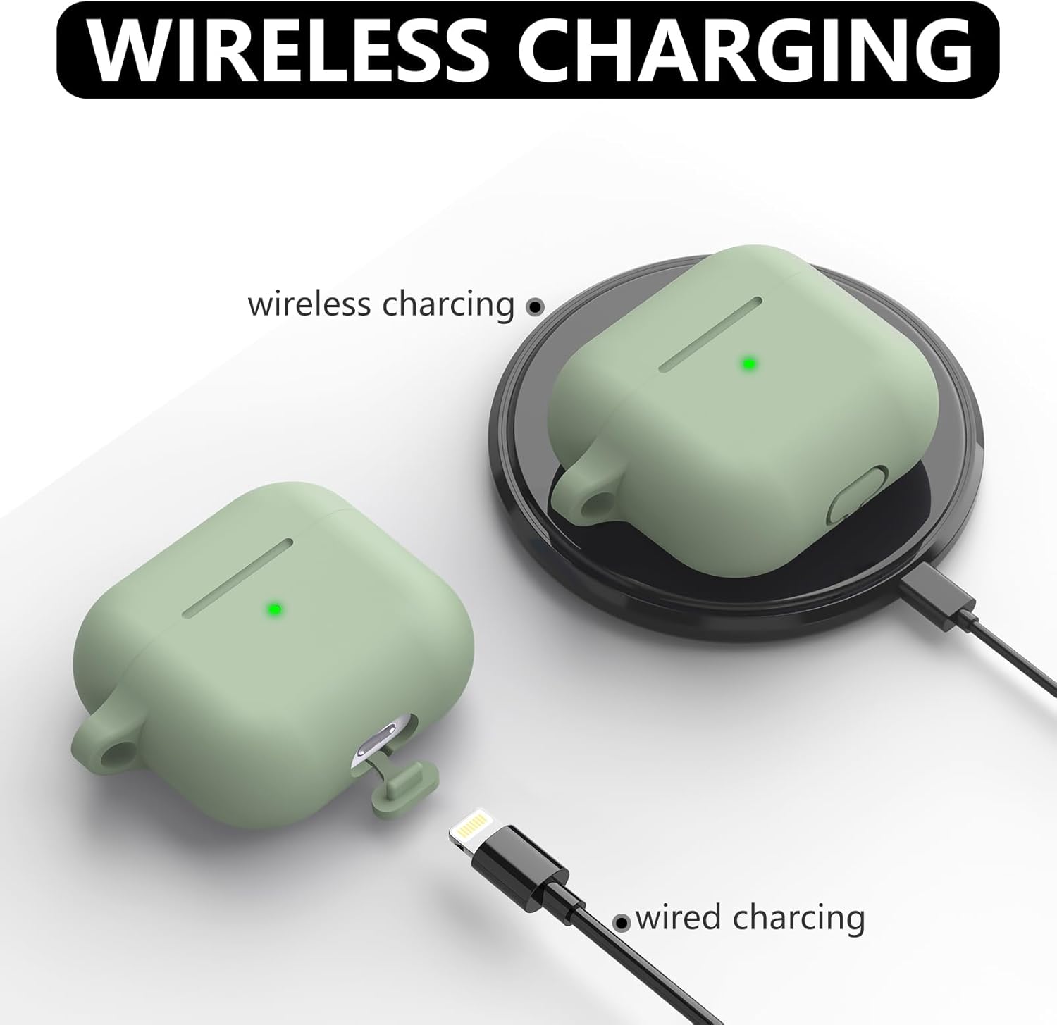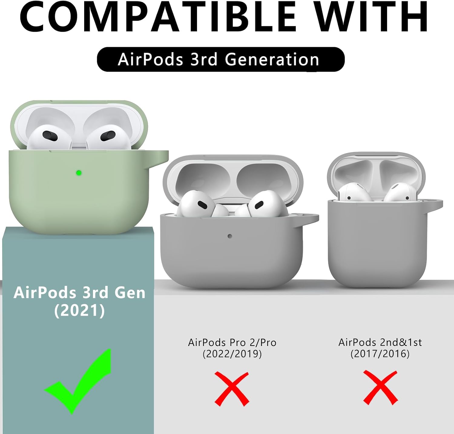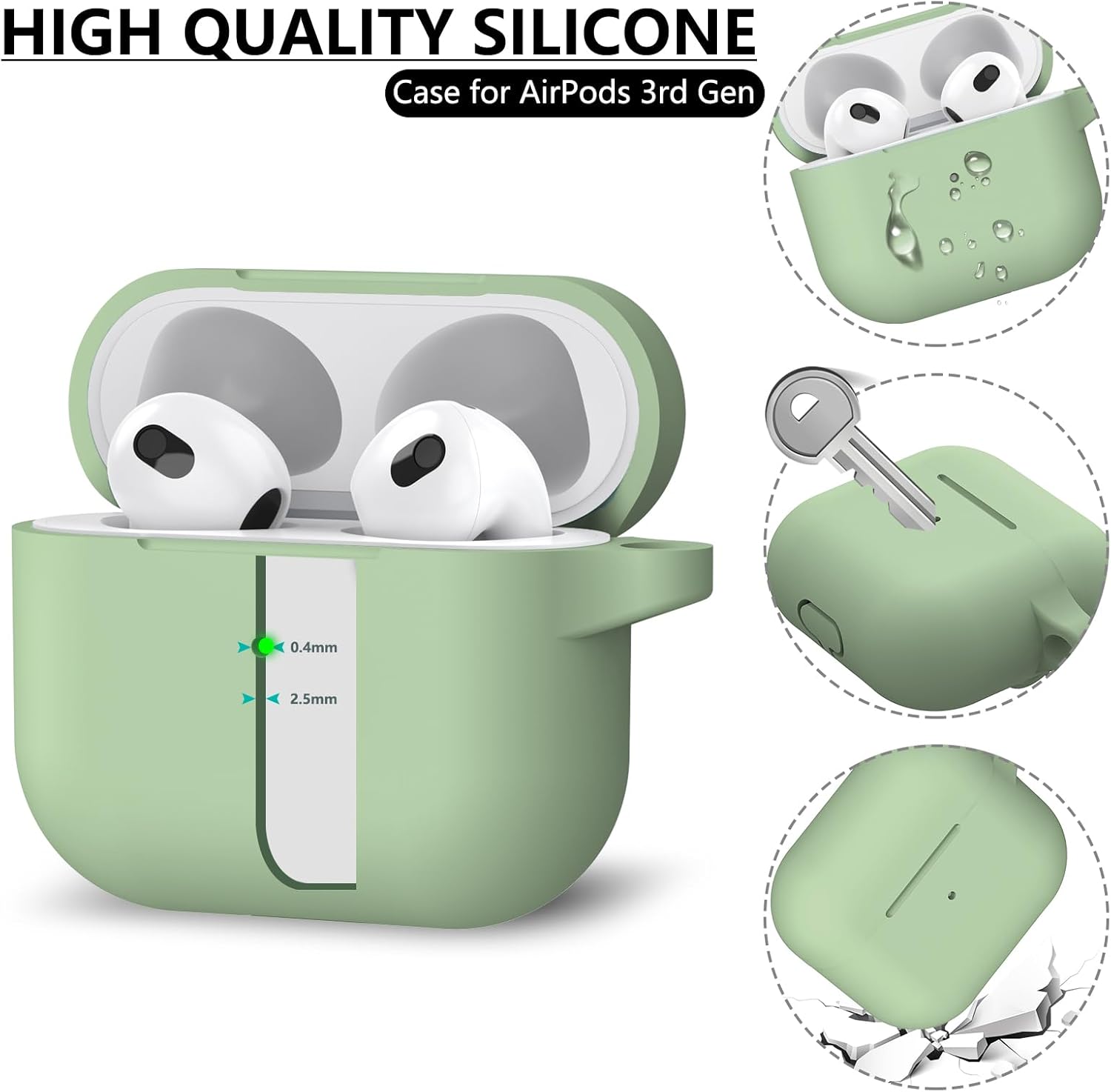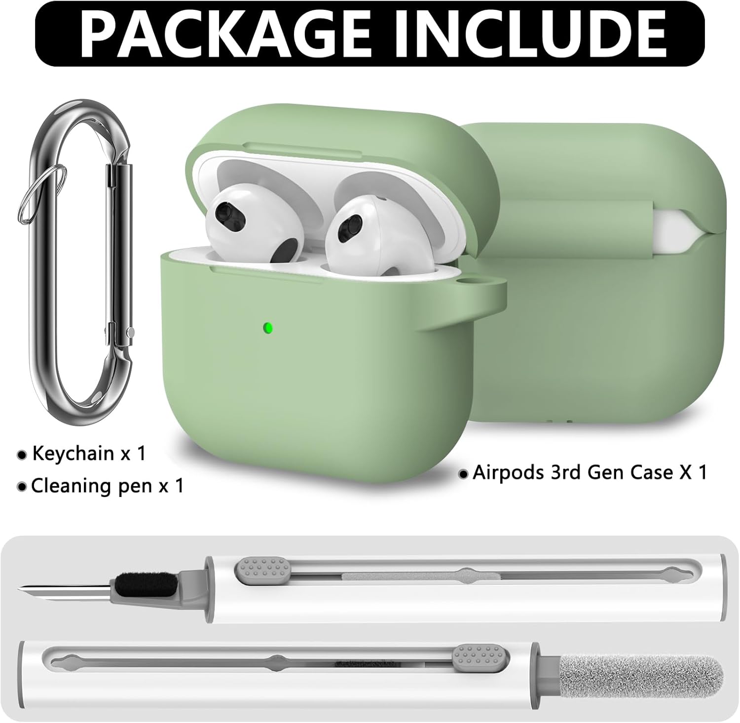 Inesore Съвместим с Airpods 3 Калъф, Силиконов защитен калъф за Apple AirPods 3-то поколение с ключодържател и почистваща писалка, за жени (борово зелено)