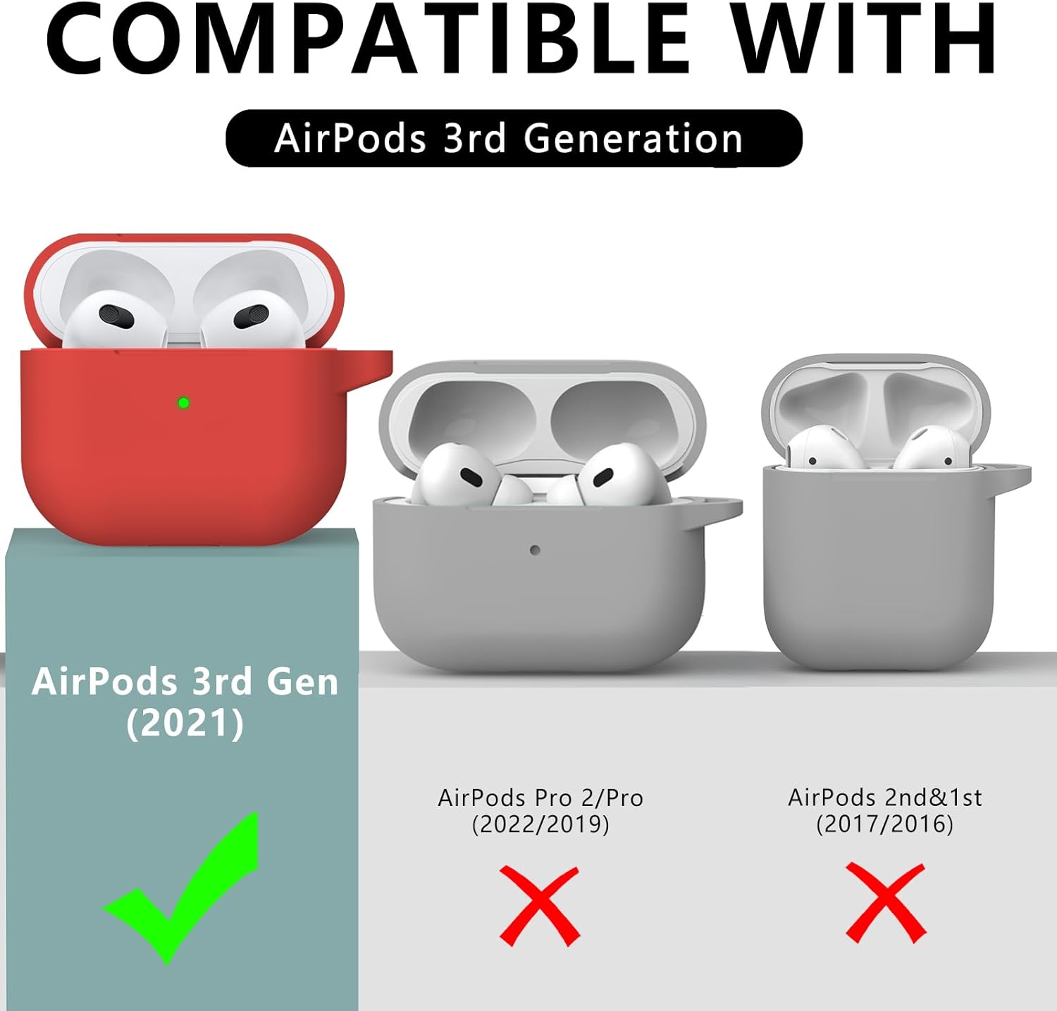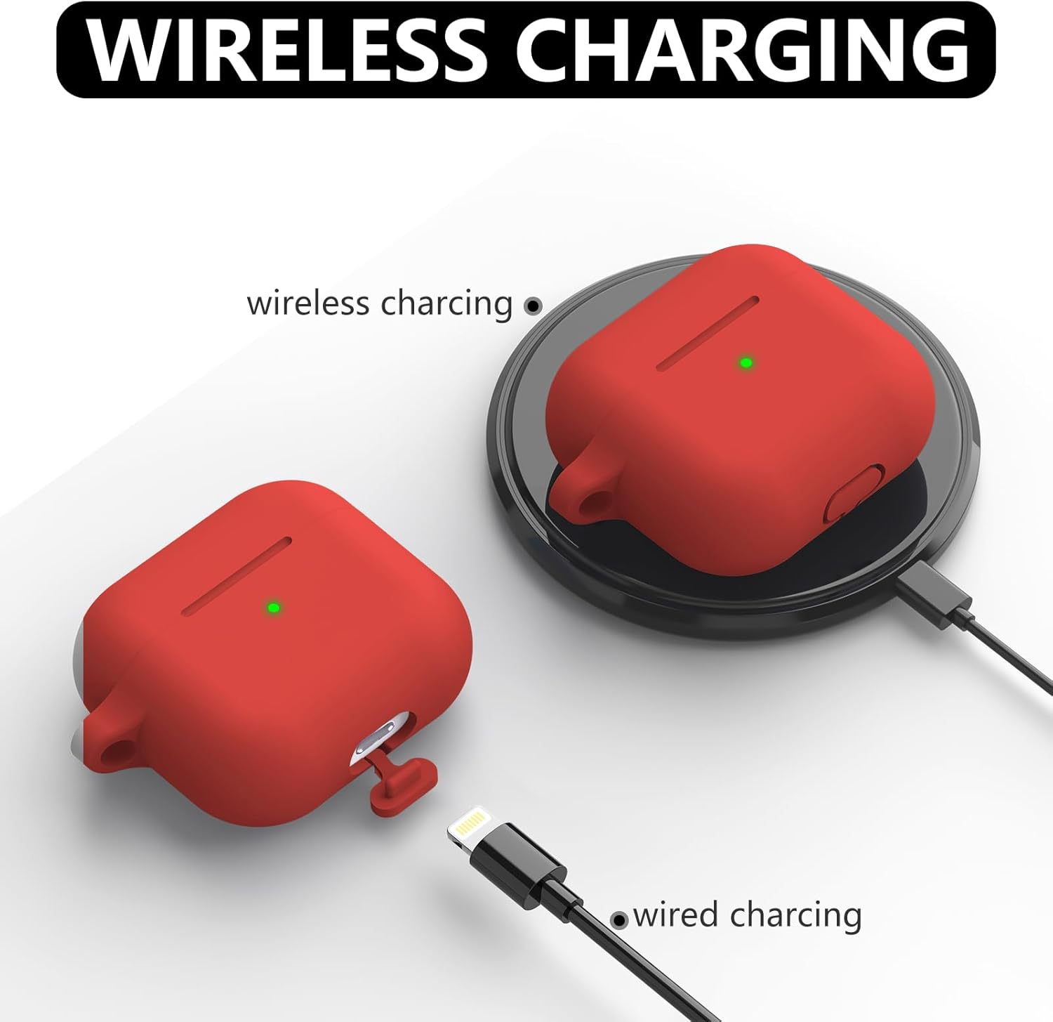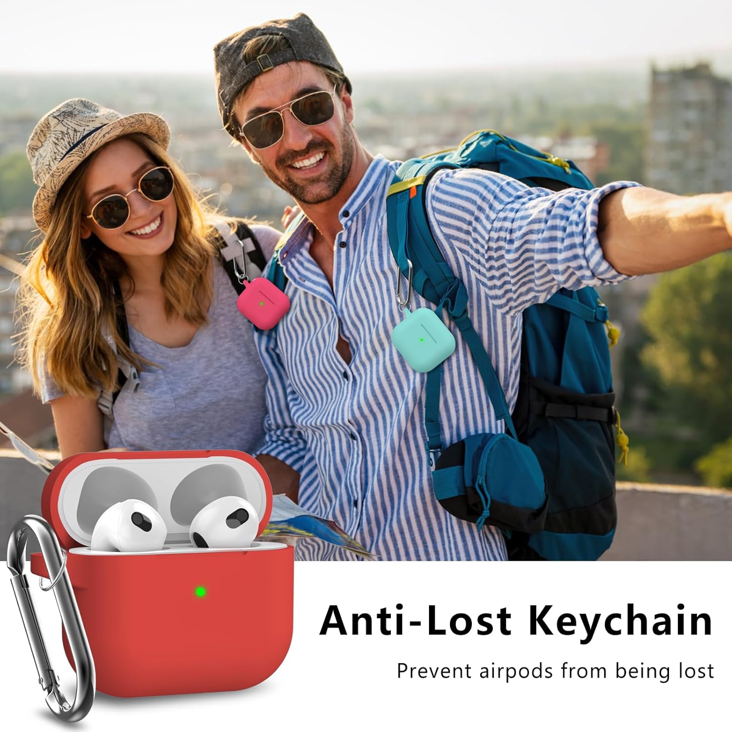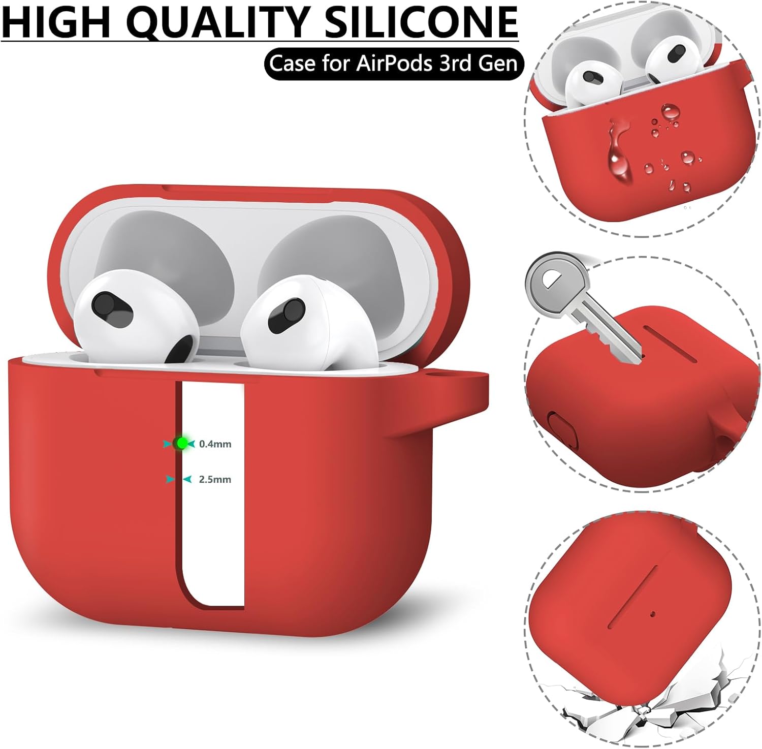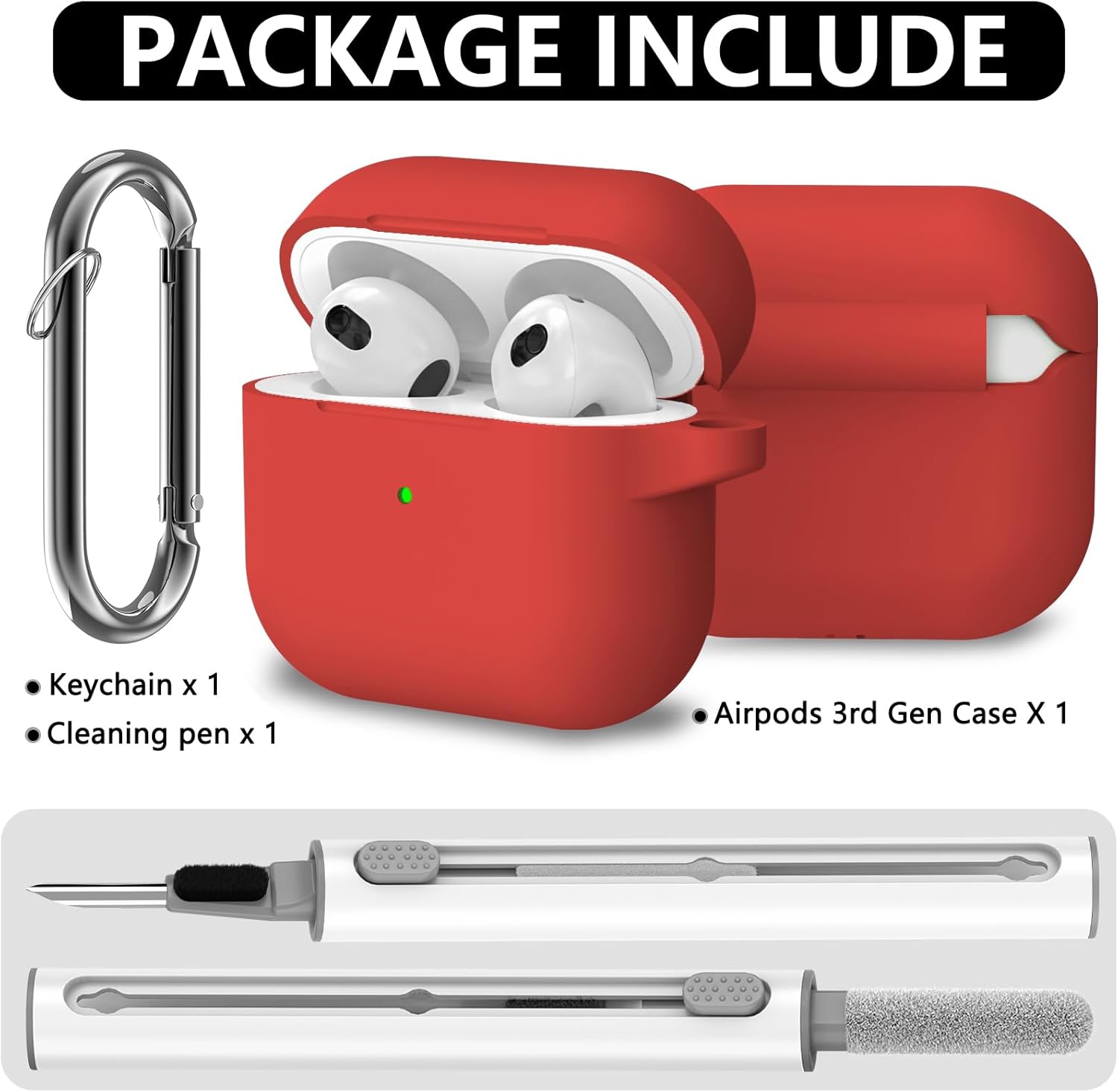 Inesore Съвместим с Airpods 3 Калъф, Силиконов защитен калъф за Apple AirPods 3-то поколение с ключодържател и почистваща писалка, за жени (червен)