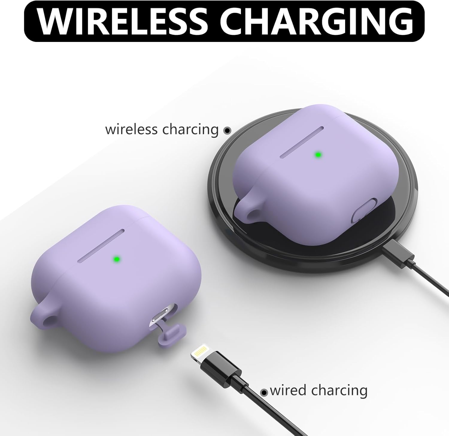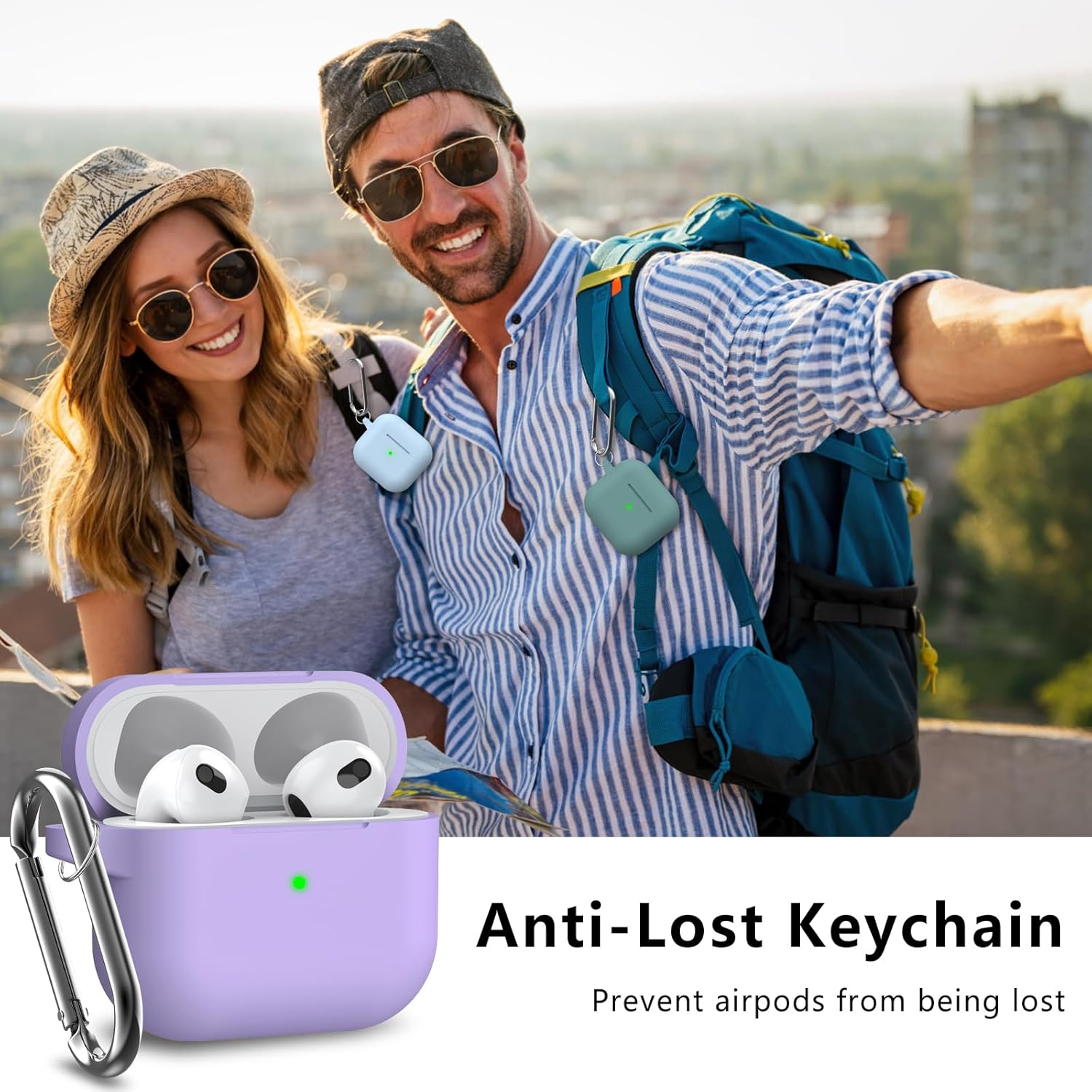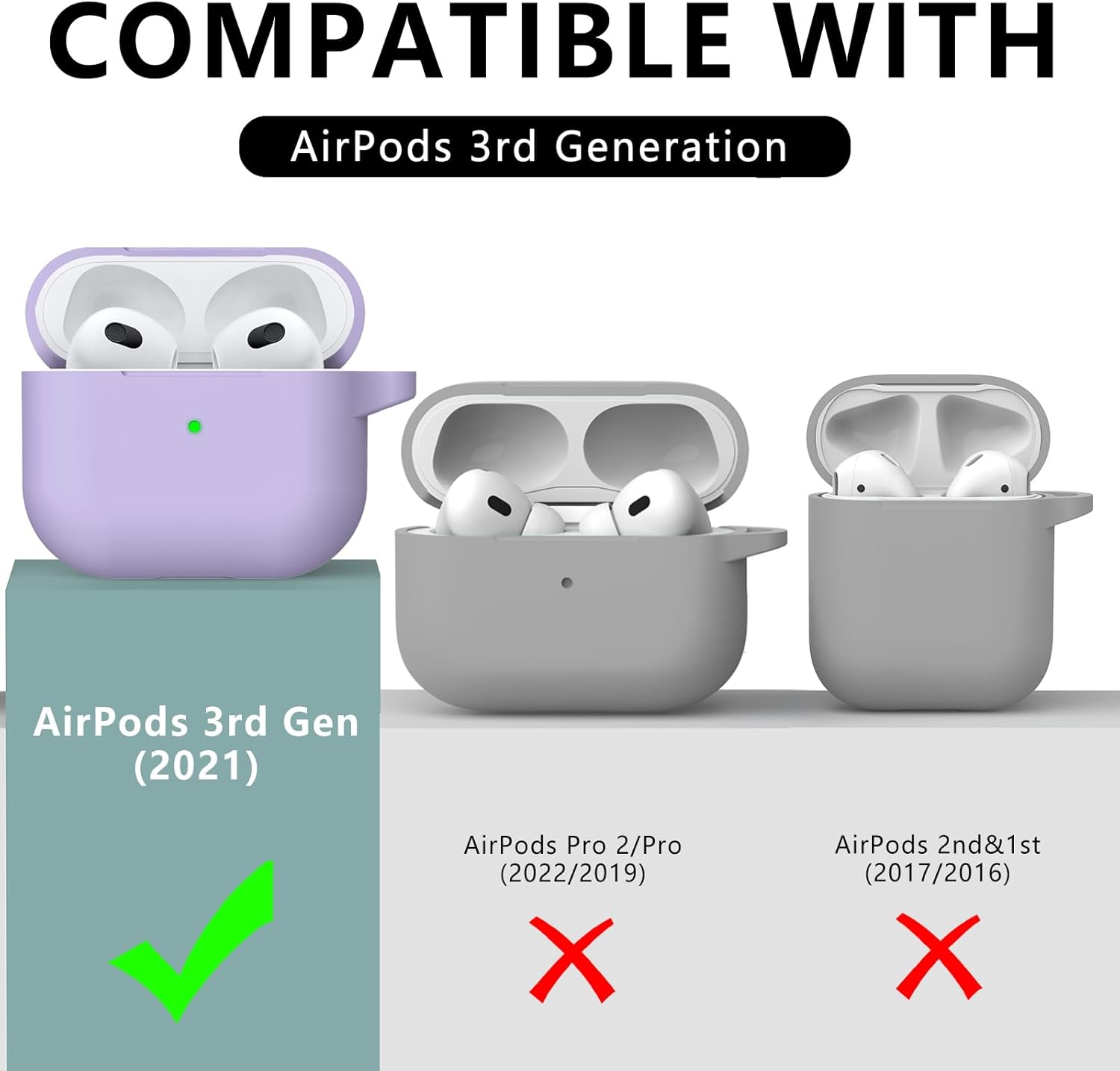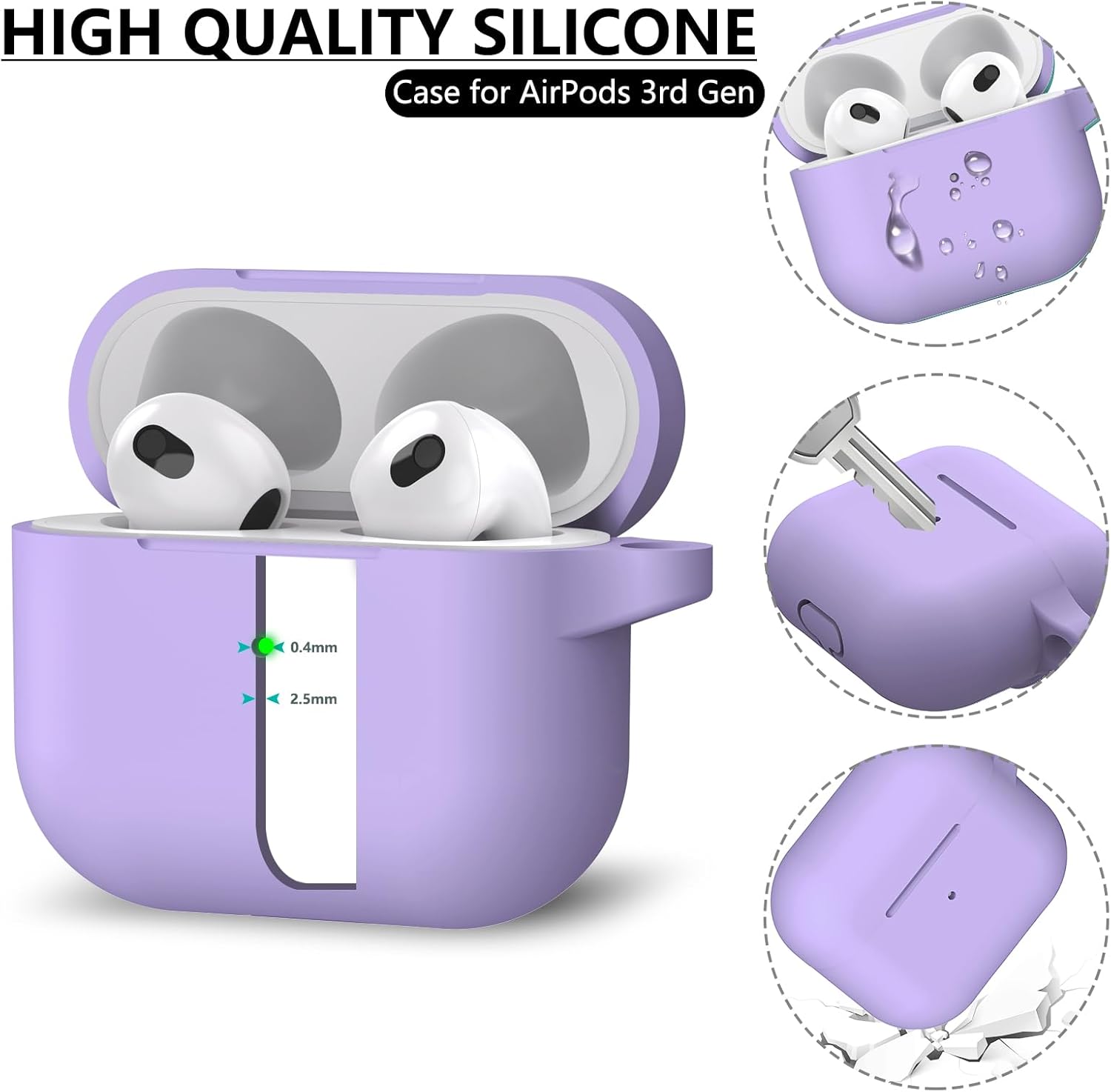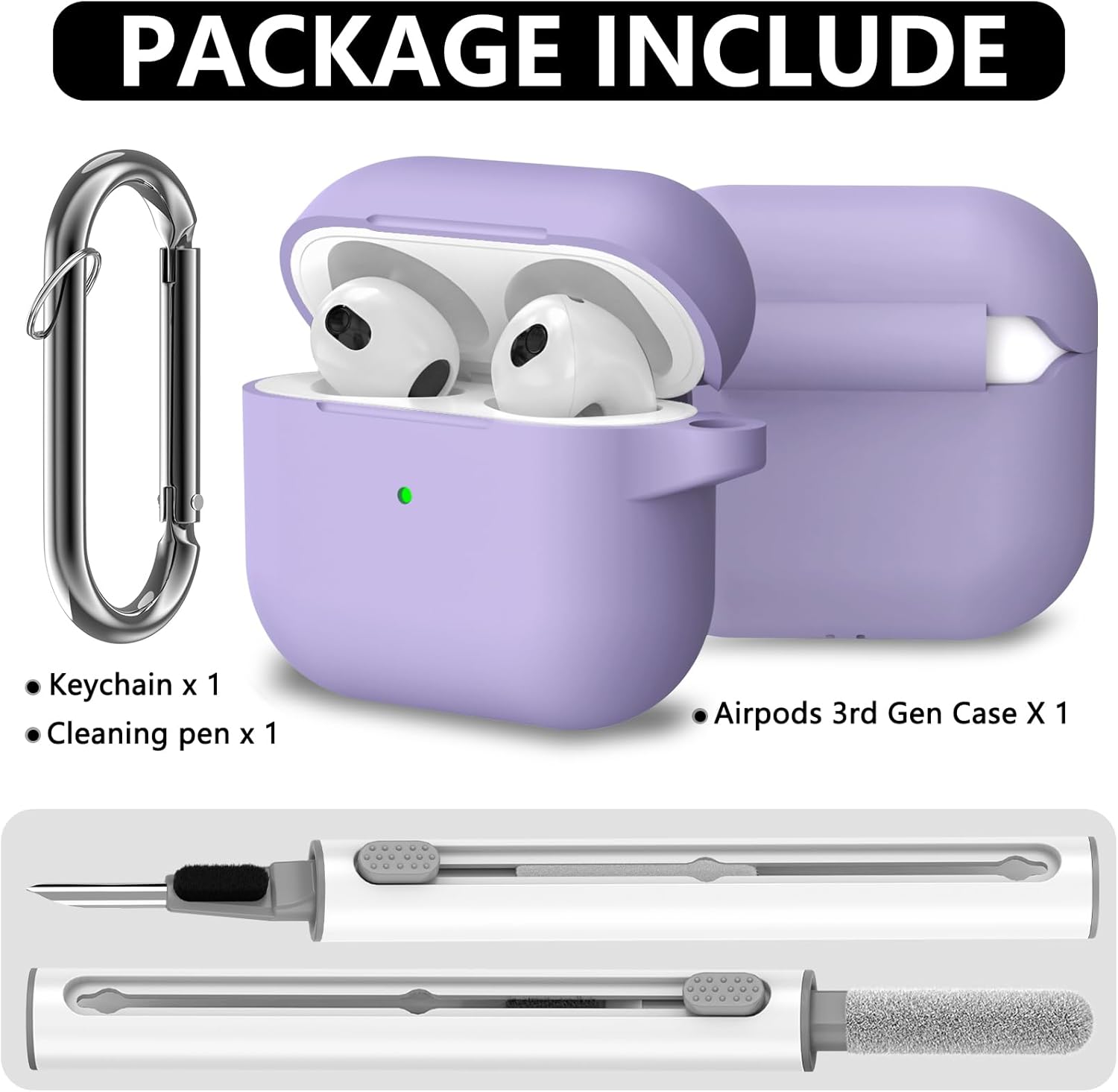 Inesore Съвместим с Airpods 3 Калъф, Силиконов защитен калъф за Apple AirPods 3-то поколение с ключодържател и почистваща писалка, за жени (лилав)