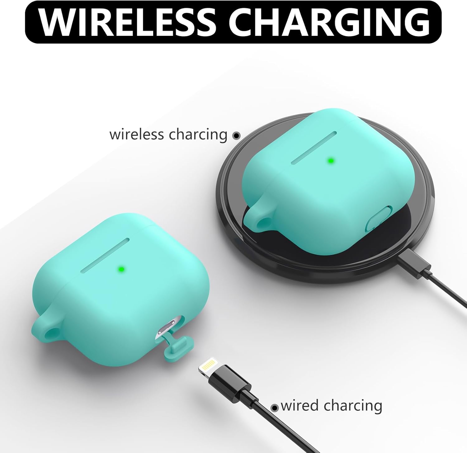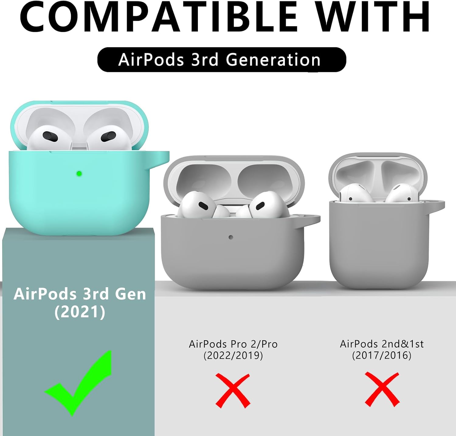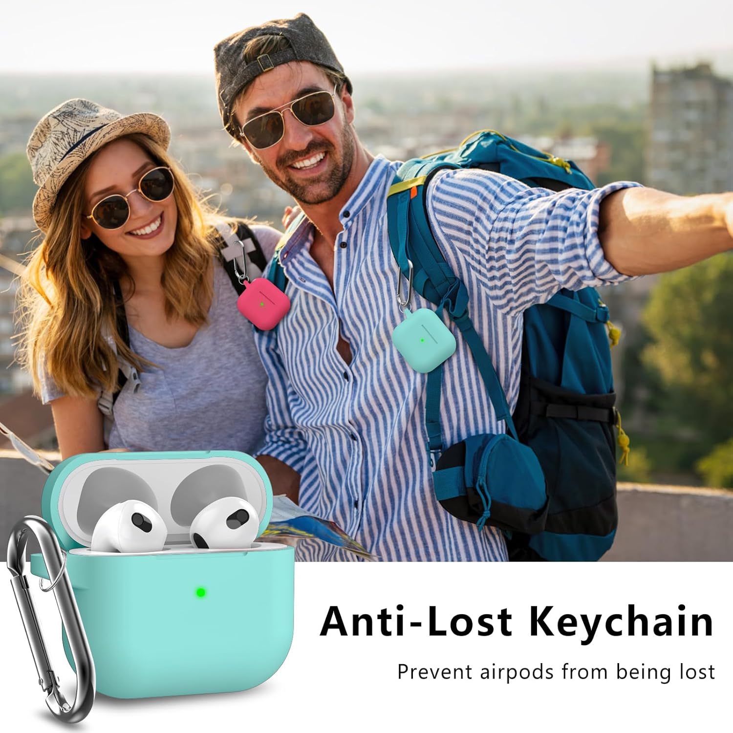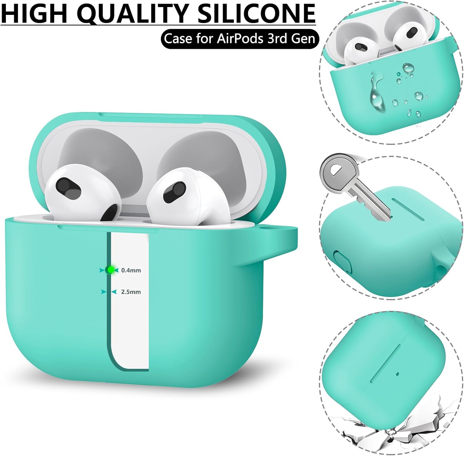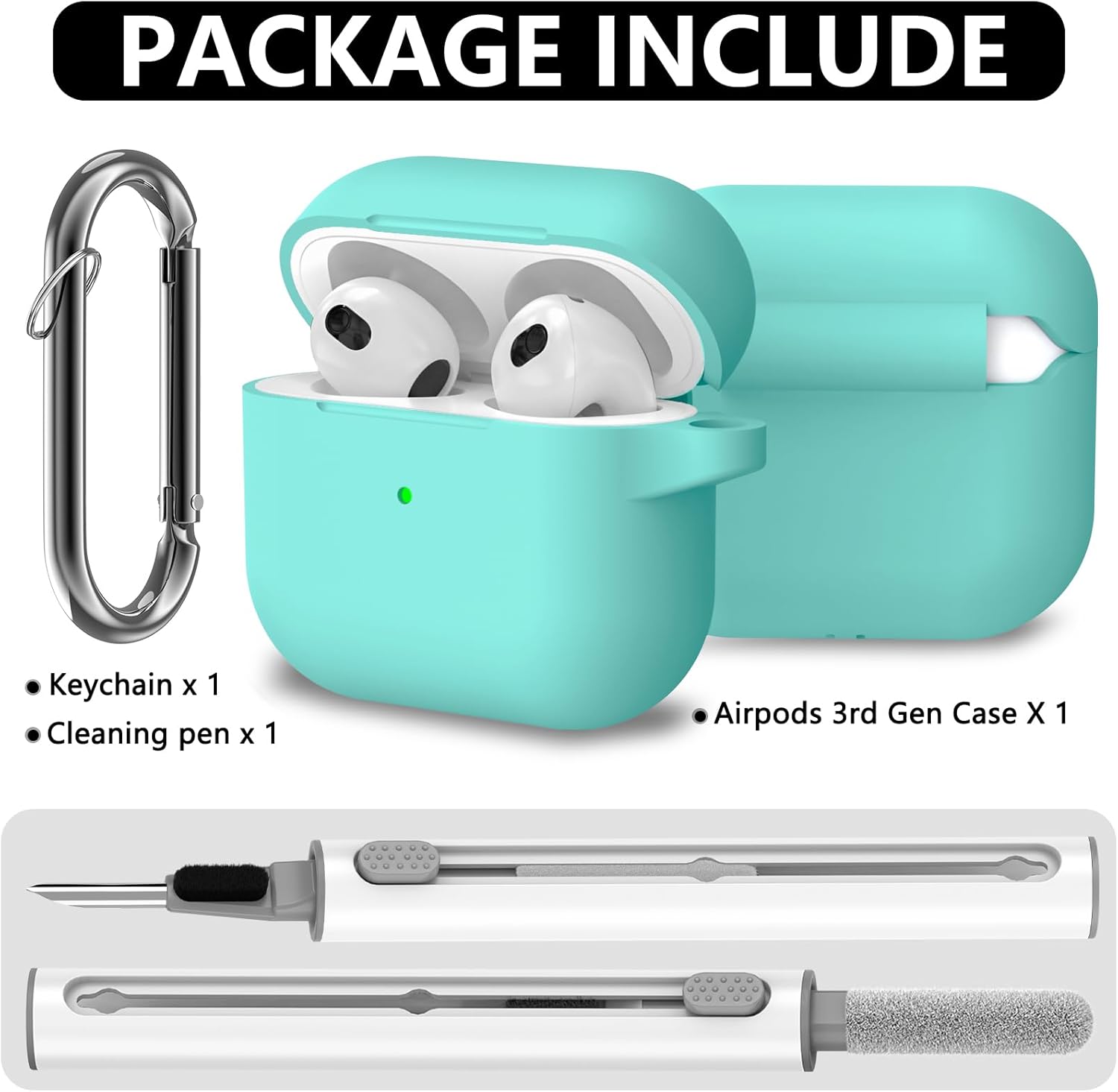 Inesore Съвместим с Airpods 3 Калъф, Силиконов защитен калъф за Apple AirPods 3-то поколение с ключодържател и почистваща писалка, за жени (ментово зелено)