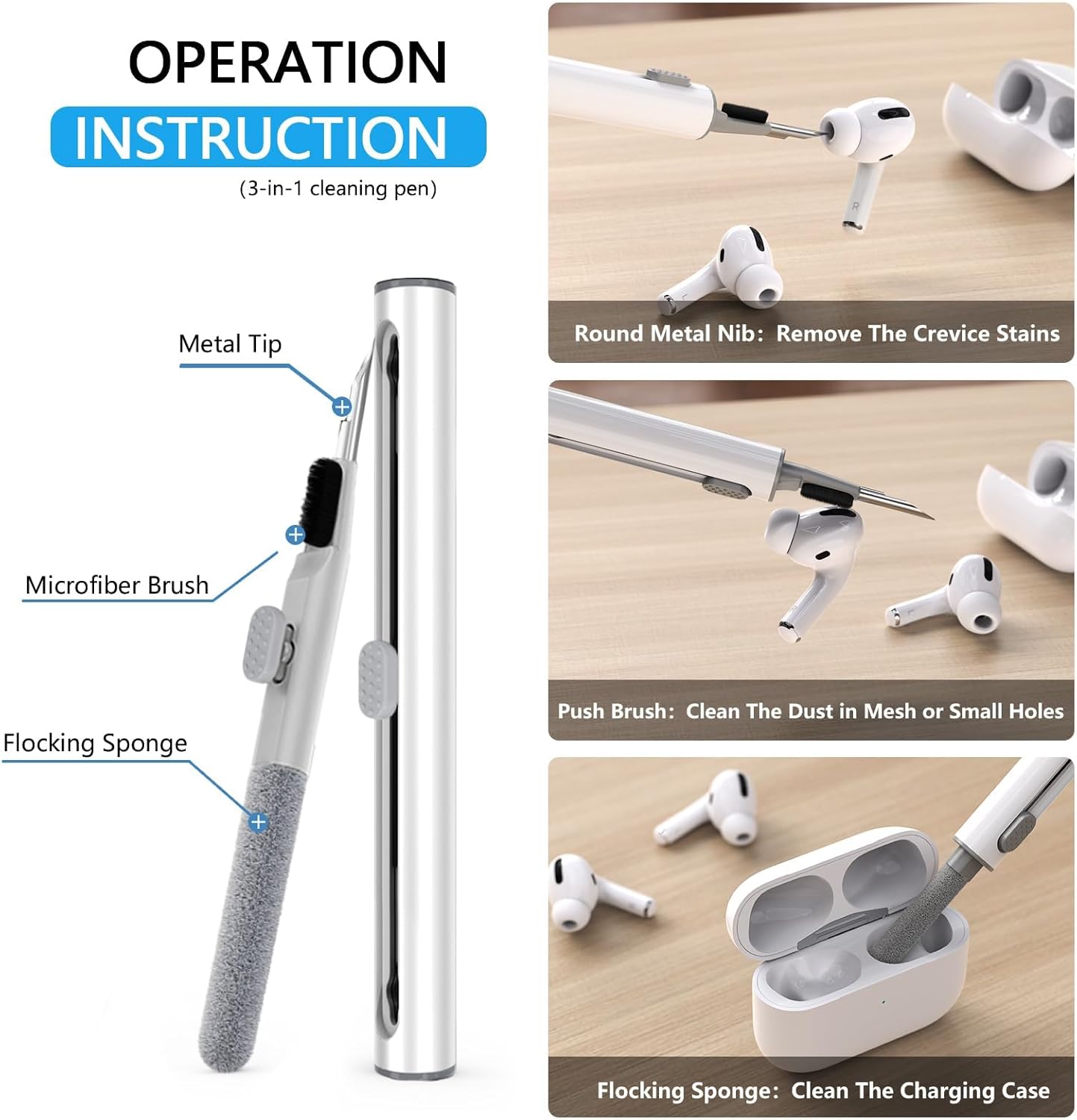 • Комплект за почистване 3 в 1: Почистваща писалка с връх за писалка, мека четка и четка за флокиране с висока плътност. Може да ви помогне да премахнете прах и мръсотия от слушалките си. Винаги поддържайте AirPods като нови.