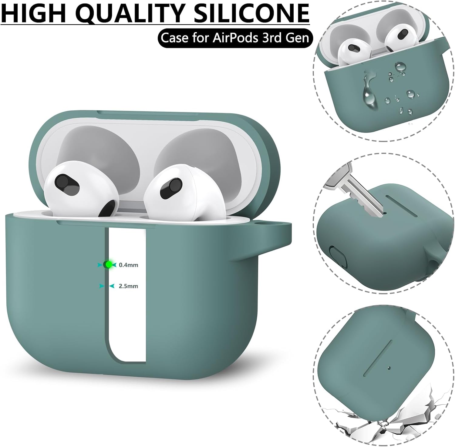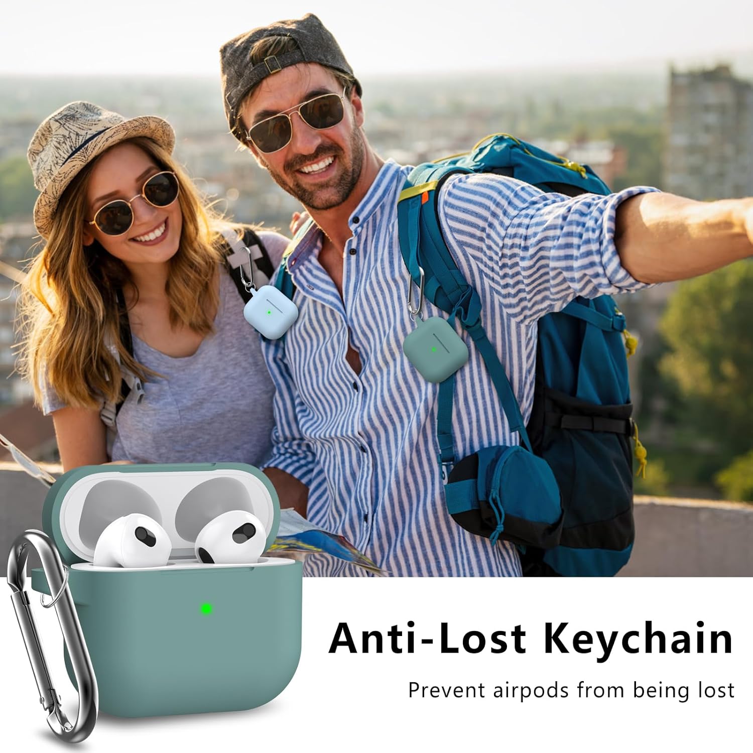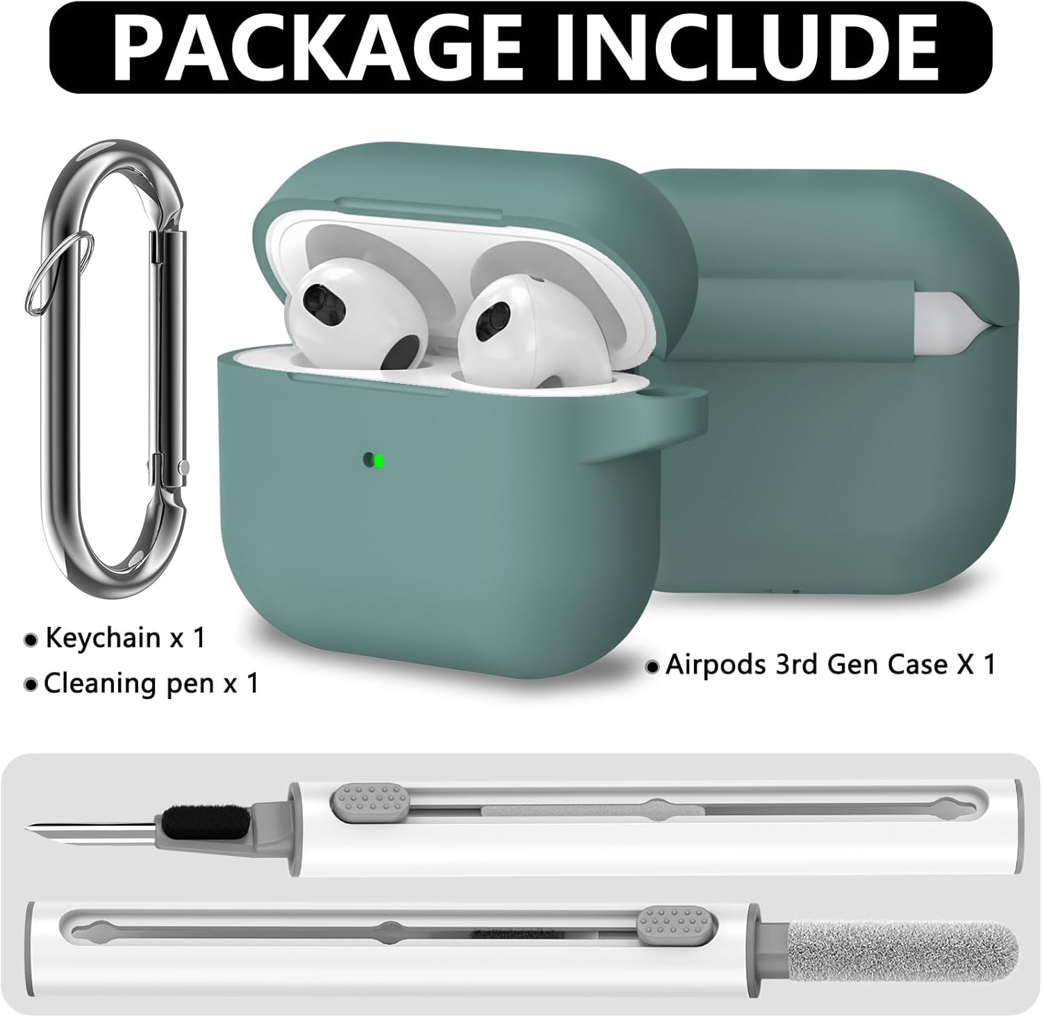 Inesore Съвместим с Airpods 3 Калъф, Силиконов защитен калъф за Apple AirPods 3-то поколение с ключодържател и почистваща писалка, за жени (зелен)