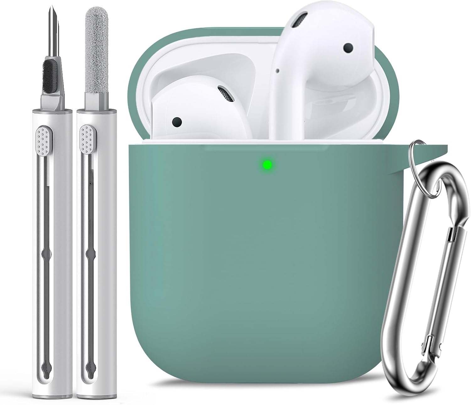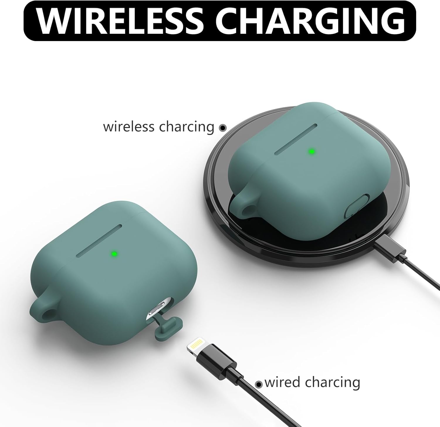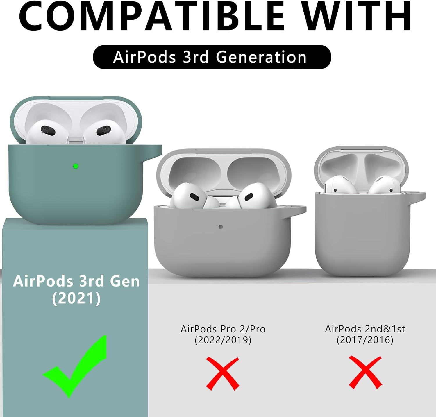 Inesore Съвместим с Airpods 3 Калъф, Силиконов защитен калъф за Apple AirPods 3-то поколение с ключодържател и почистваща писалка, за жени (зелен)
