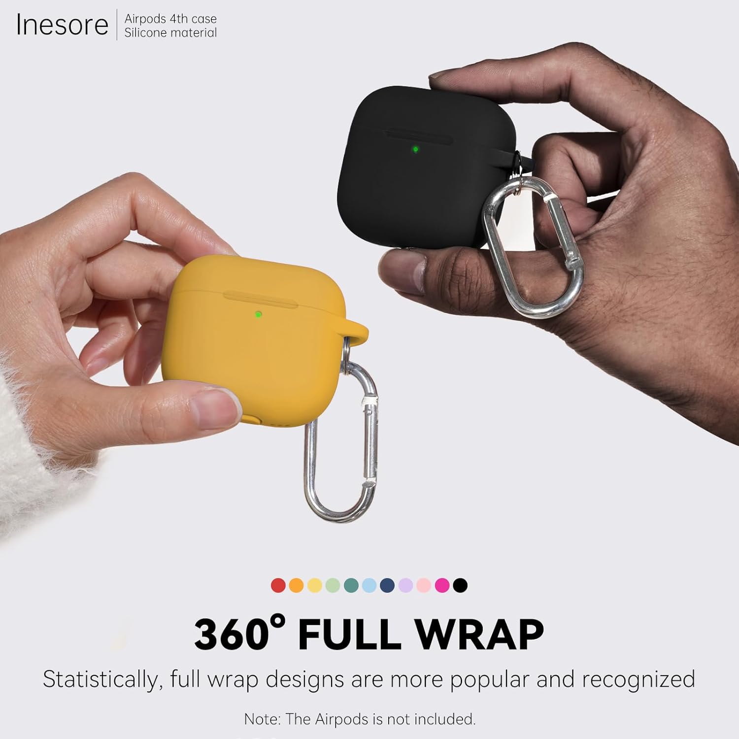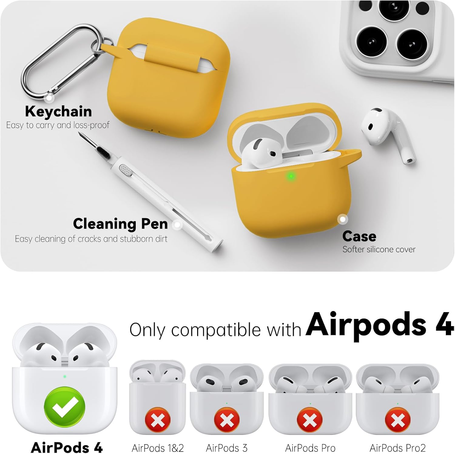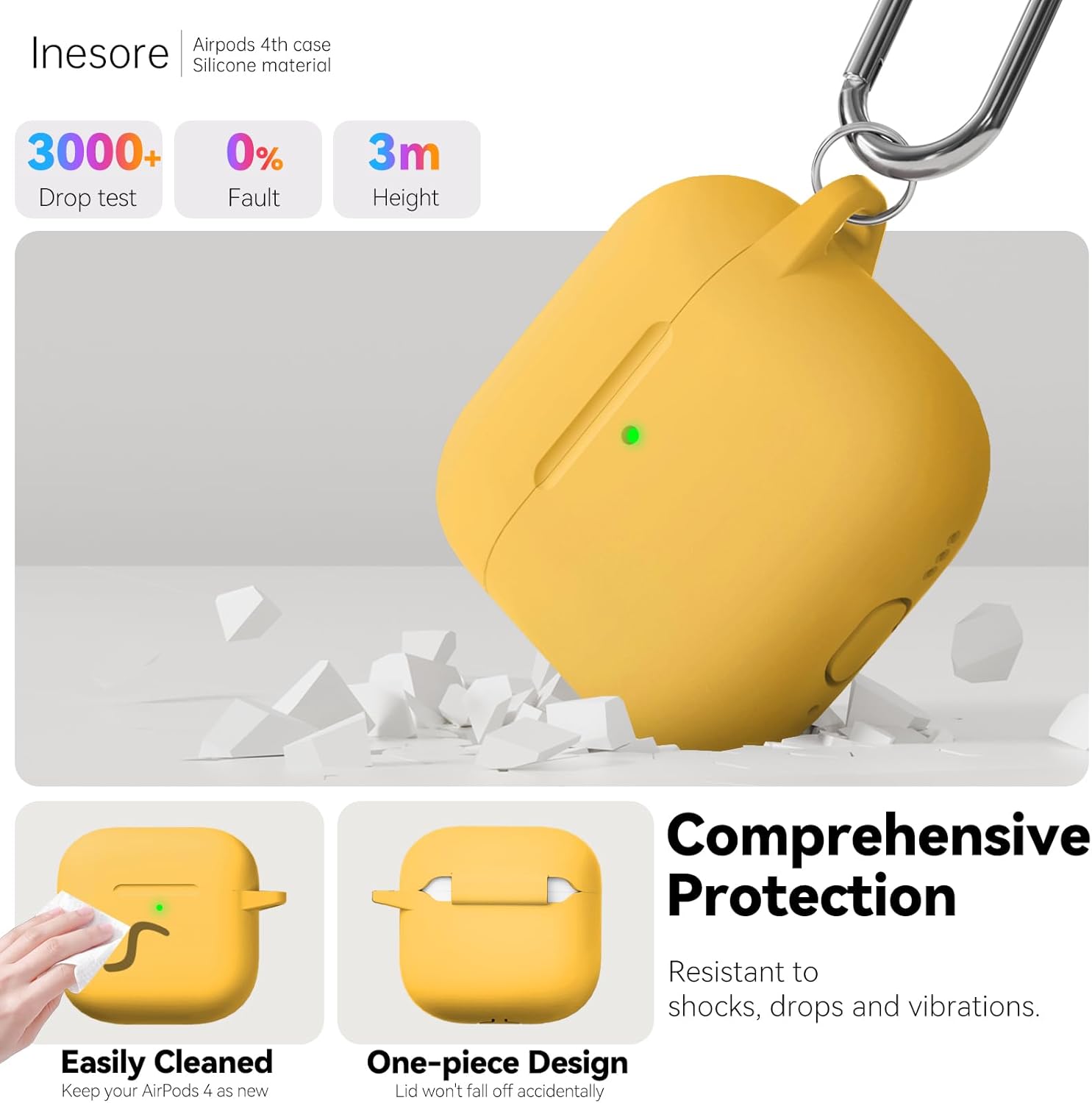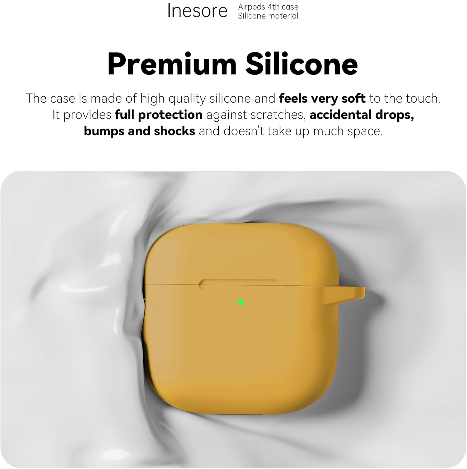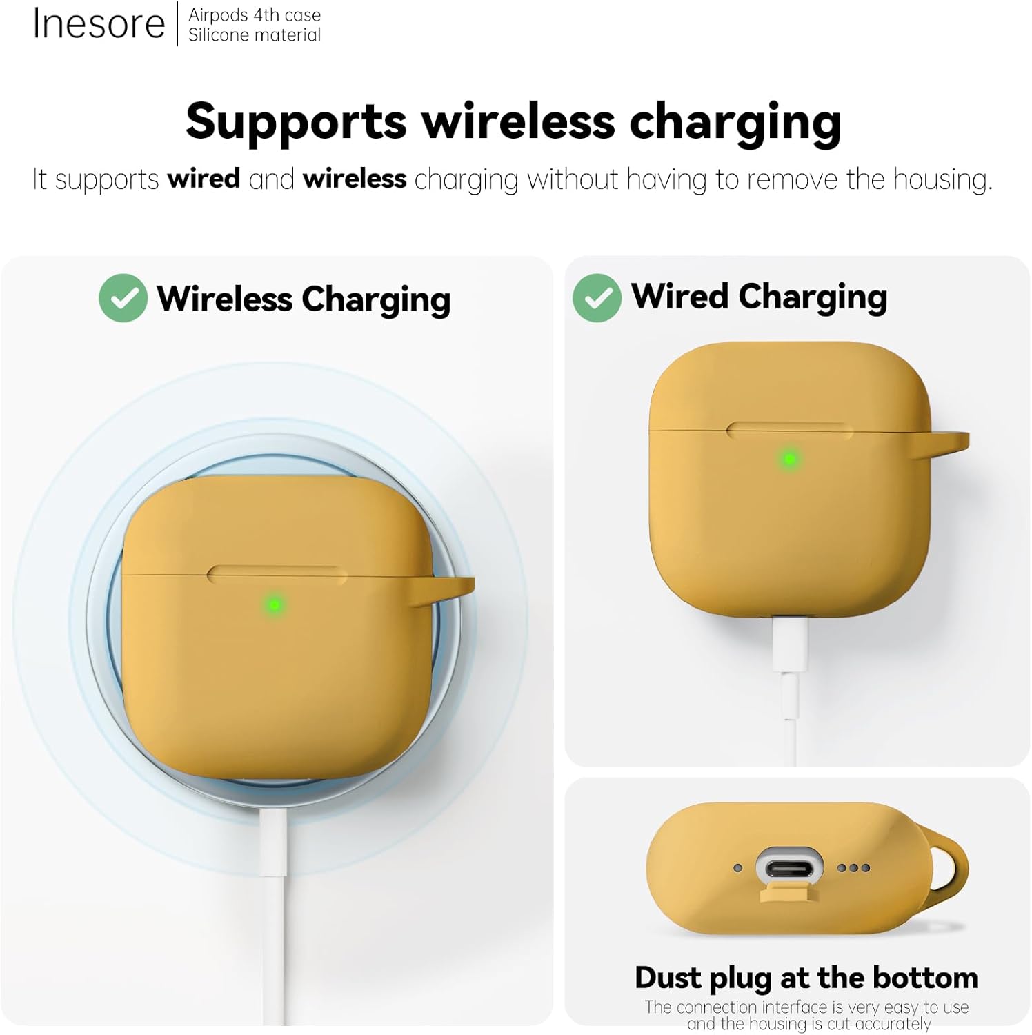 Inesore, съвместим с Airpods 4, силиконов защитен калъф за Apple Airpods 4 с активно шумопотискане, поддръжка на безжично зареждане и видим преден LED, с почистваща писалка, куркума