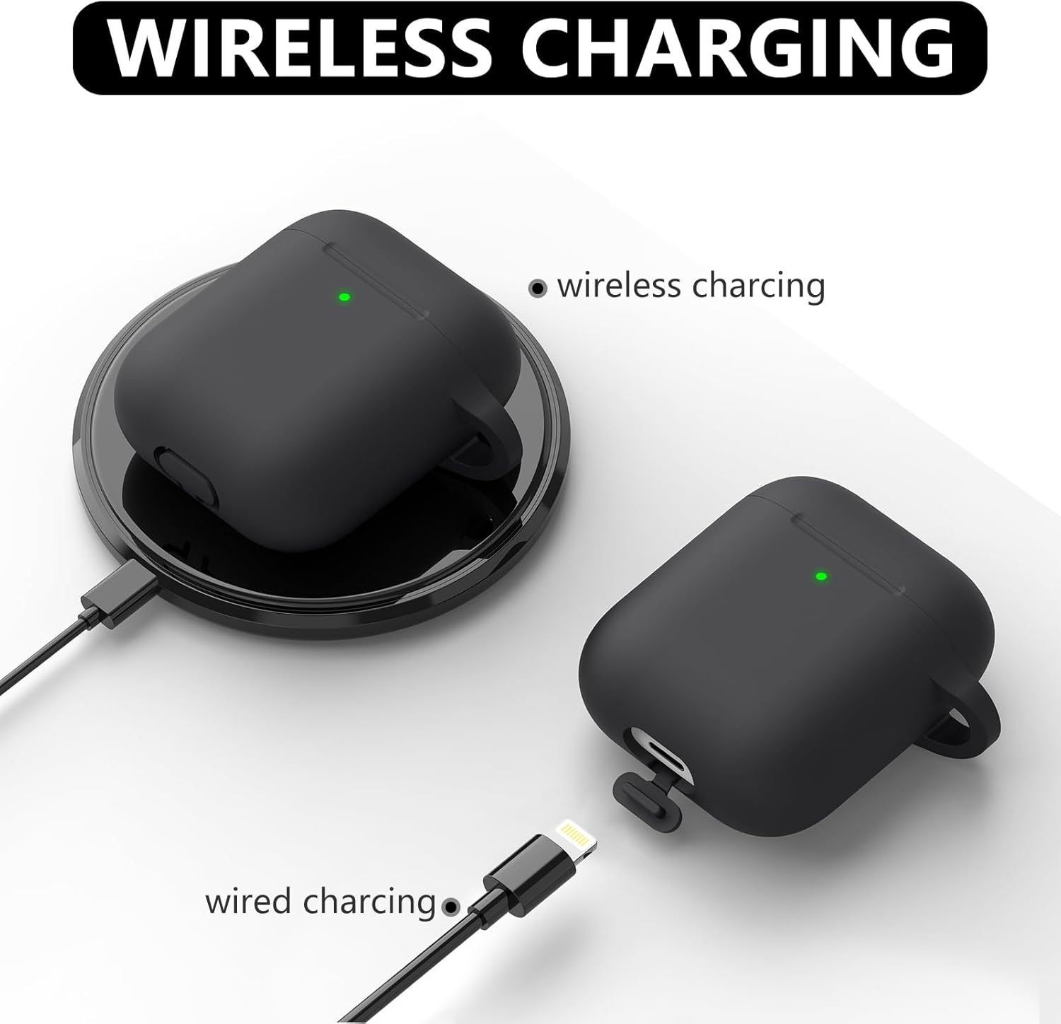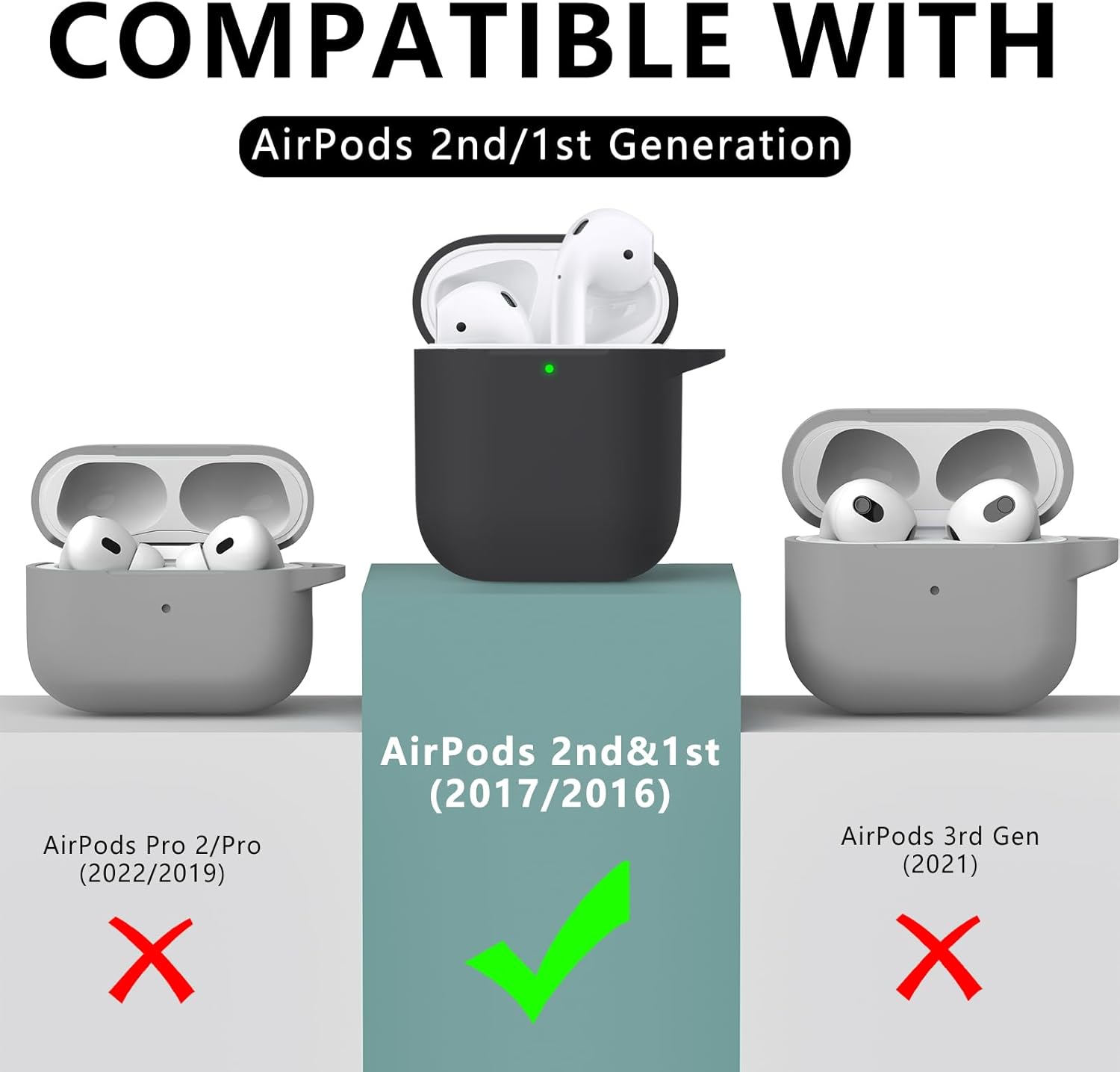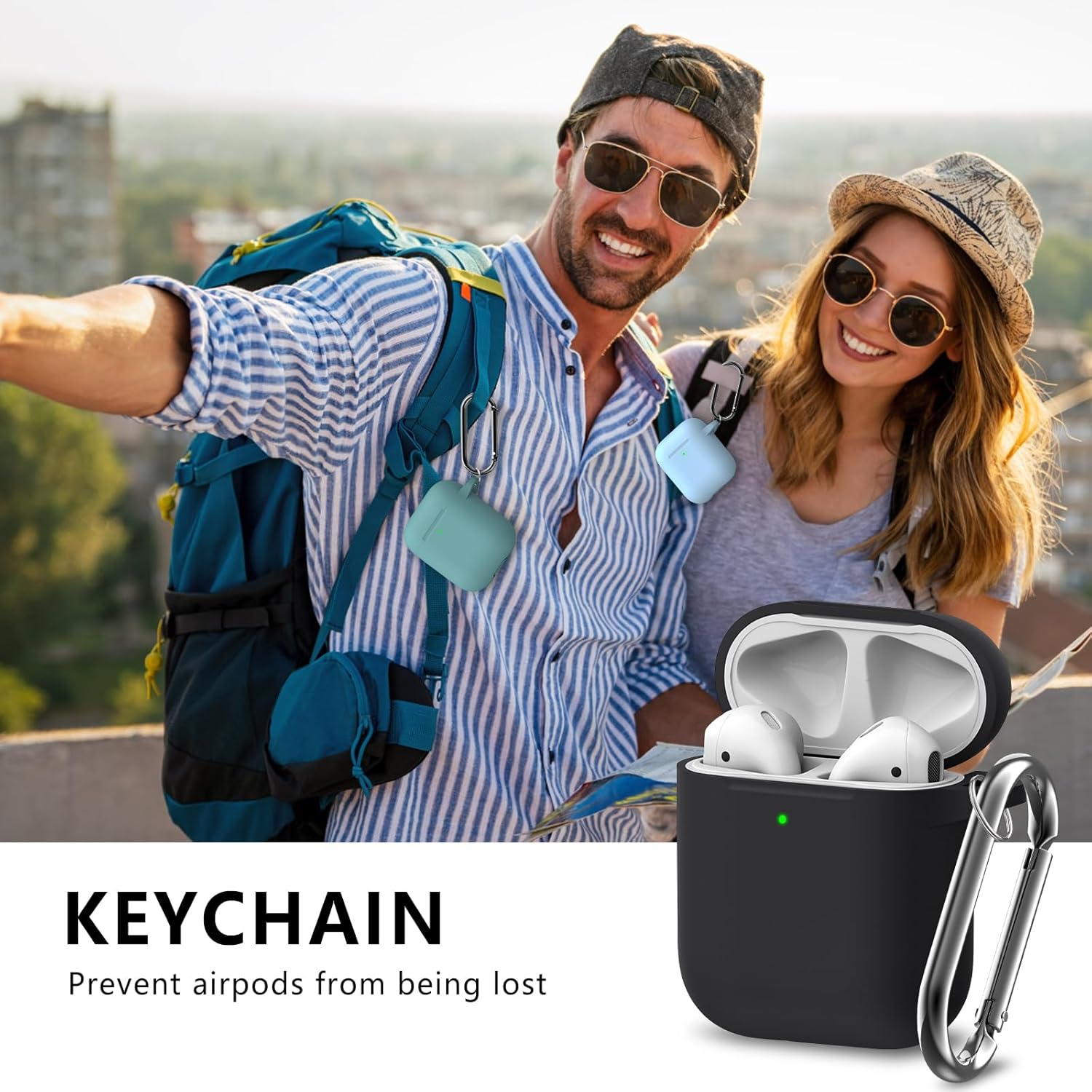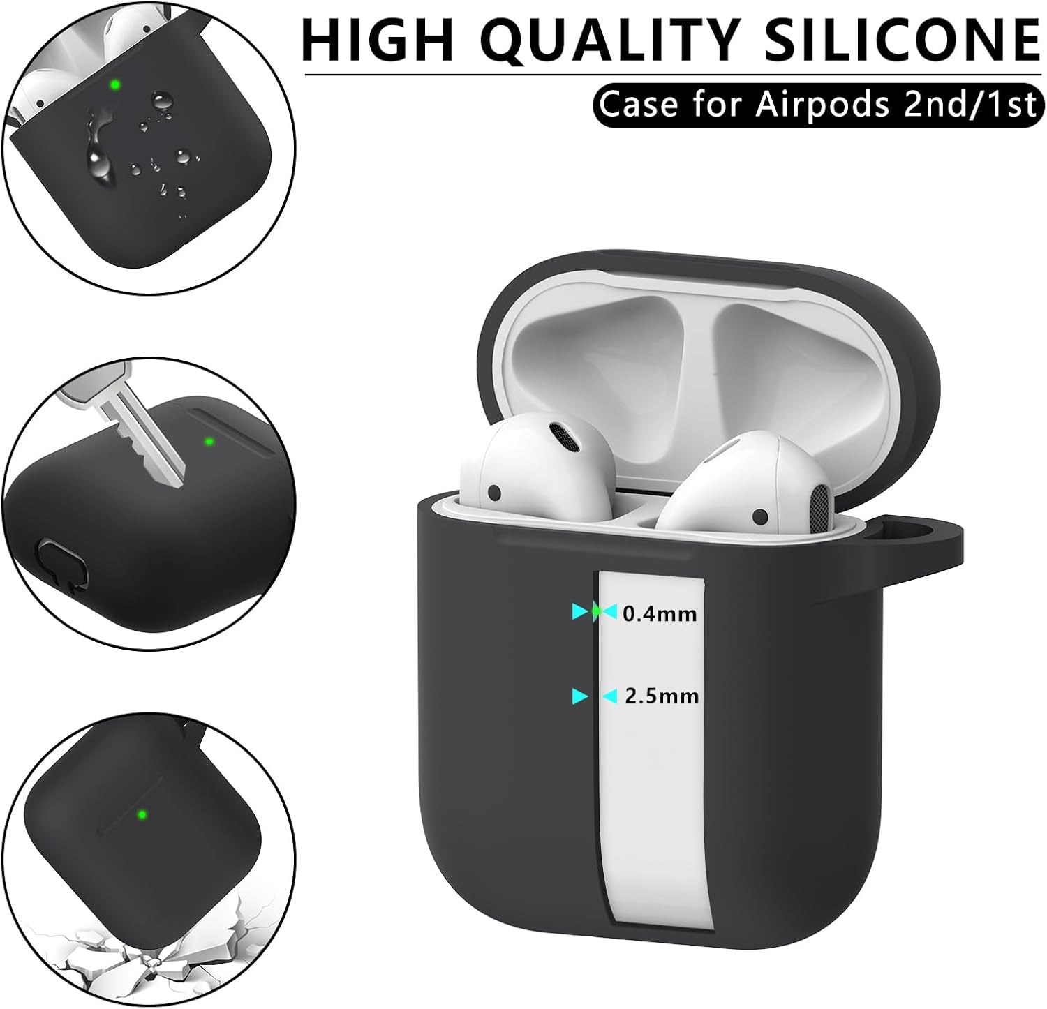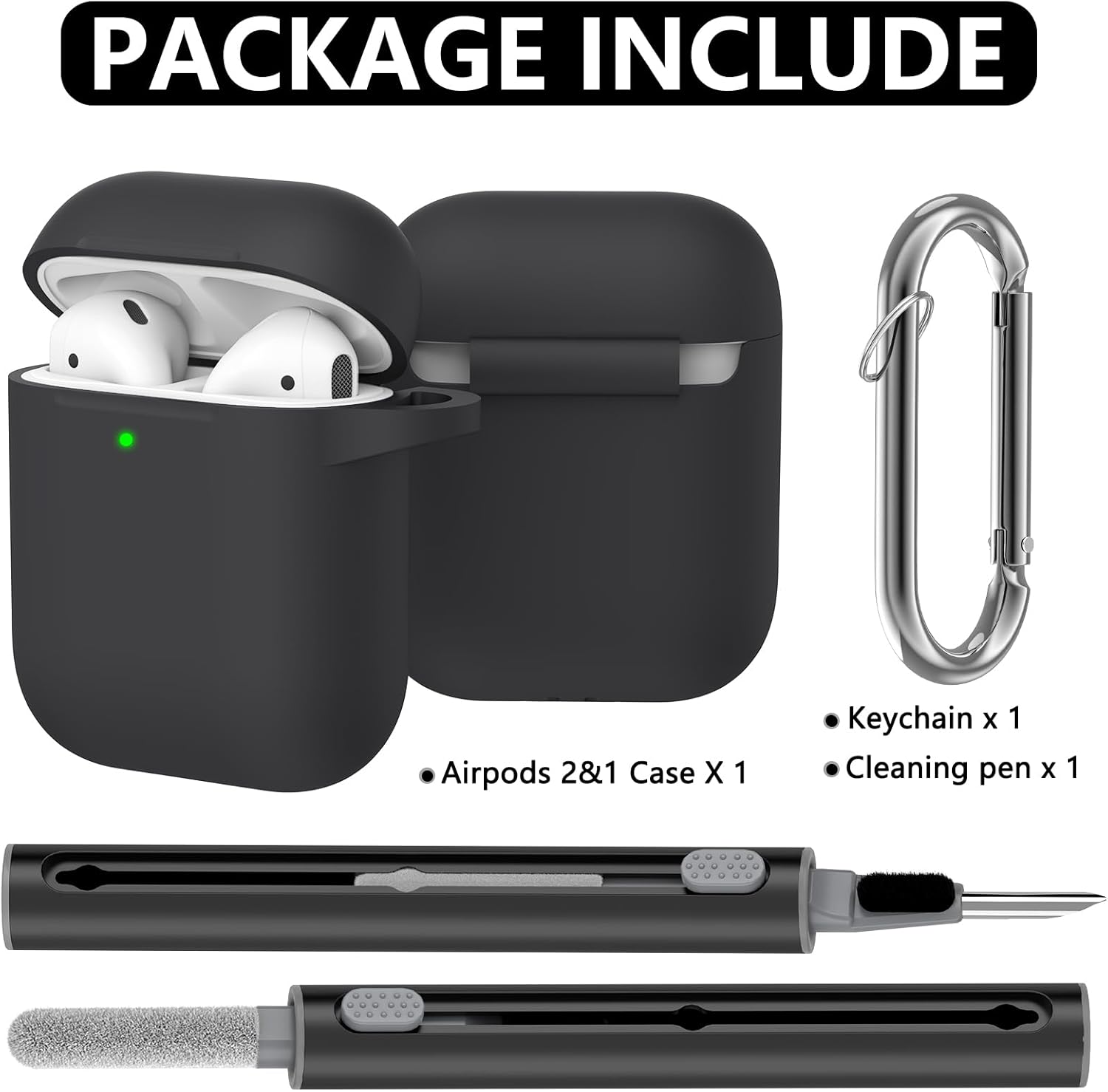 Inesore Съвместим с Airpods Калъфи, Мек силиконов защитен калъф за Apple AirPods 2-ро/1-во поколение Заряден калъф с ключодържател и почистваща писалка, за жени и мъже, черен