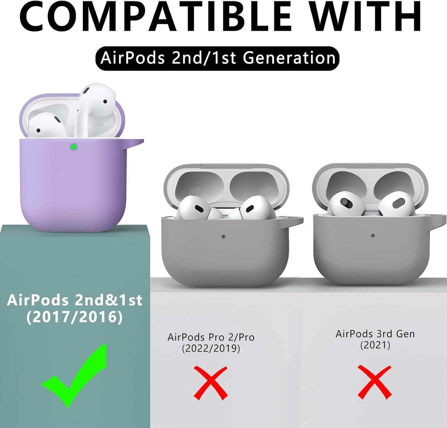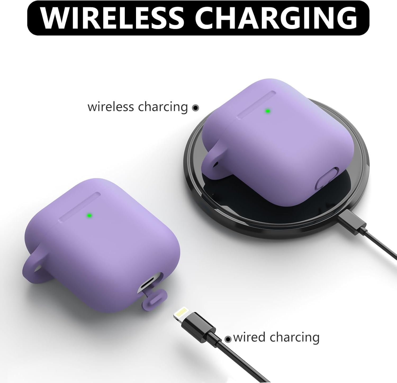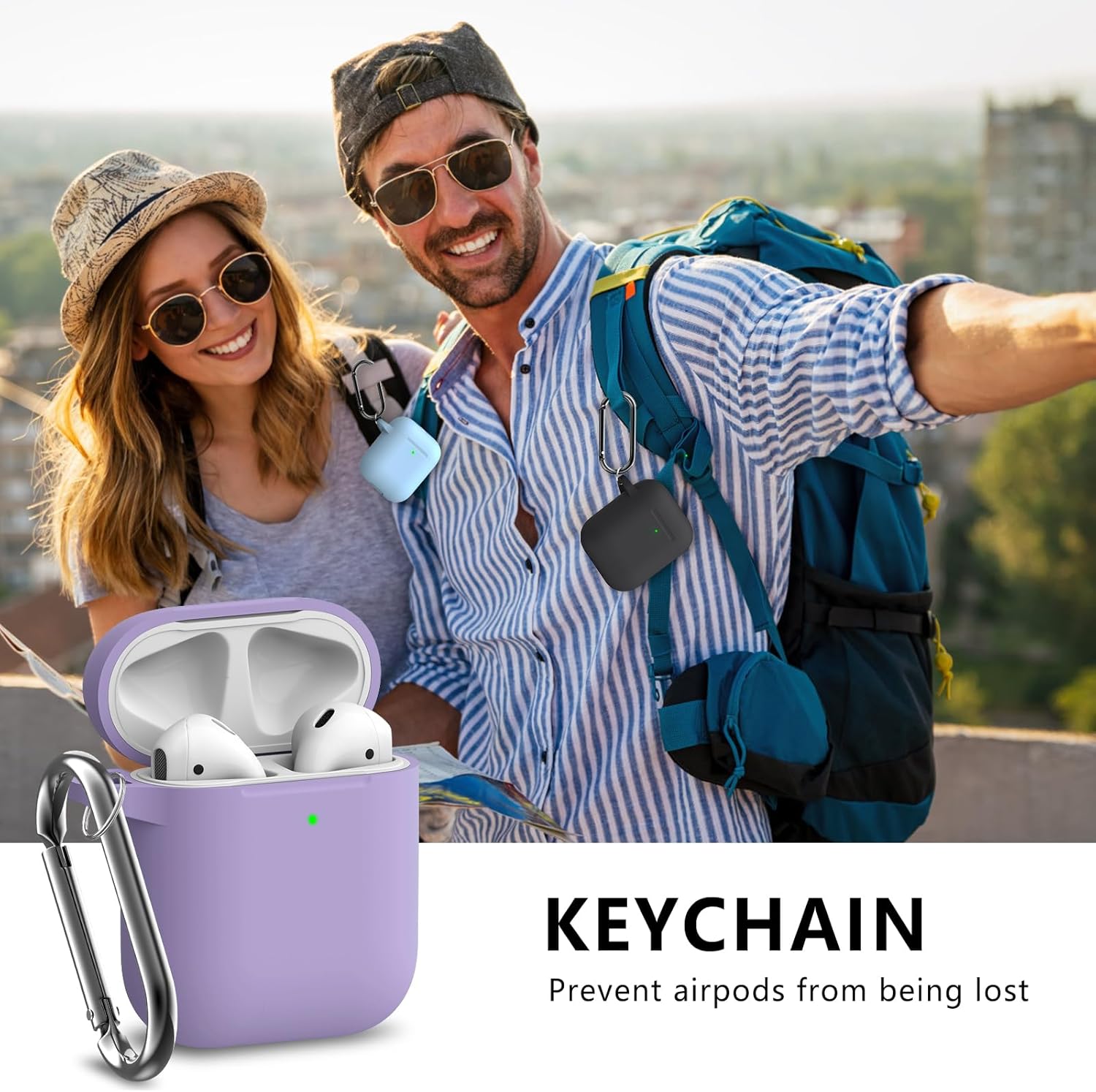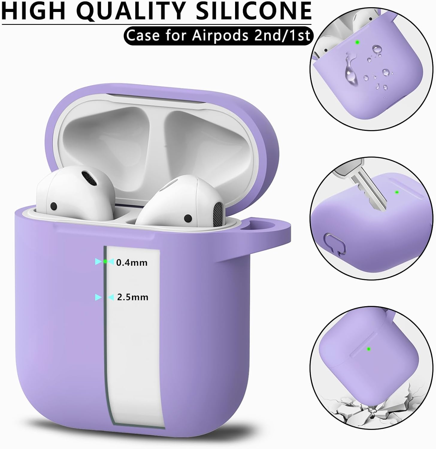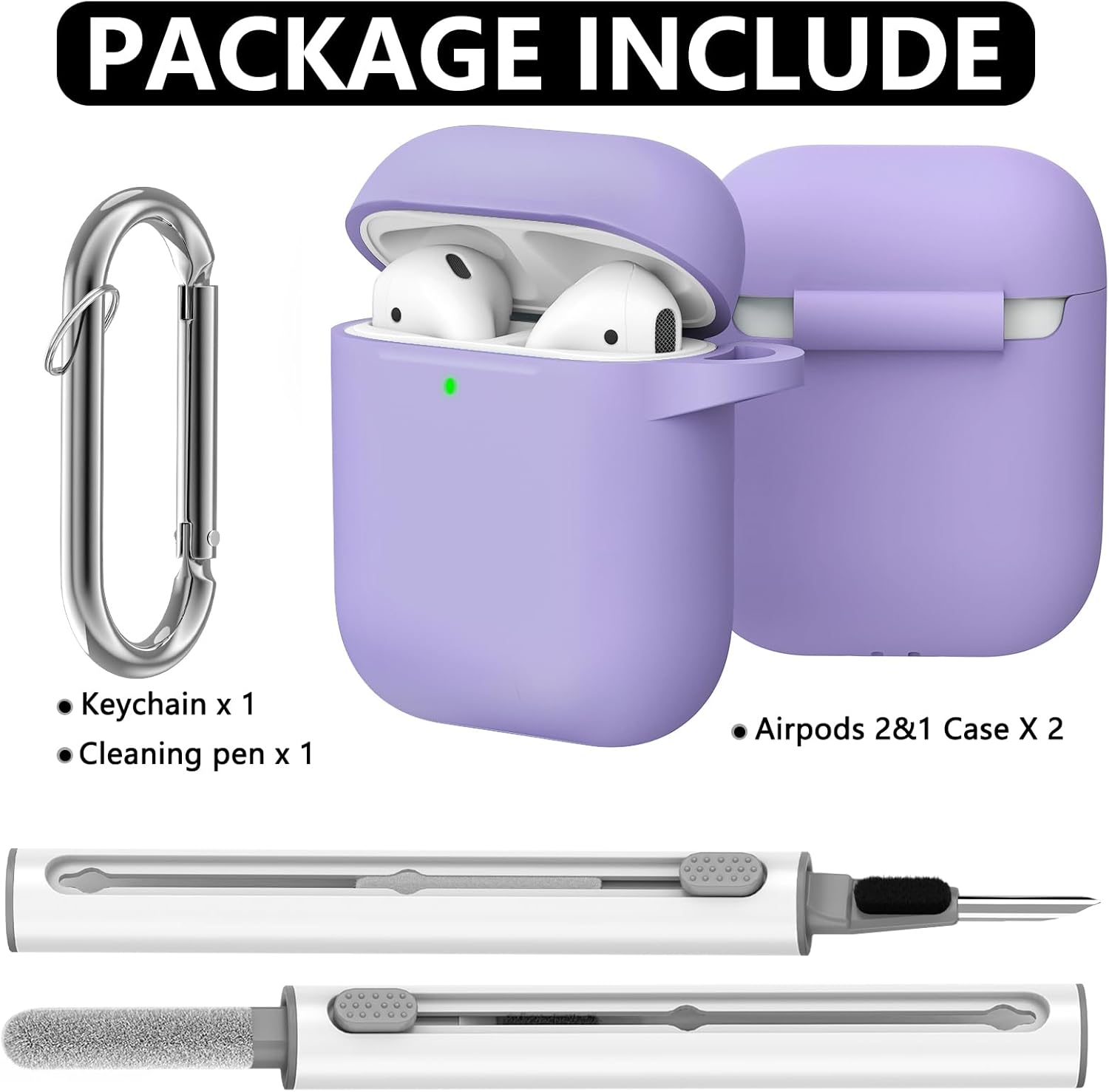 Inesore Съвместим с Airpods Калъфи, Мек силиконов защитен калъф за Apple AirPods 2-ро/1-во поколение Заряден калъф с ключодържател и почистваща писалка, за жени и мъже, лилав