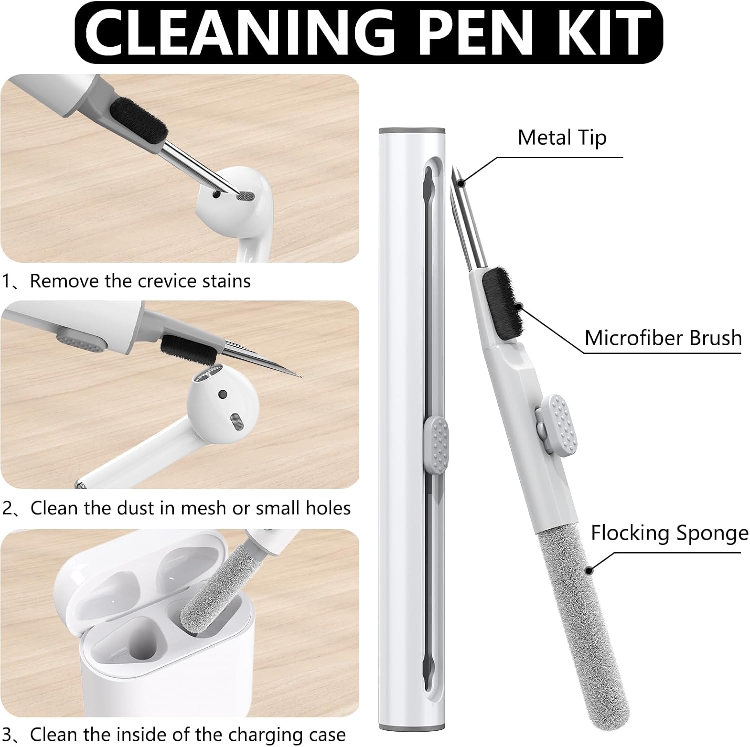 • Комплект за почистване 3 в 1: Почистваща писалка с връх за писалка, мека четка и четка за флокиране с висока плътност. Може да ви помогне да премахнете прах и мръсотия от слушалките си. Винаги поддържайте AirPods като нови.