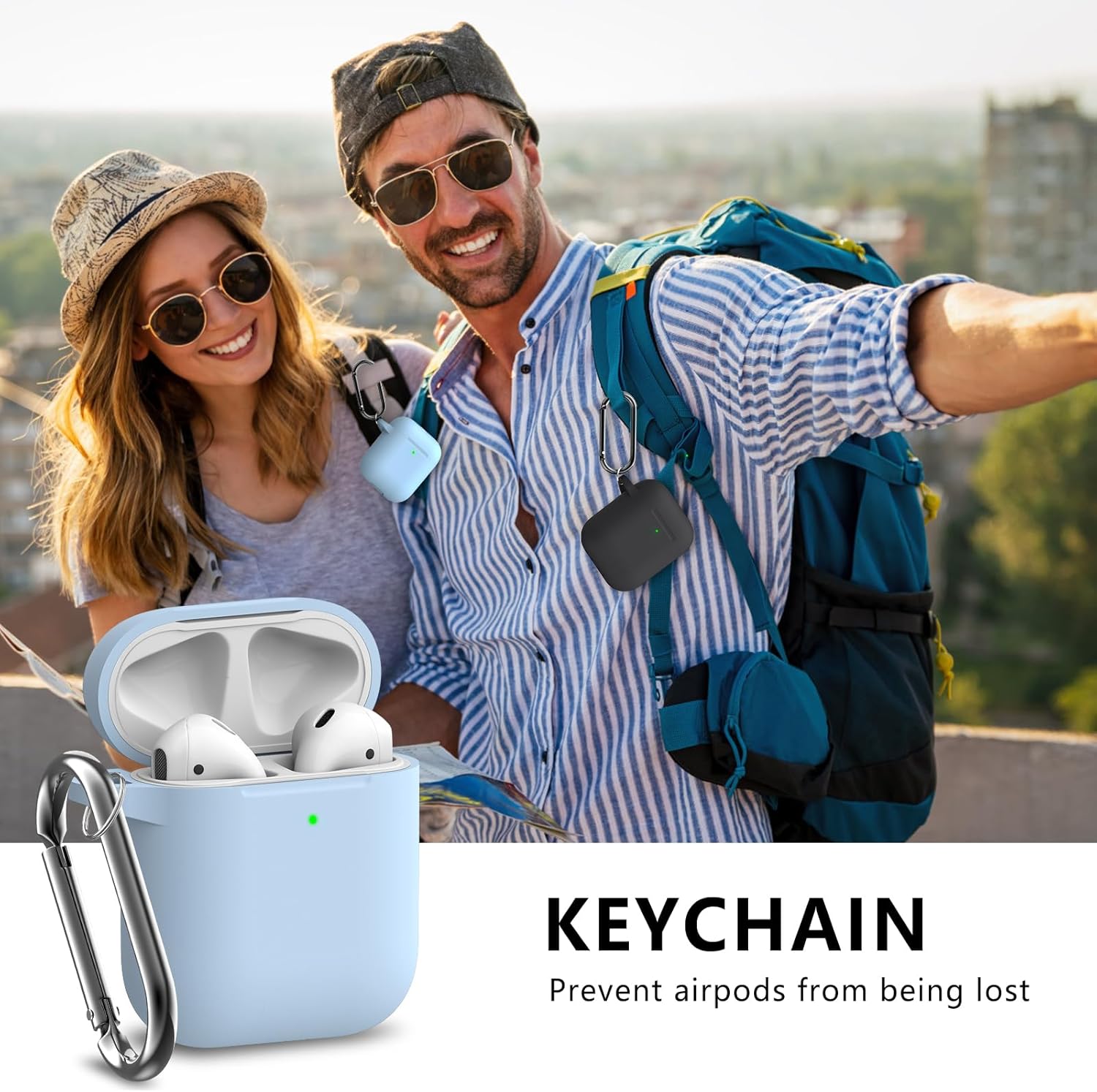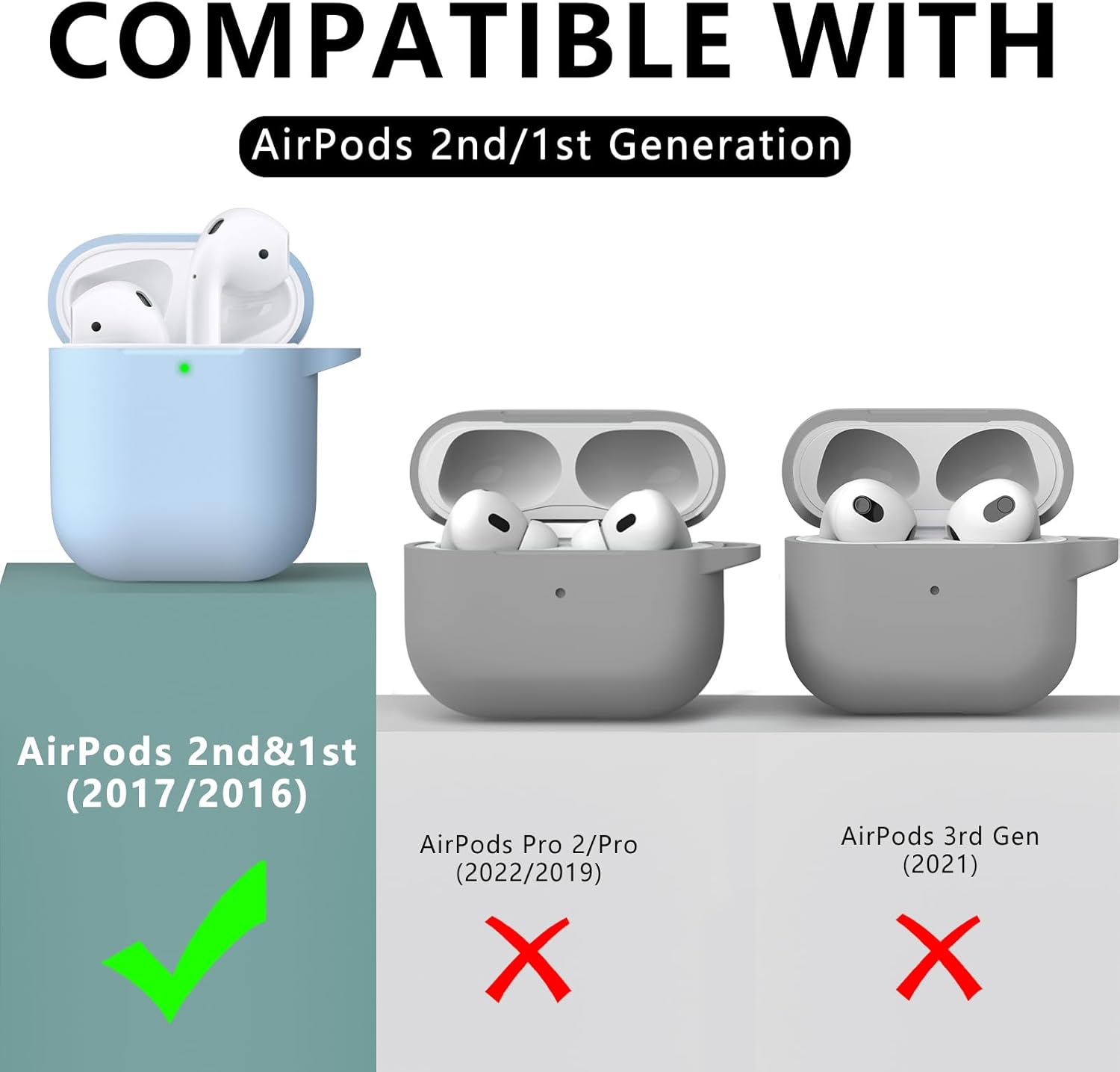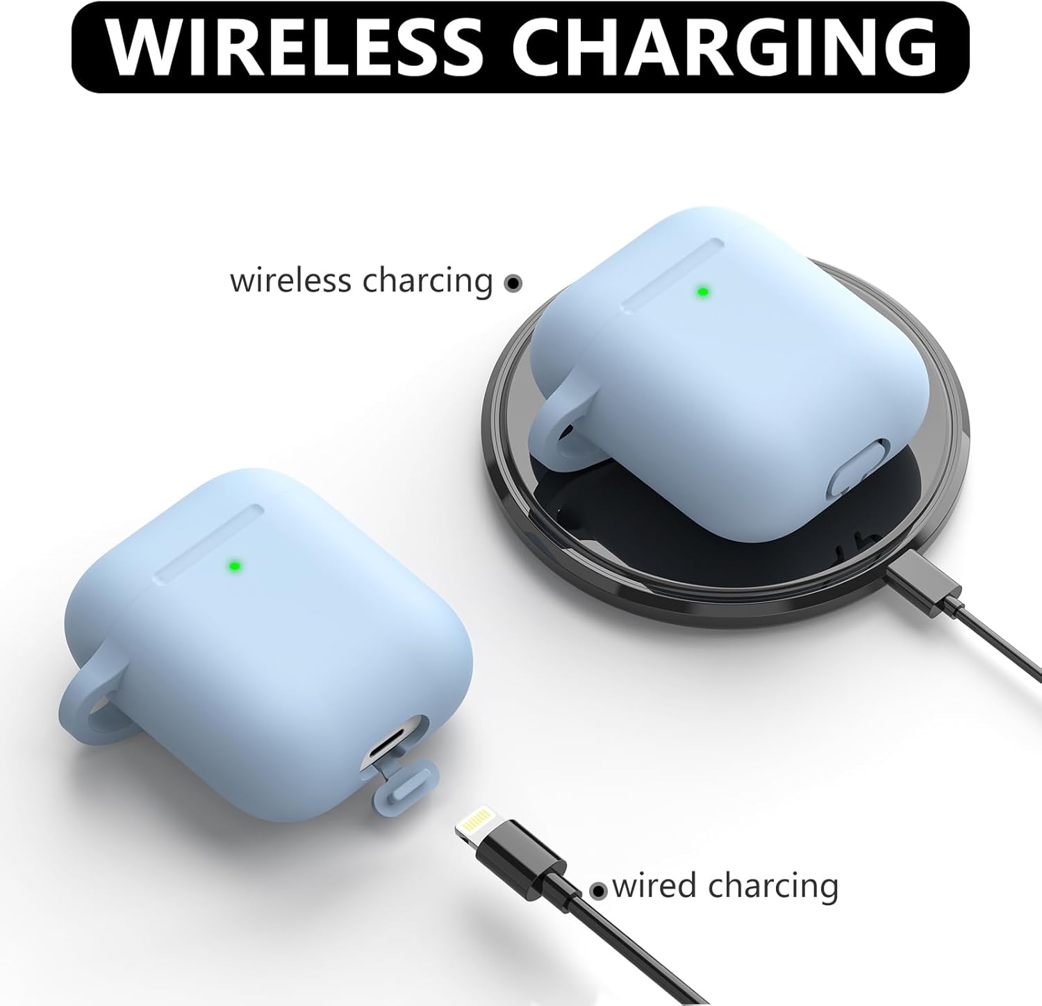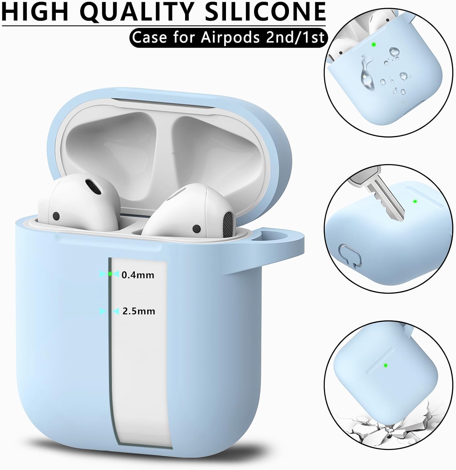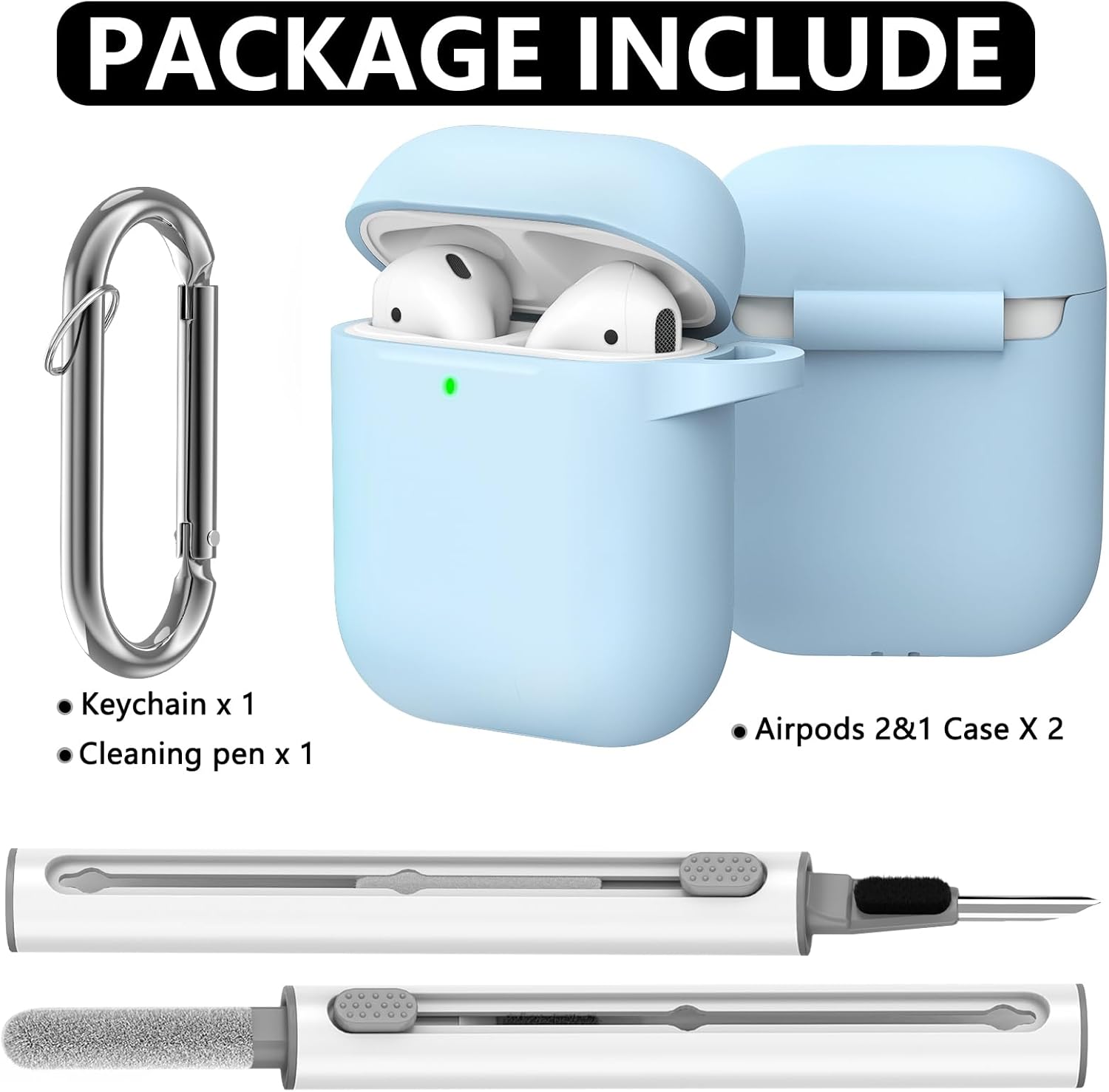 Inesore Съвместим с Airpods Калъфи, Мек силиконов защитен калъф за Apple AirPods 2-ро/1-во поколение Заряден калъф с ключодържател и почистваща писалка, за жени и мъже, небесно син