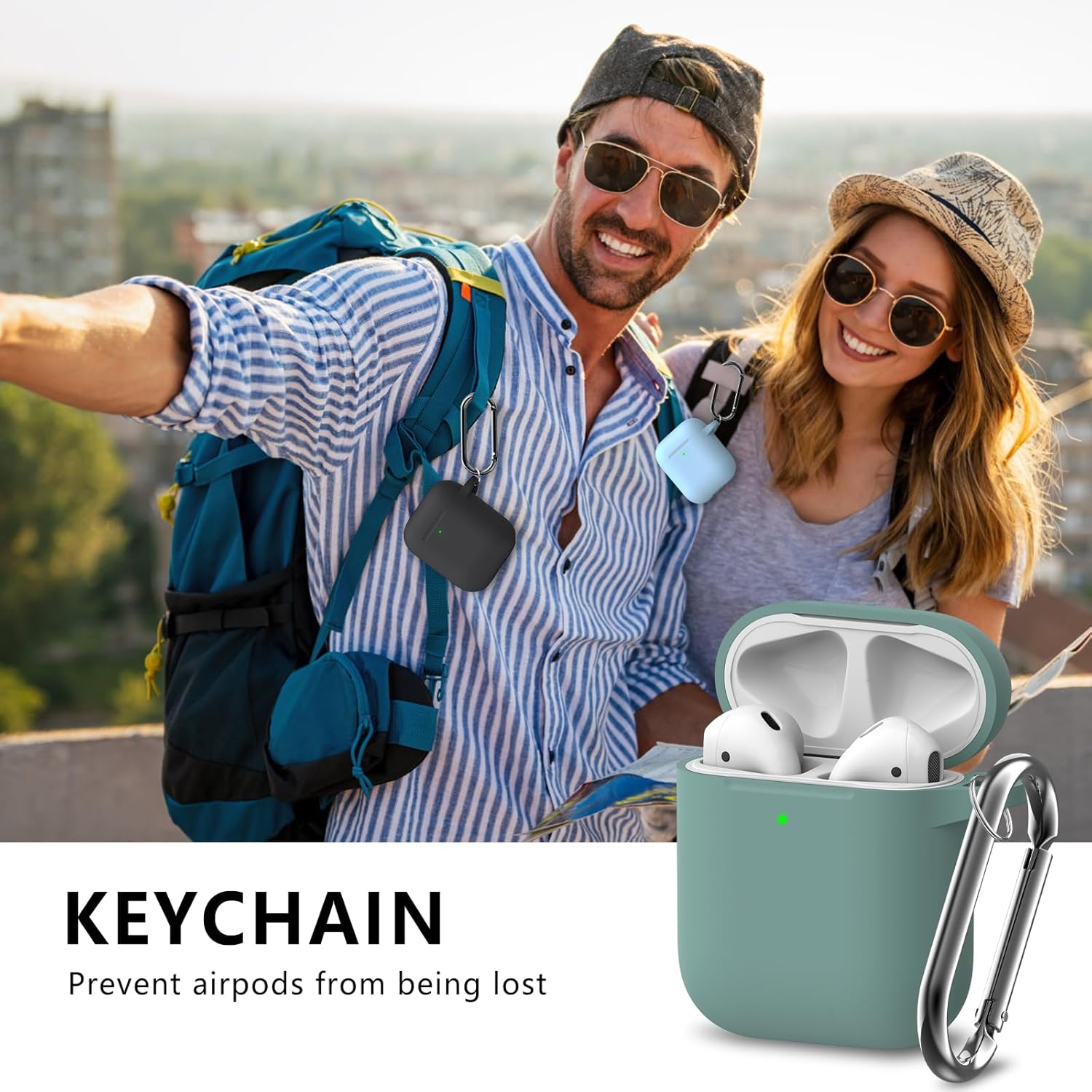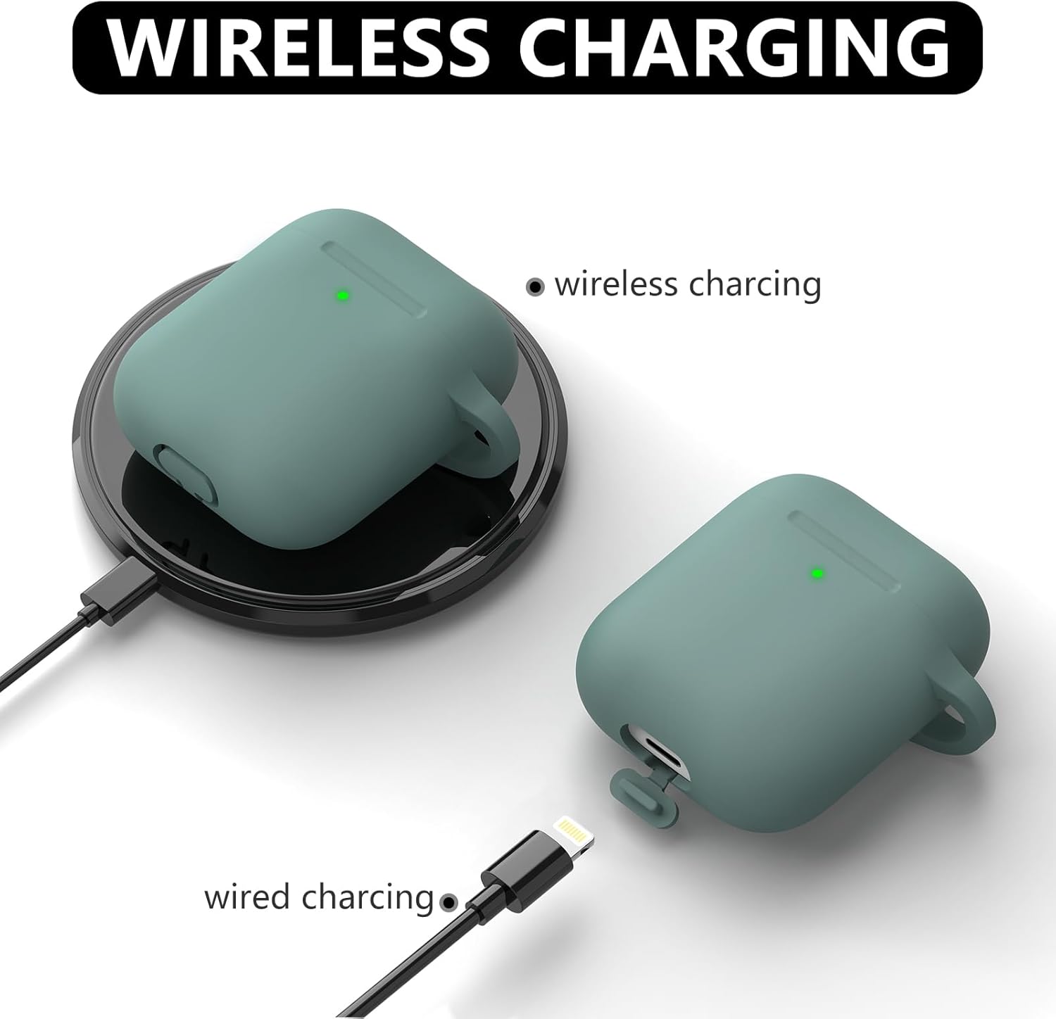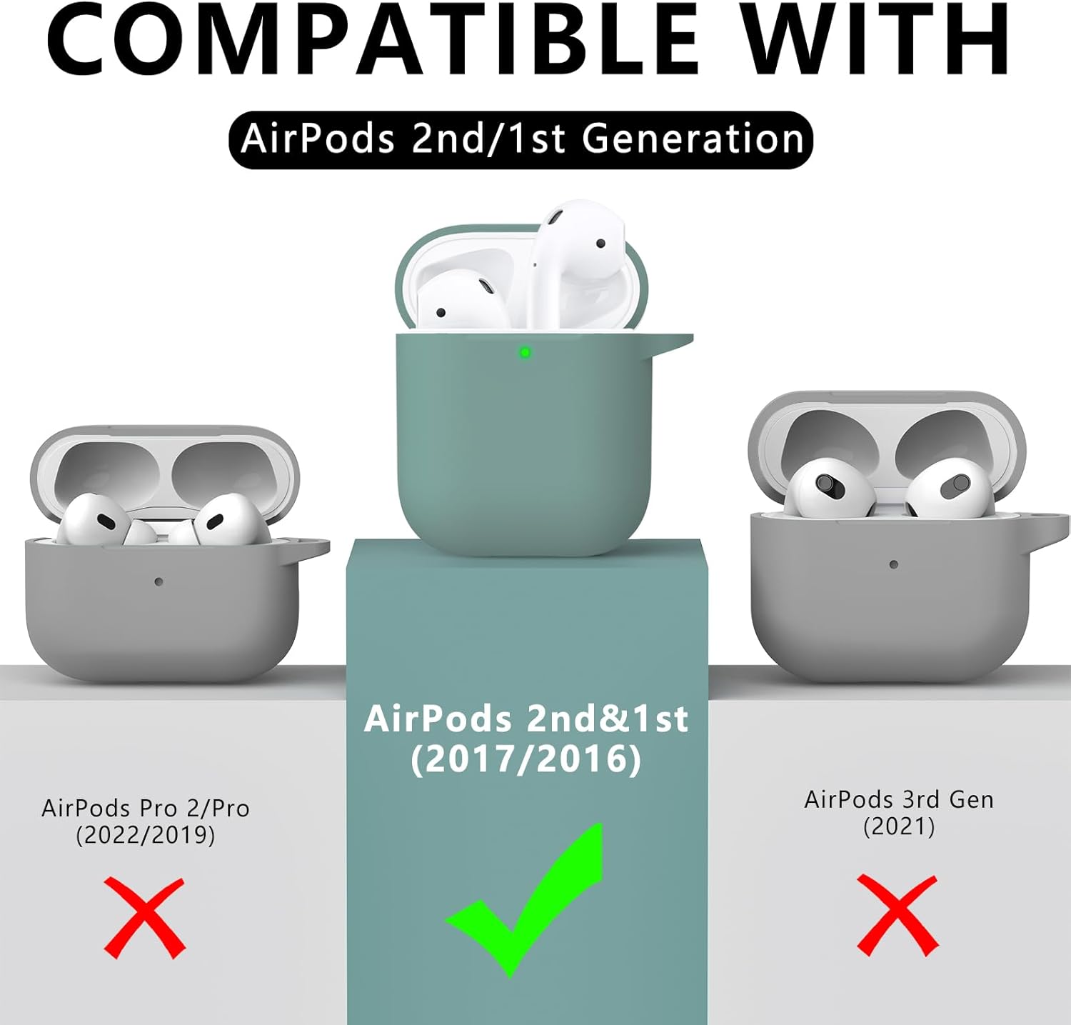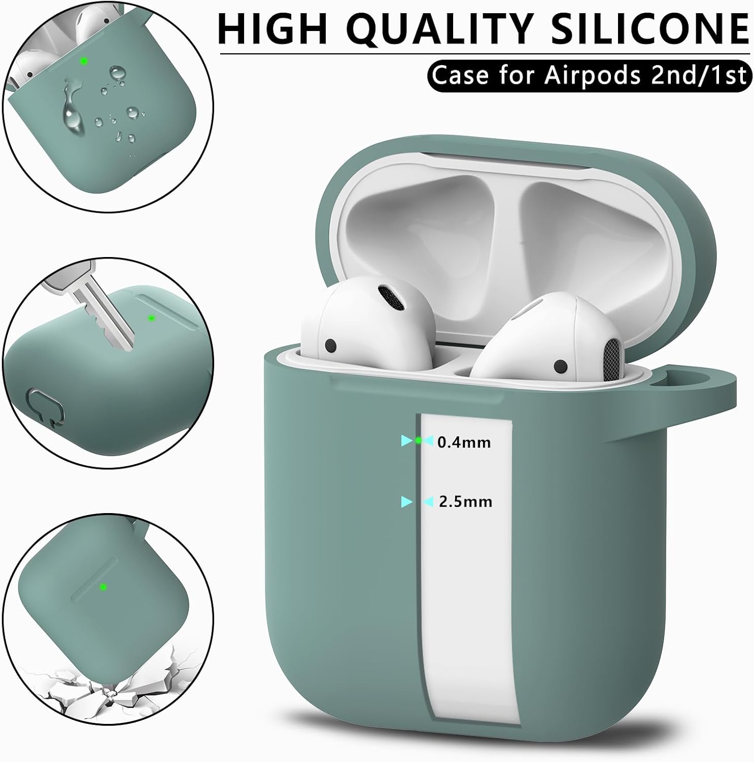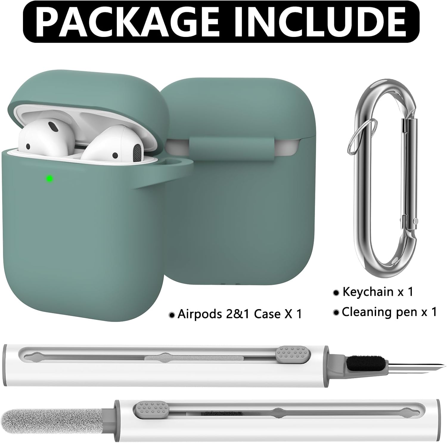 Inesore Съвместим с Airpods Калъфи, Мек силиконов защитен калъф за Apple AirPods 2-ро/1-во поколение Заряден калъф с ключодържател и почистваща писалка, за жени и мъже, зелен