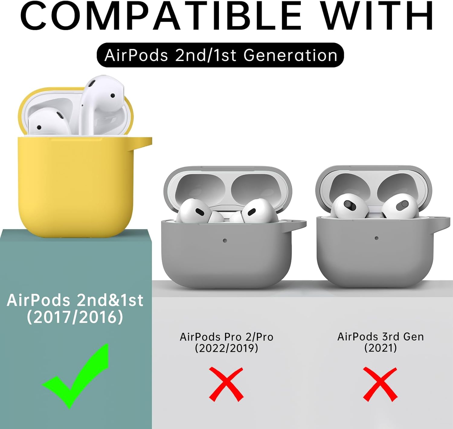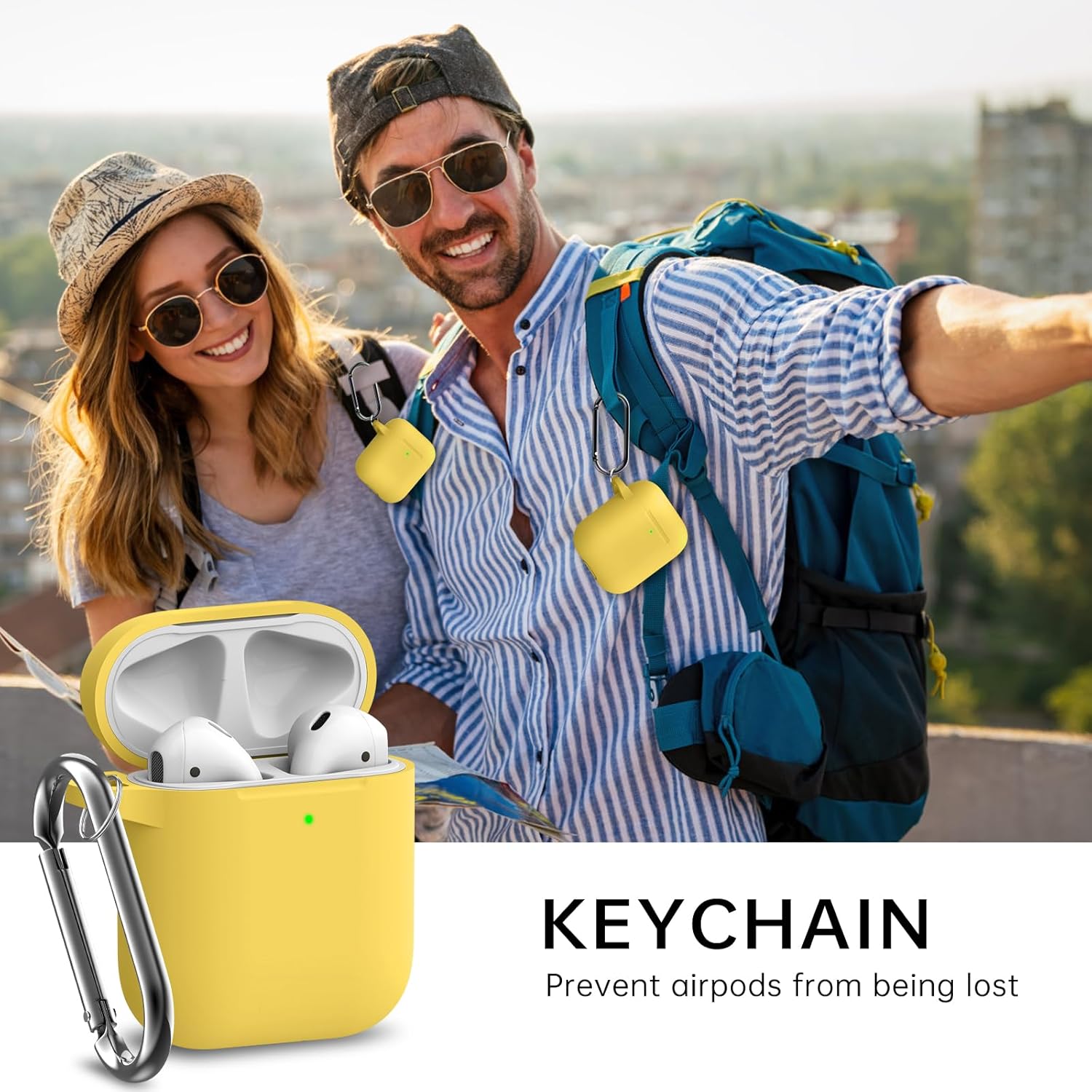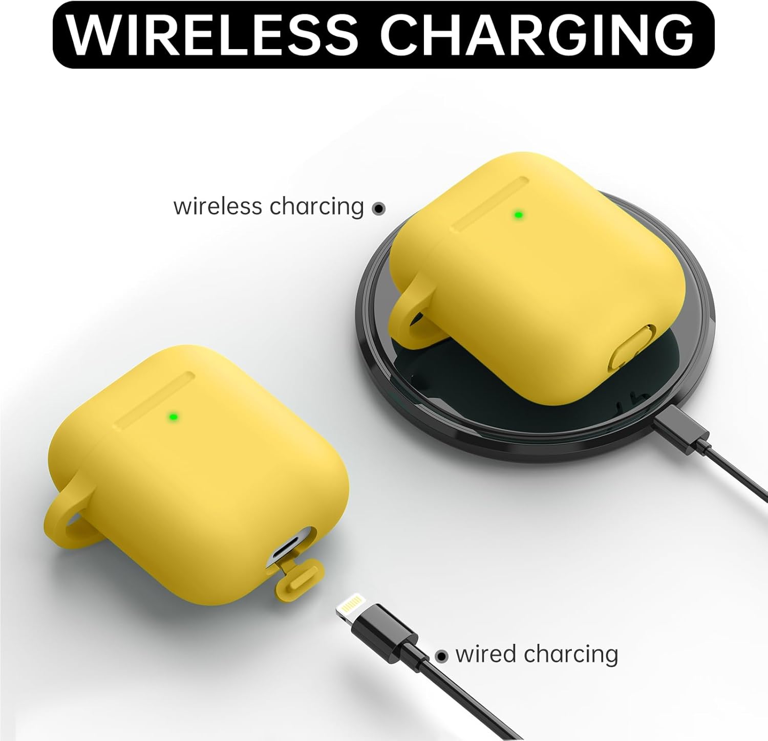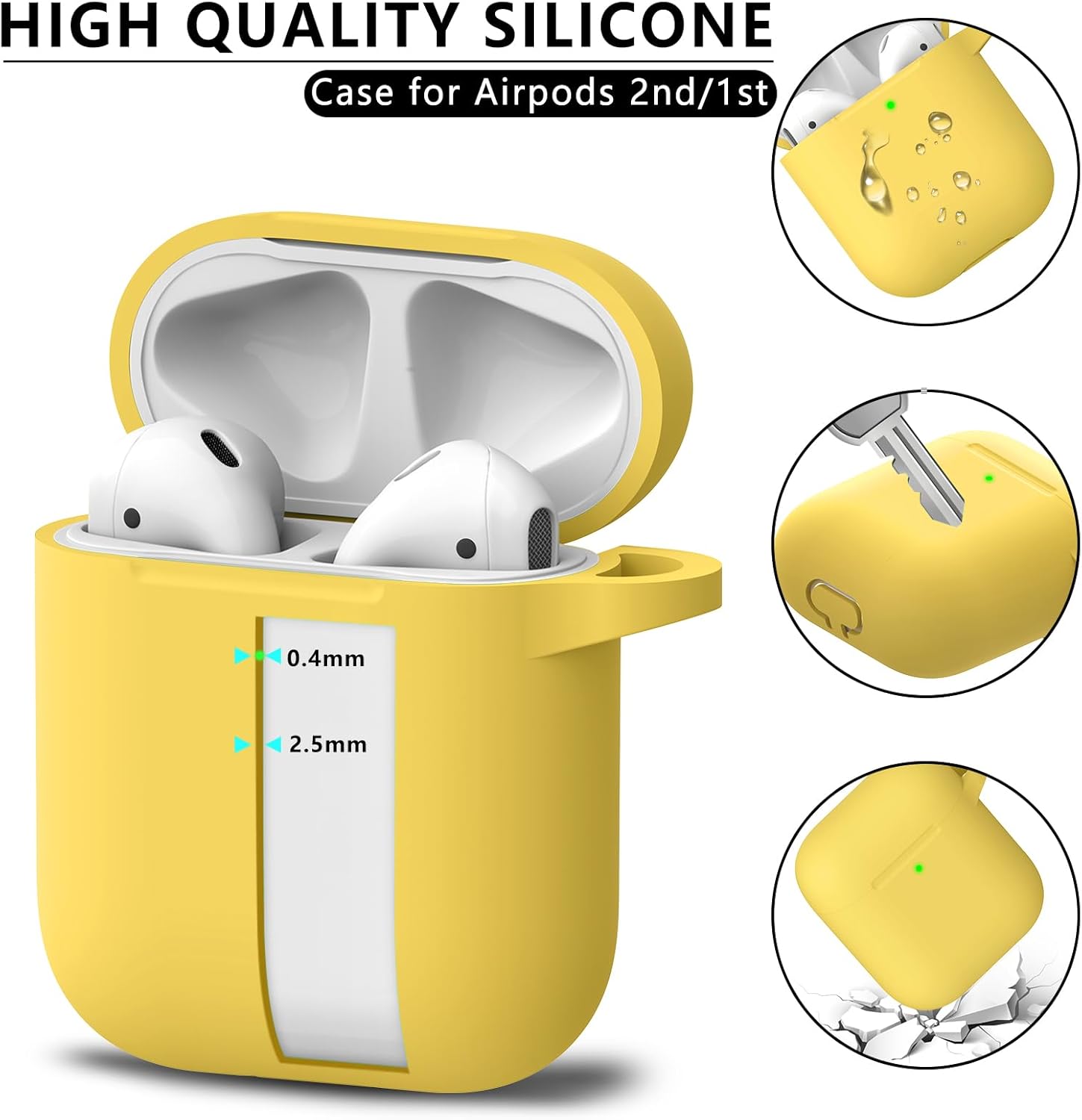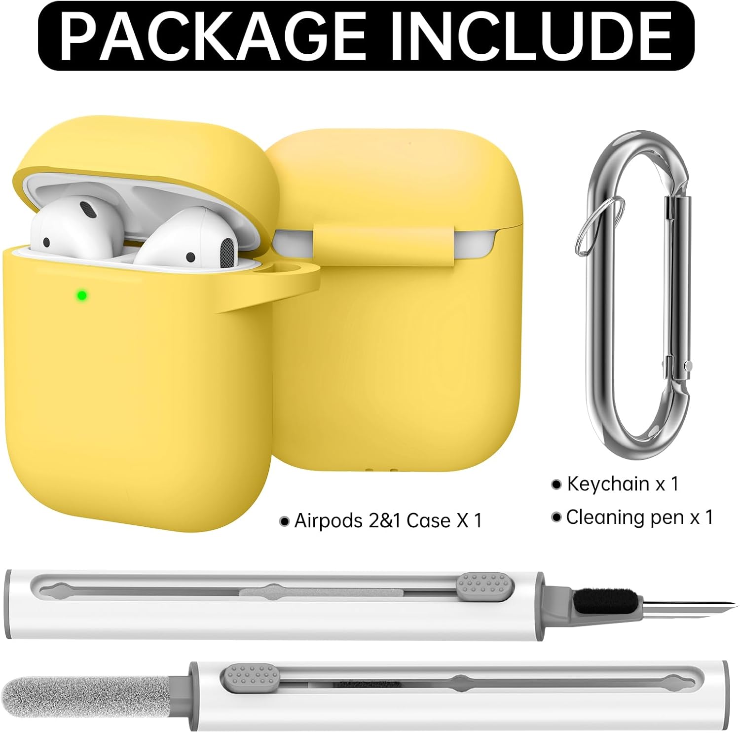 Inesore Съвместим с Airpods Калъфи, Мек силиконов защитен калъф за Apple AirPods 2-ро/2-ро поколение Заряден калъф с ключодържател и почистваща писалка, за жени и мъже, жълт