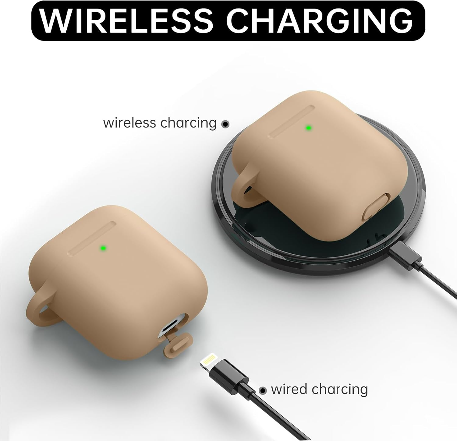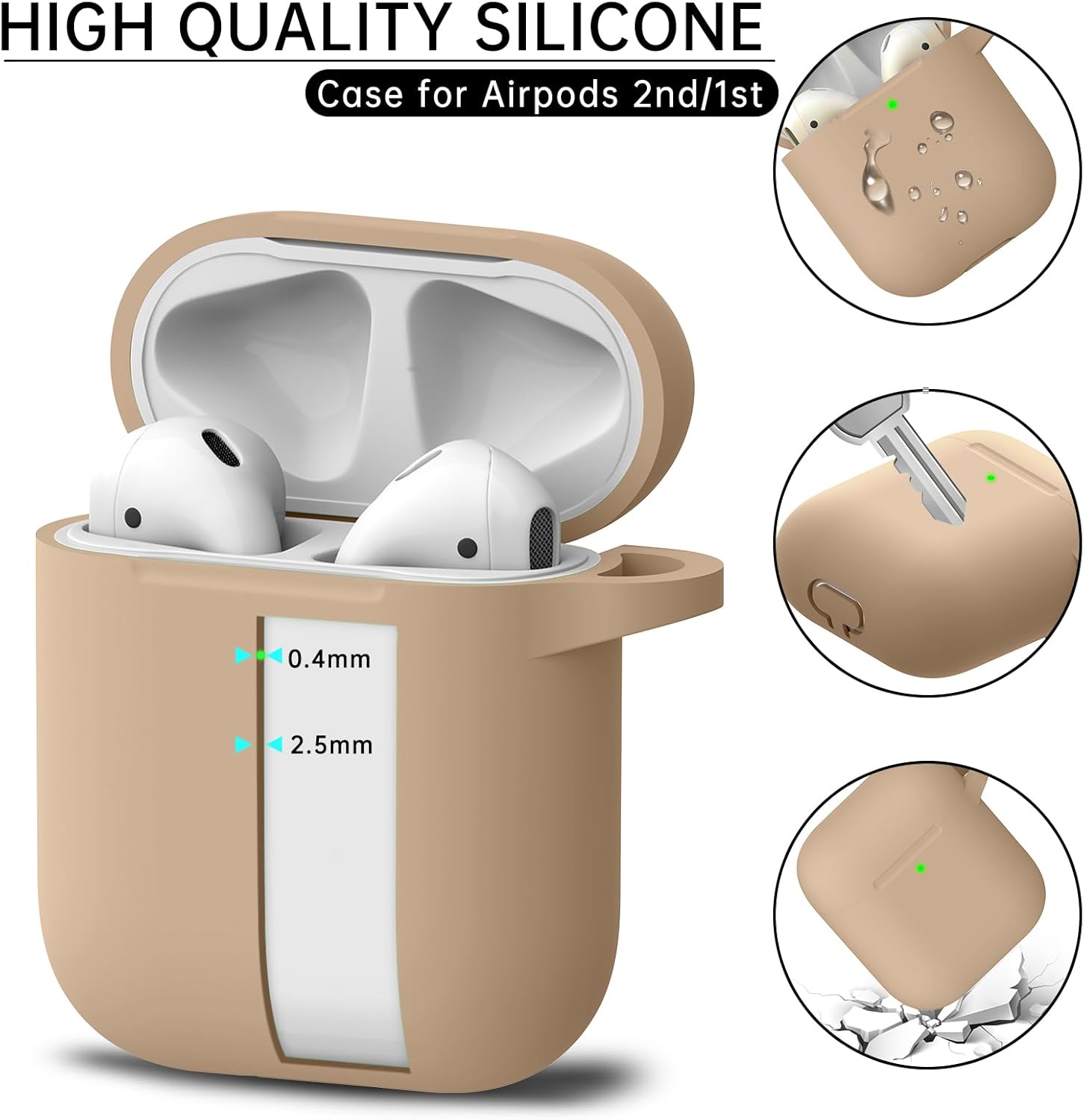 Inesore, съвместим с Airpods, мек силиконов защитен калъф за Apple AirPods 2-ро/3-то поколение, калъф за зареждане с ключодържател и почистваща писалка, за жени и мъже - Dune