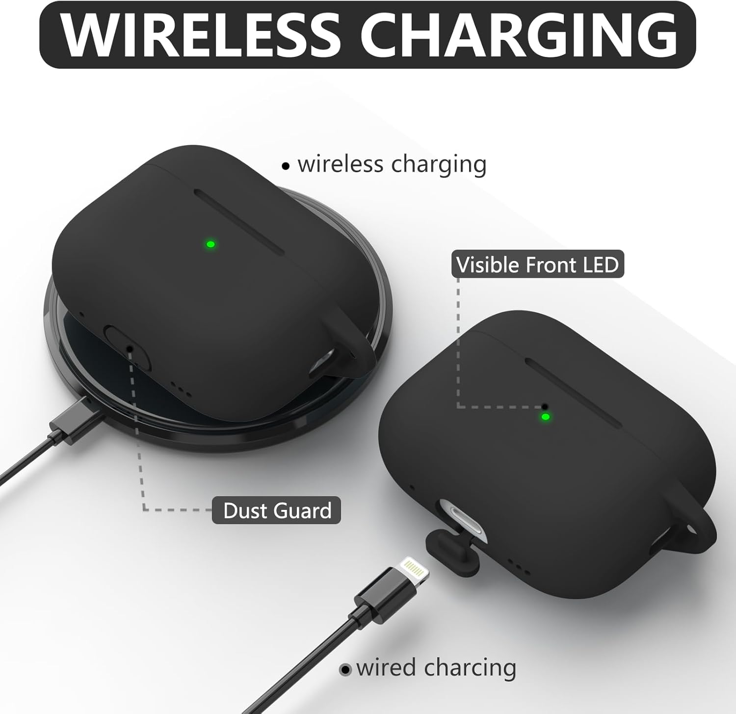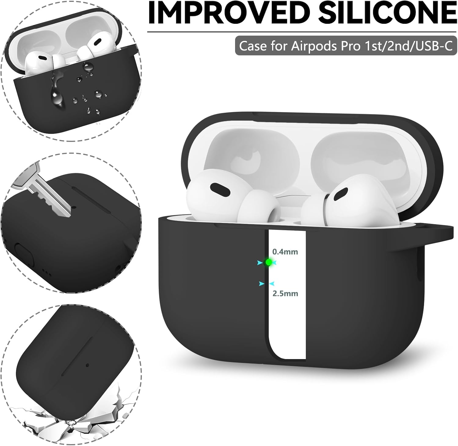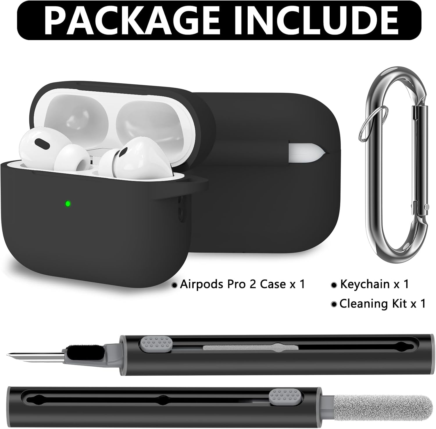 Inesore, съвместим с Airpods Pro 1-во/2-ро поколение, силиконов защитен калъф за Apple Airpods Pro 2 USB-C калъф за зареждане с почистваща писалка, за жени и мъже, черен