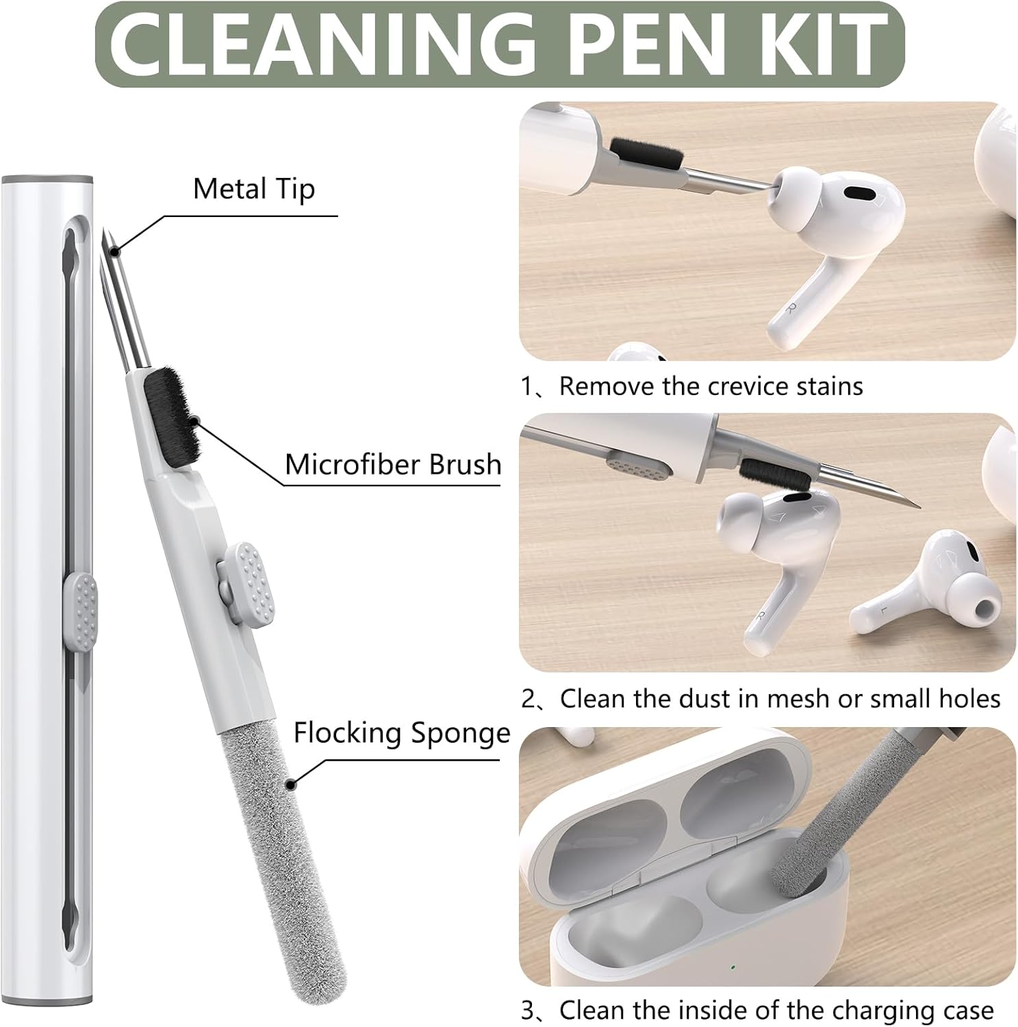• 3 в 1 почистваща писалка: Почистващата писалка с връх на писалка, мека четка и четка за флокиране с висока плътност, може да ви помогне да премахнете прах и мръсотия от слушалките си, винаги поддържайте AirPods като нови.