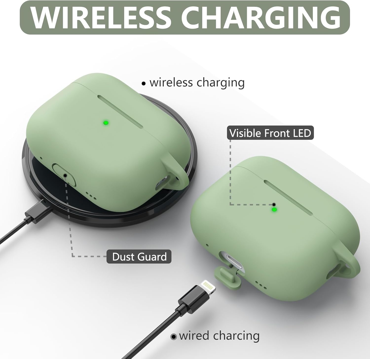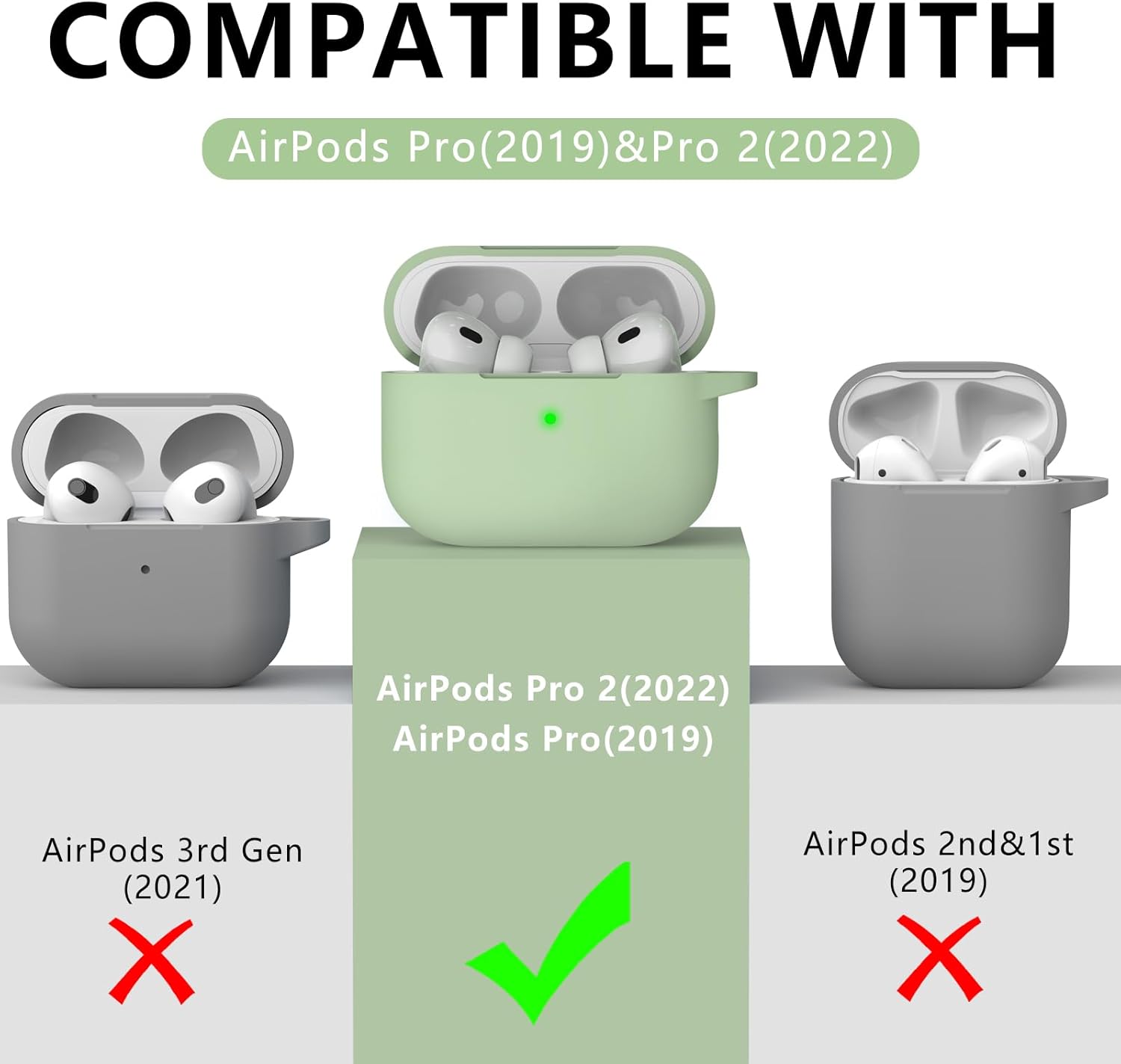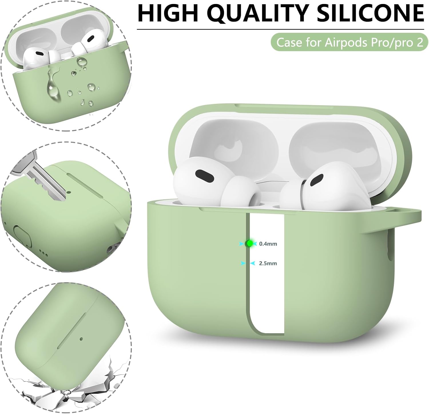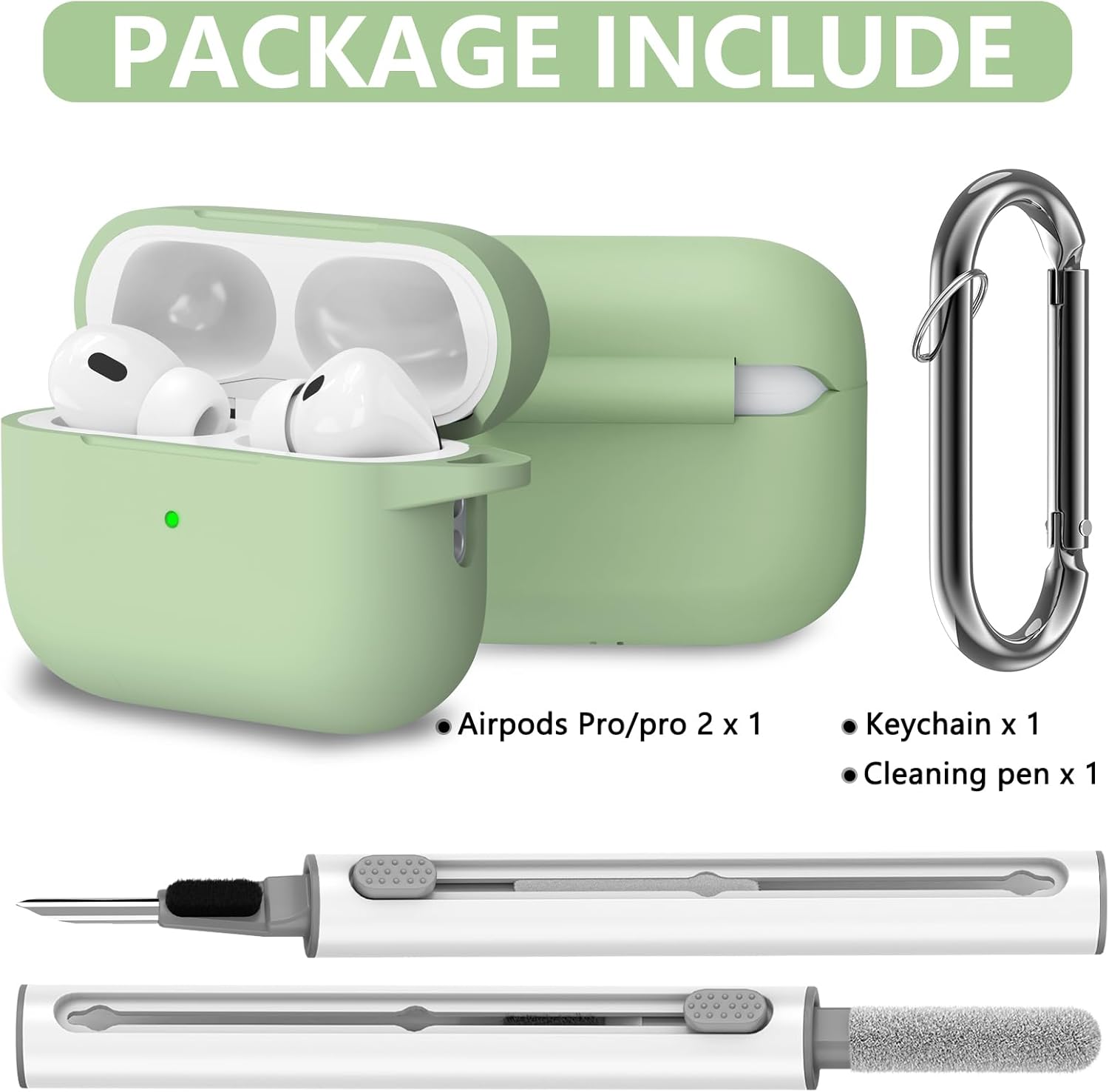 Inesore Съвместим с Airpods Pro 2-ро/1-во поколение калъф, Силиконов защитен калъф за Apple Airpods Pro 2-ро/1-во поколение, калъф за зареждане с ключодържател и почистваща писалка, пастелно зелен