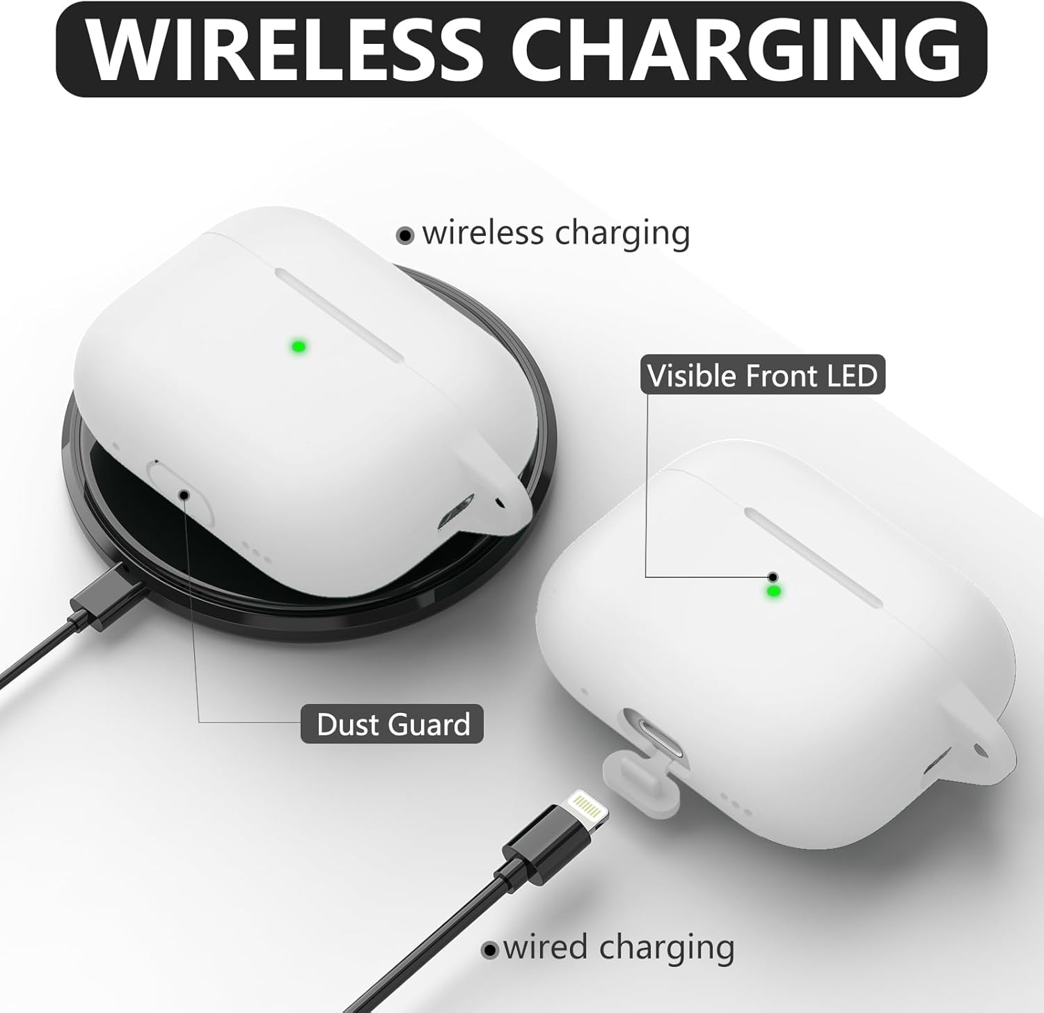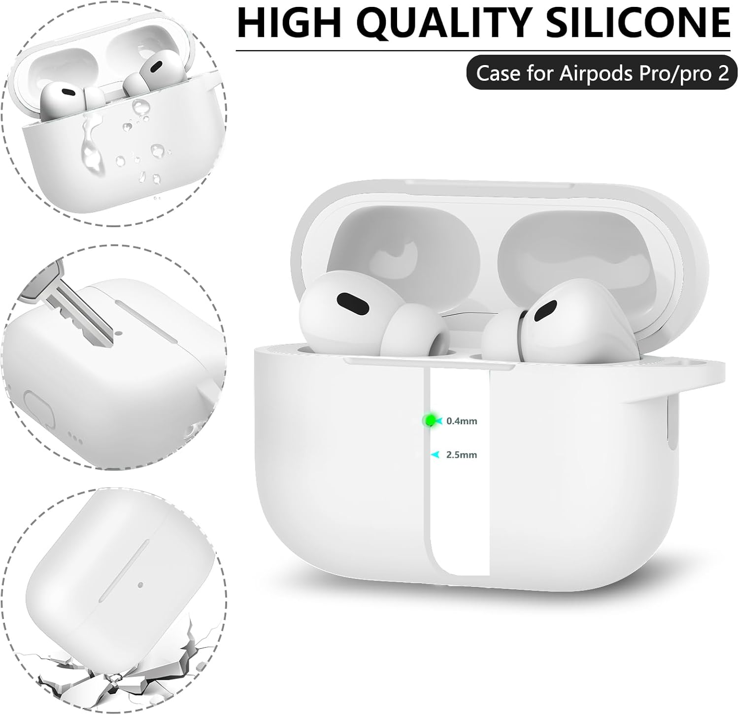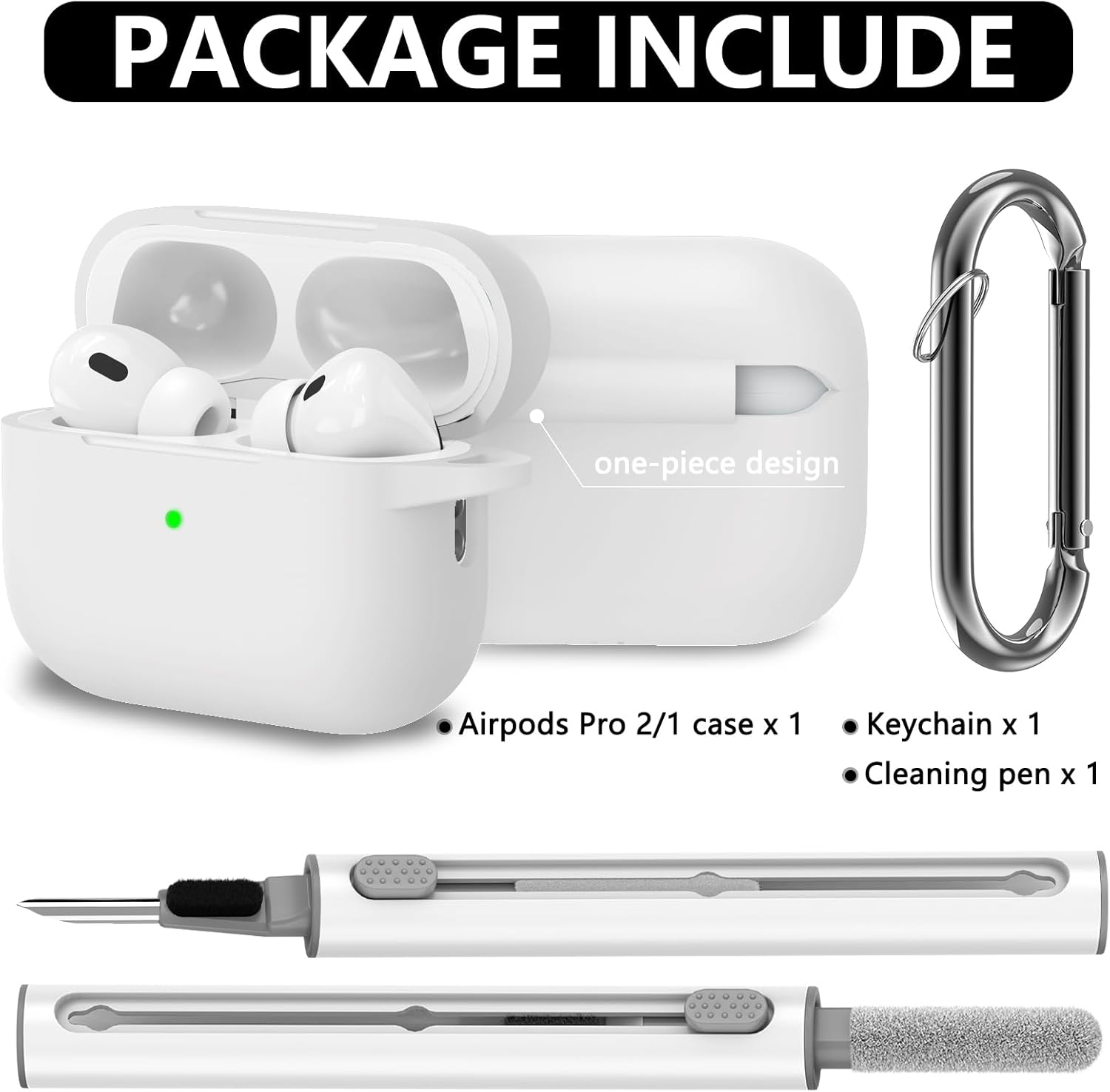 Inesore, съвместим с Airpods Pro 2-ро/1-во поколение, силиконов защитен калъф за Apple Airpods Pro 2-ро/1-во поколение, калъф за зареждане с ключодържател и почистваща писалка, за жени и мъже (бял)