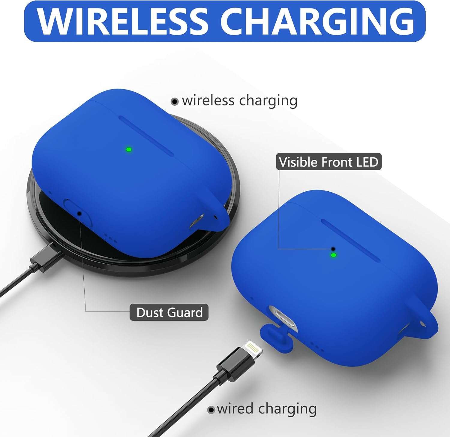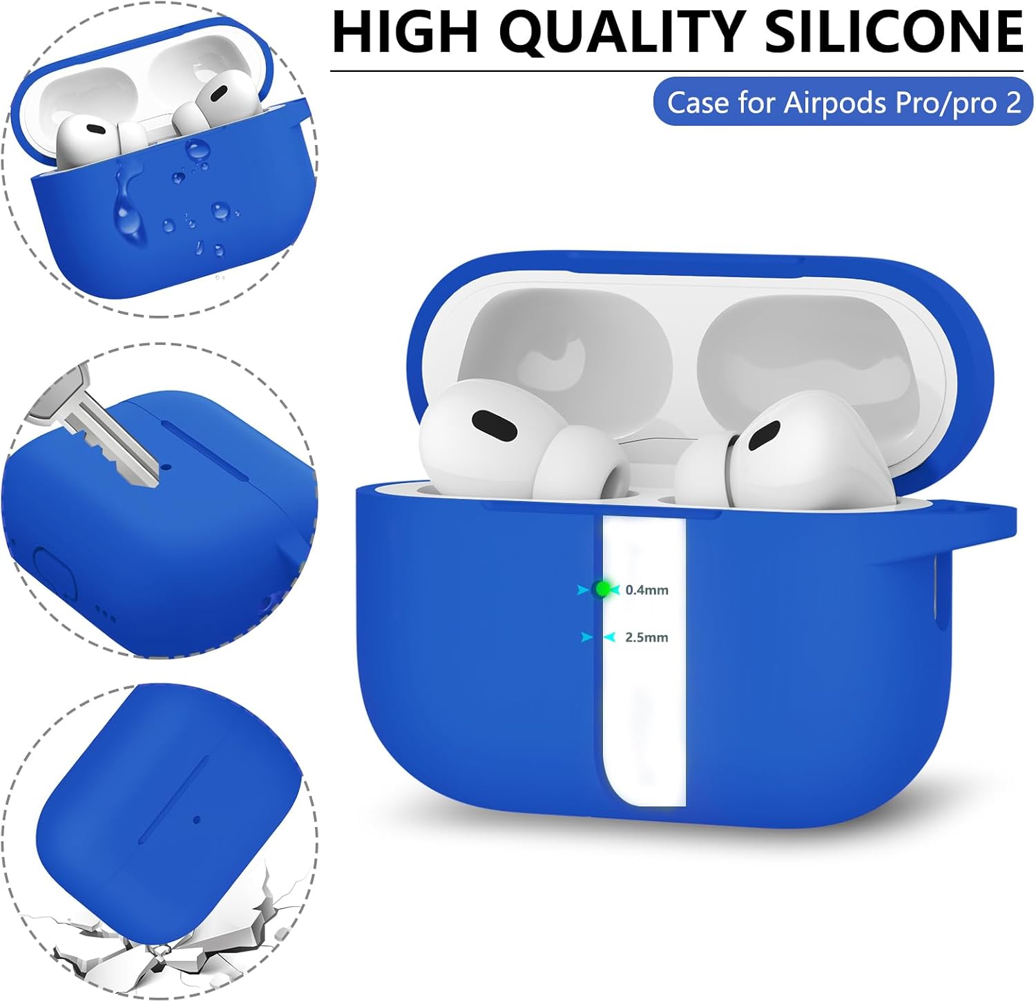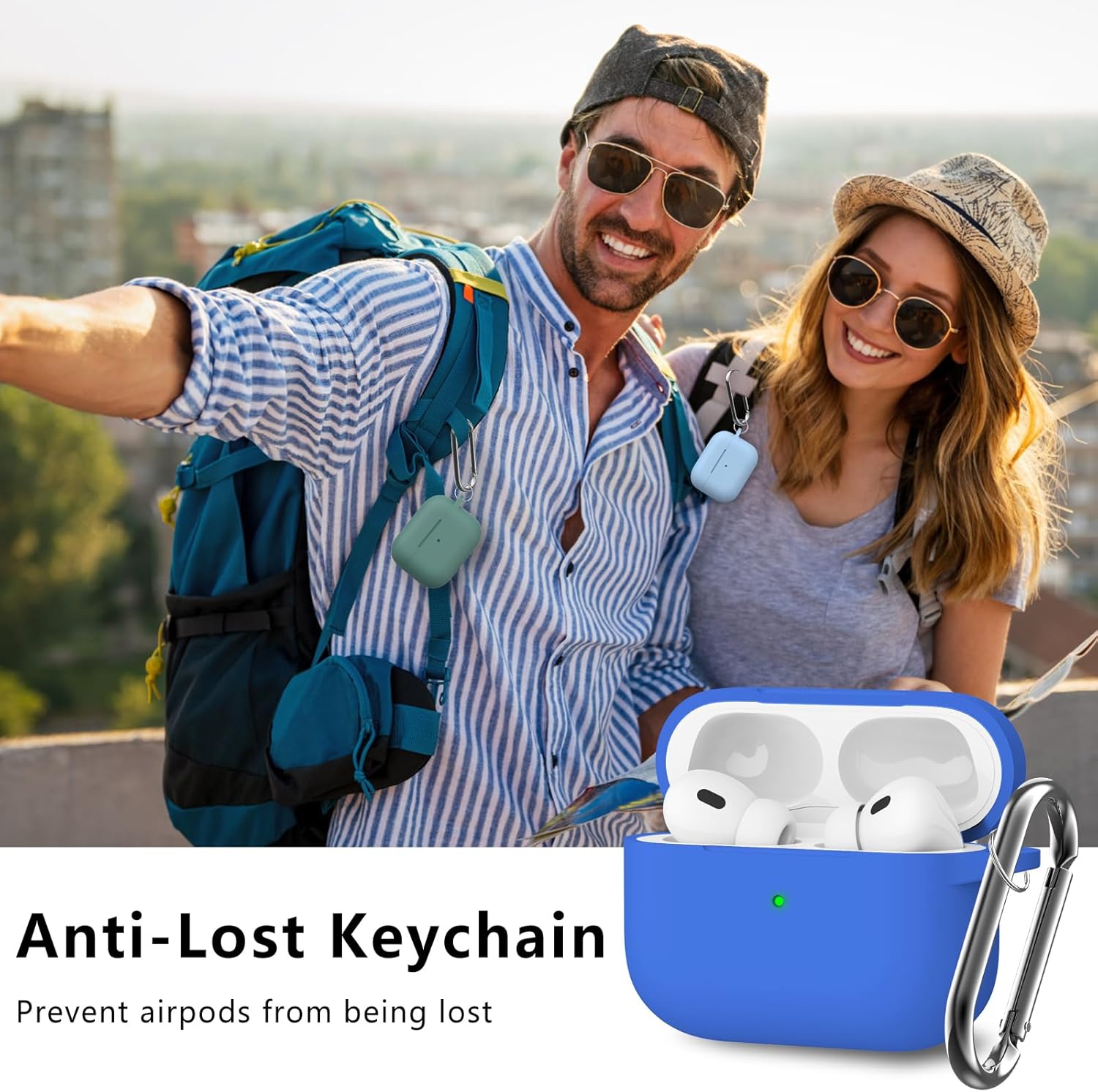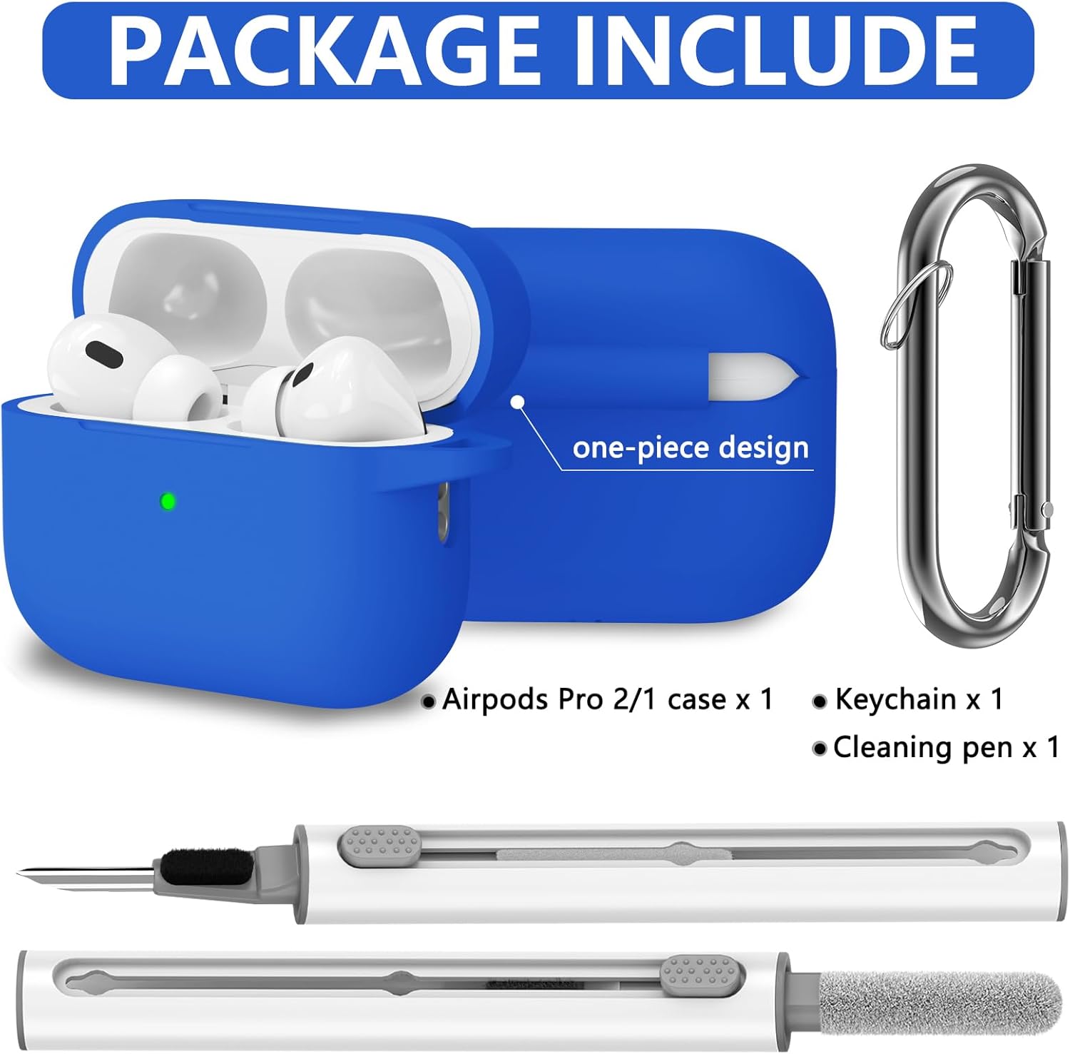 Inesore, съвместим с Airpods Pro 2-ро/1-во поколение, силиконов защитен калъф за Apple Airpods Pro 2-ро/1-во поколение, калъф за зареждане с ключодържател и почистваща писалка, за жени и мъже (лазурно син)