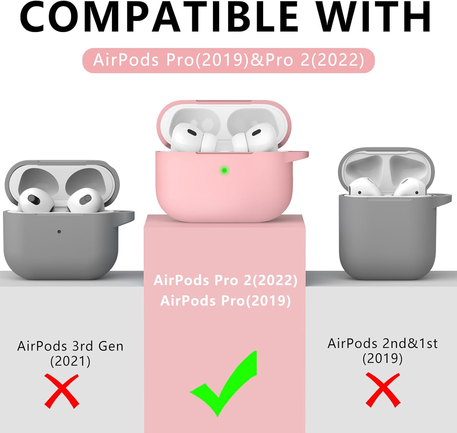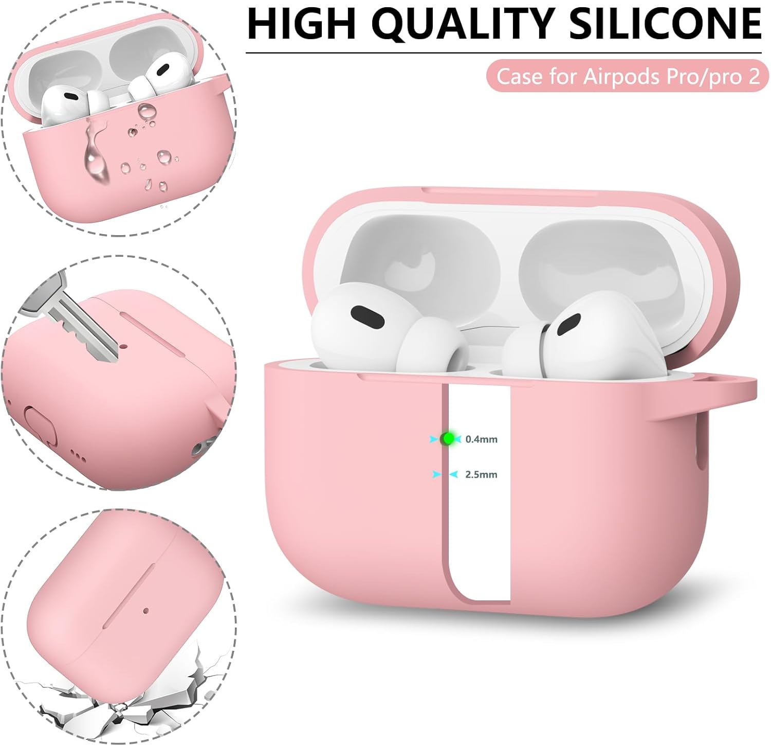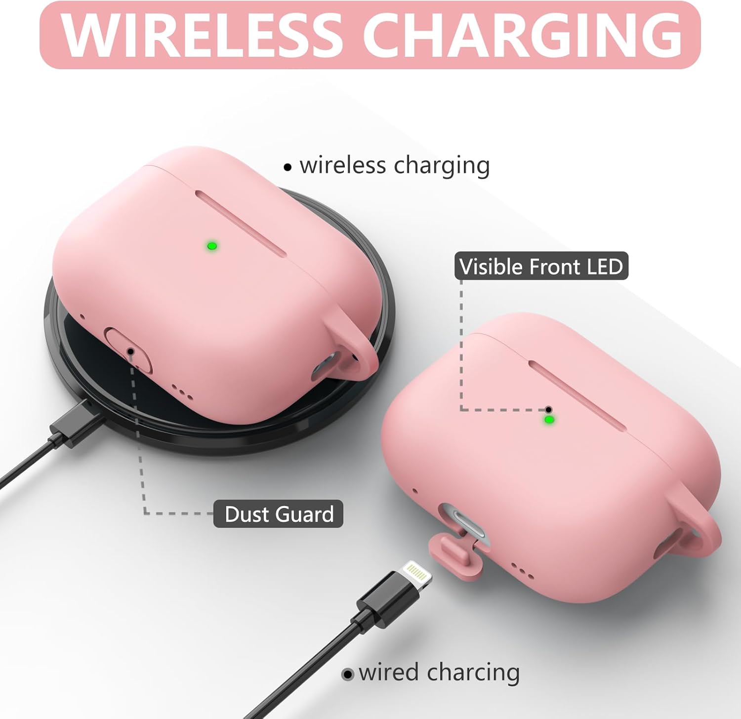 Inesore, съвместим с Airpods Pro 2-ро/1-во поколение, силиконов защитен калъф за Apple Airpods Pro 2-ро/1-во поколение, калъф за зареждане с ключодържател и почистваща писалка, за жени и мъже (розов)