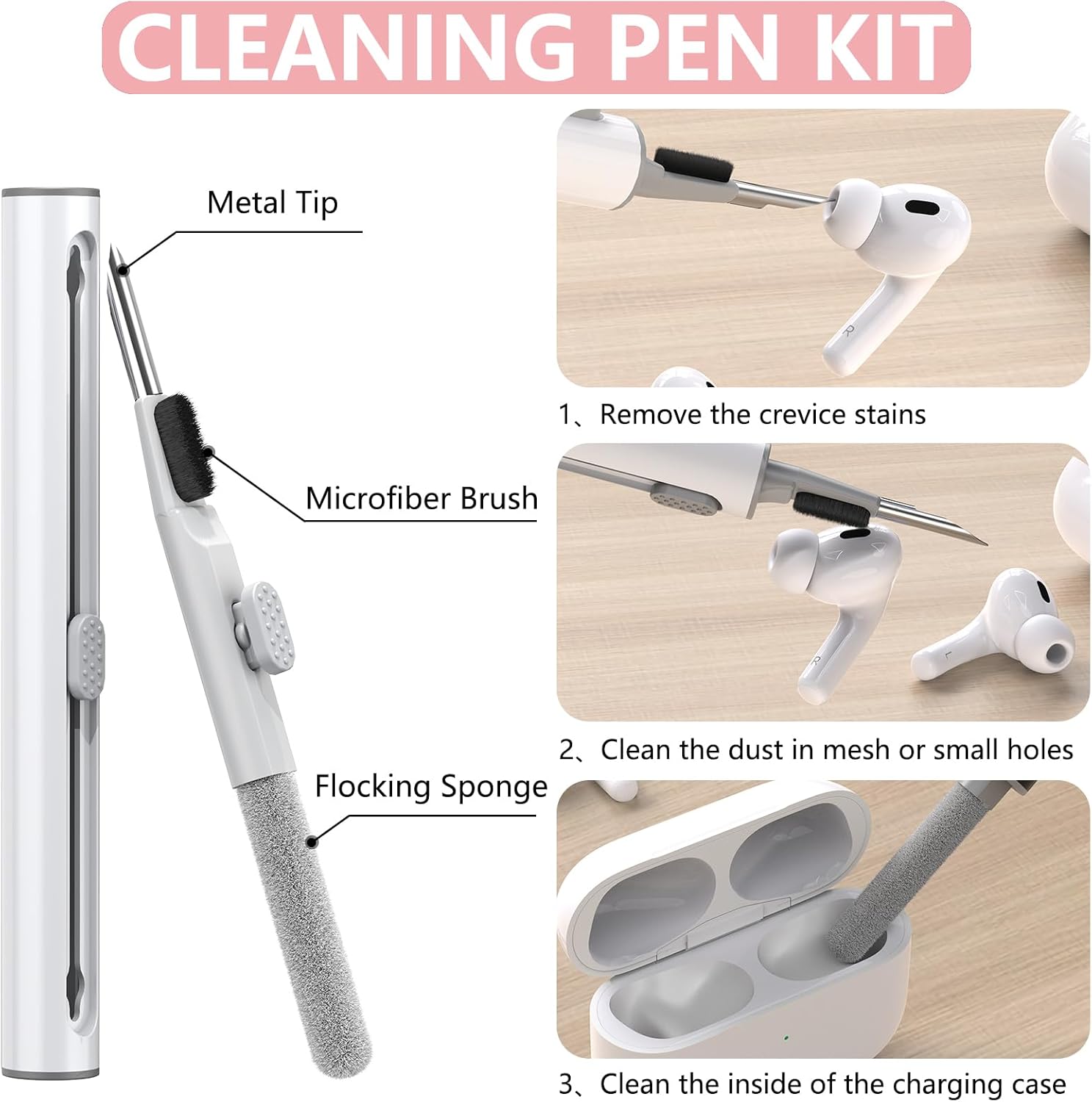 • 3 в 1 почистваща писалка: Почистващата писалка с връх на писалка, мека четка и четка за флокиране с висока плътност, може да ви помогне да премахнете прах и мръсотия от слушалките си, винаги поддържайте AirPods като нови.