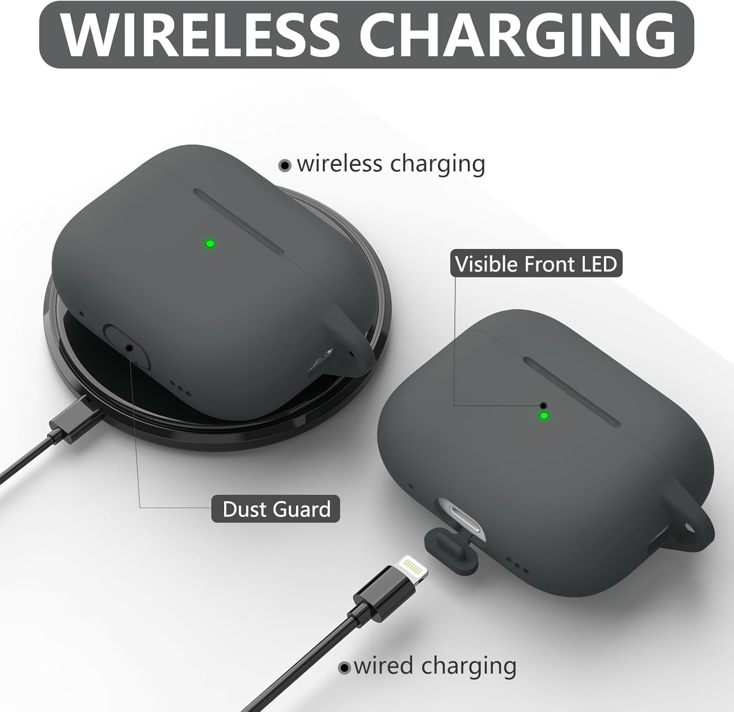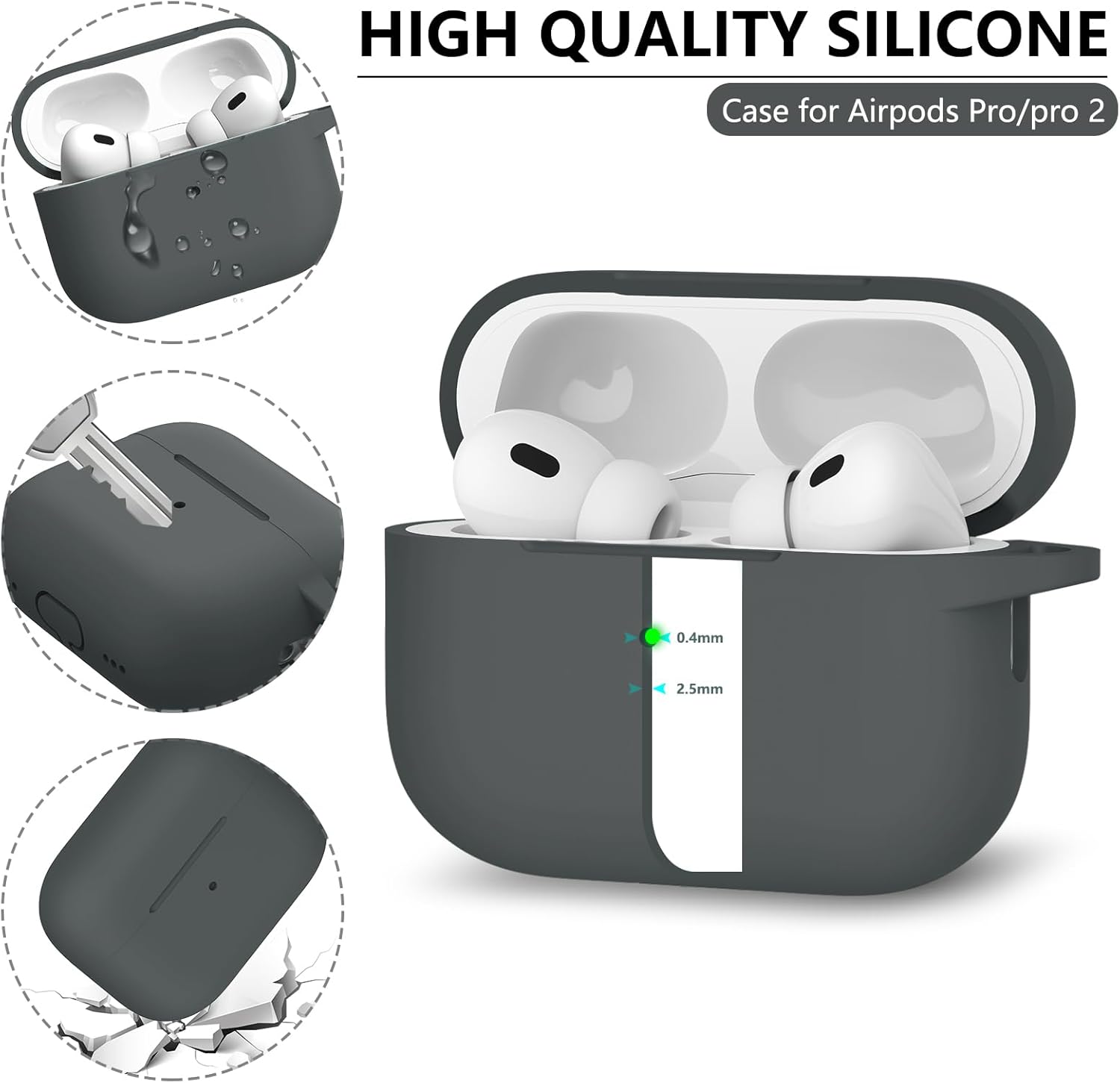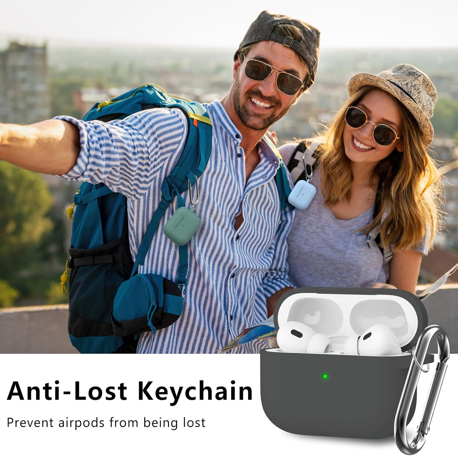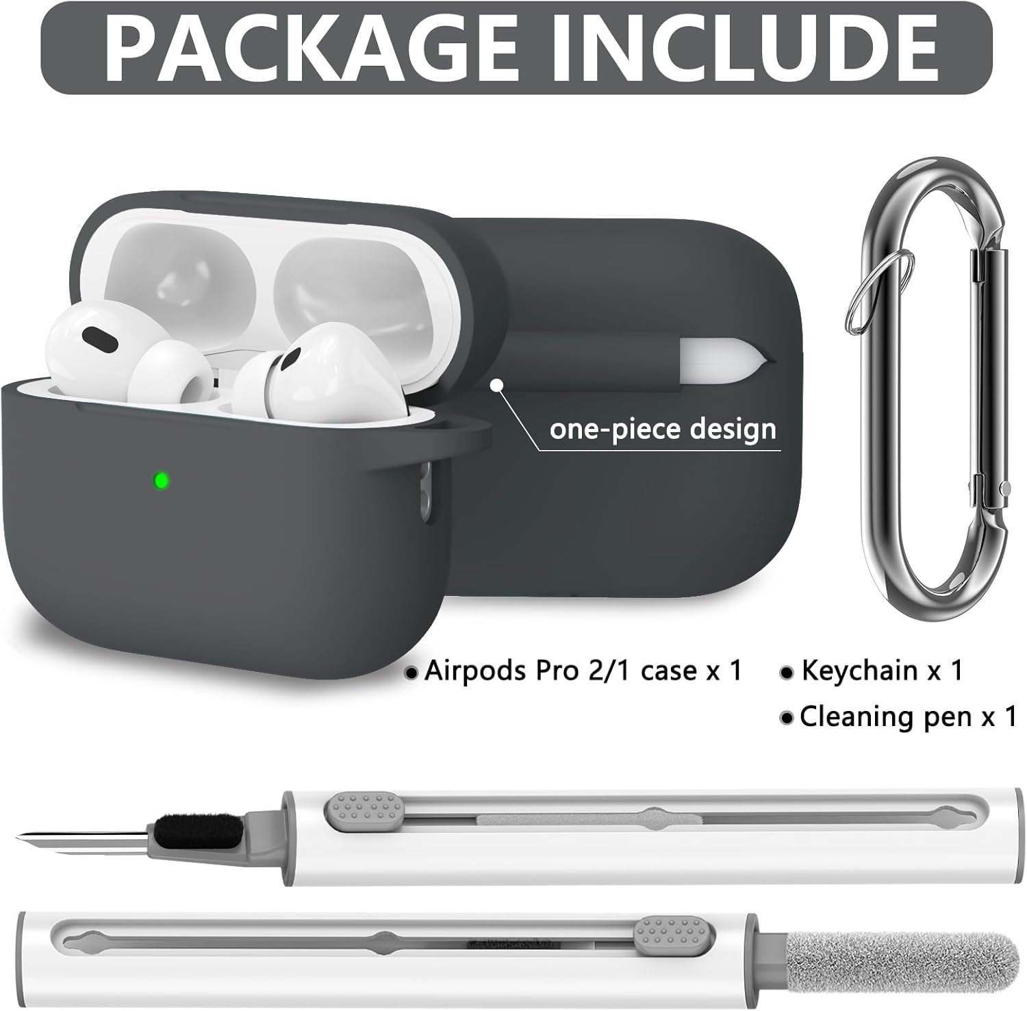 Inesore, съвместим с Airpods Pro 2-ро/1-во поколение, силиконов защитен калъф за Apple Airpods Pro 2-ро/1-во поколение, калъф за зареждане с ключодържател и почистваща писалка, за жени и мъже (сив)
