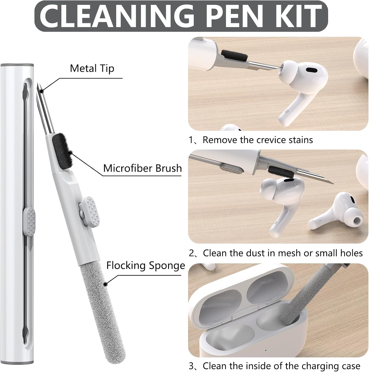 • 3 в 1 почистваща писалка: Почистващата писалка с връх на писалка, мека четка и четка за флокиране с висока плътност, може да ви помогне да премахнете прах и мръсотия от слушалките си, винаги поддържайте AirPods като нови.