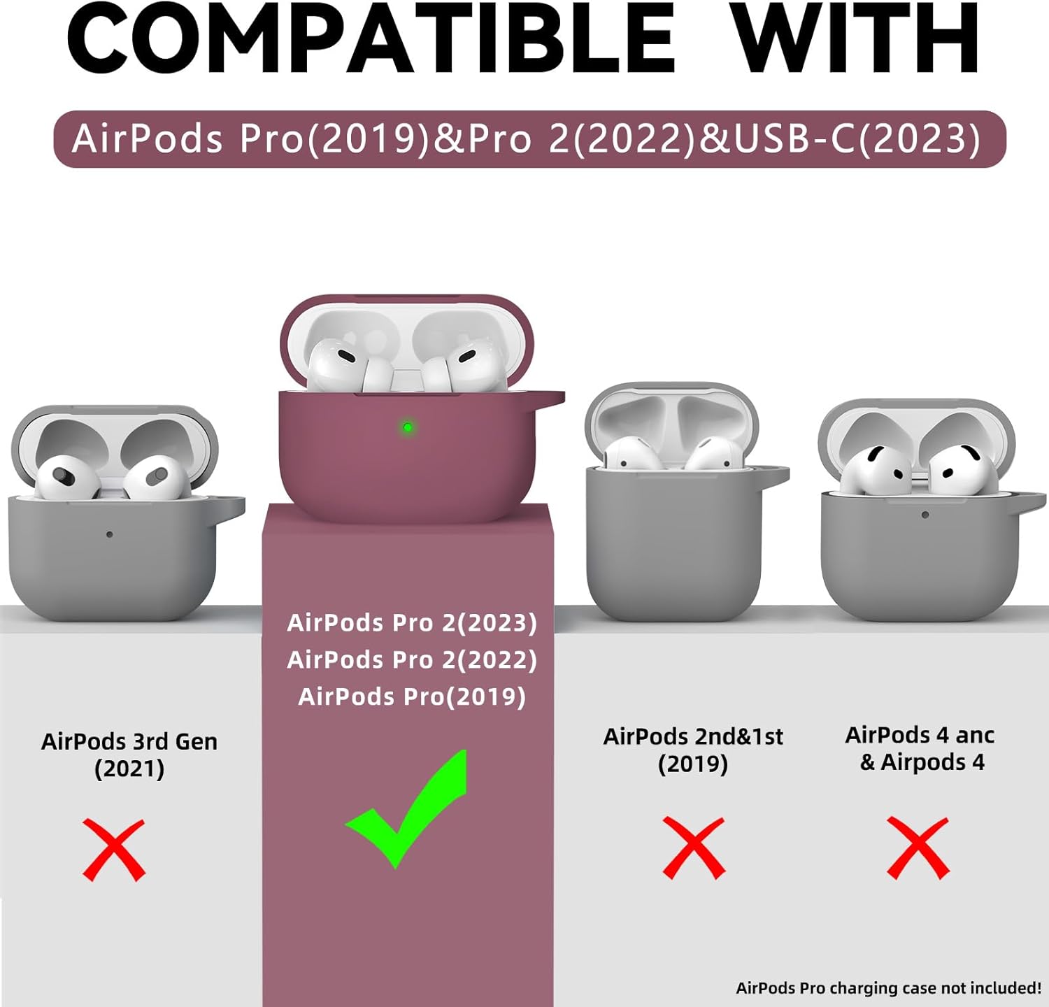 • Точно съвпадение: Съвместим само с калъф за зареждане AirPods Pro 2-ро поколение USB-C (2023), AirPods Pro 2-ро поколение (2022), AirPods Pro 1-во поколение (2019); калъфите за зареждане на AirPods Pro 2 и AirPods Pro 2 не са включени.